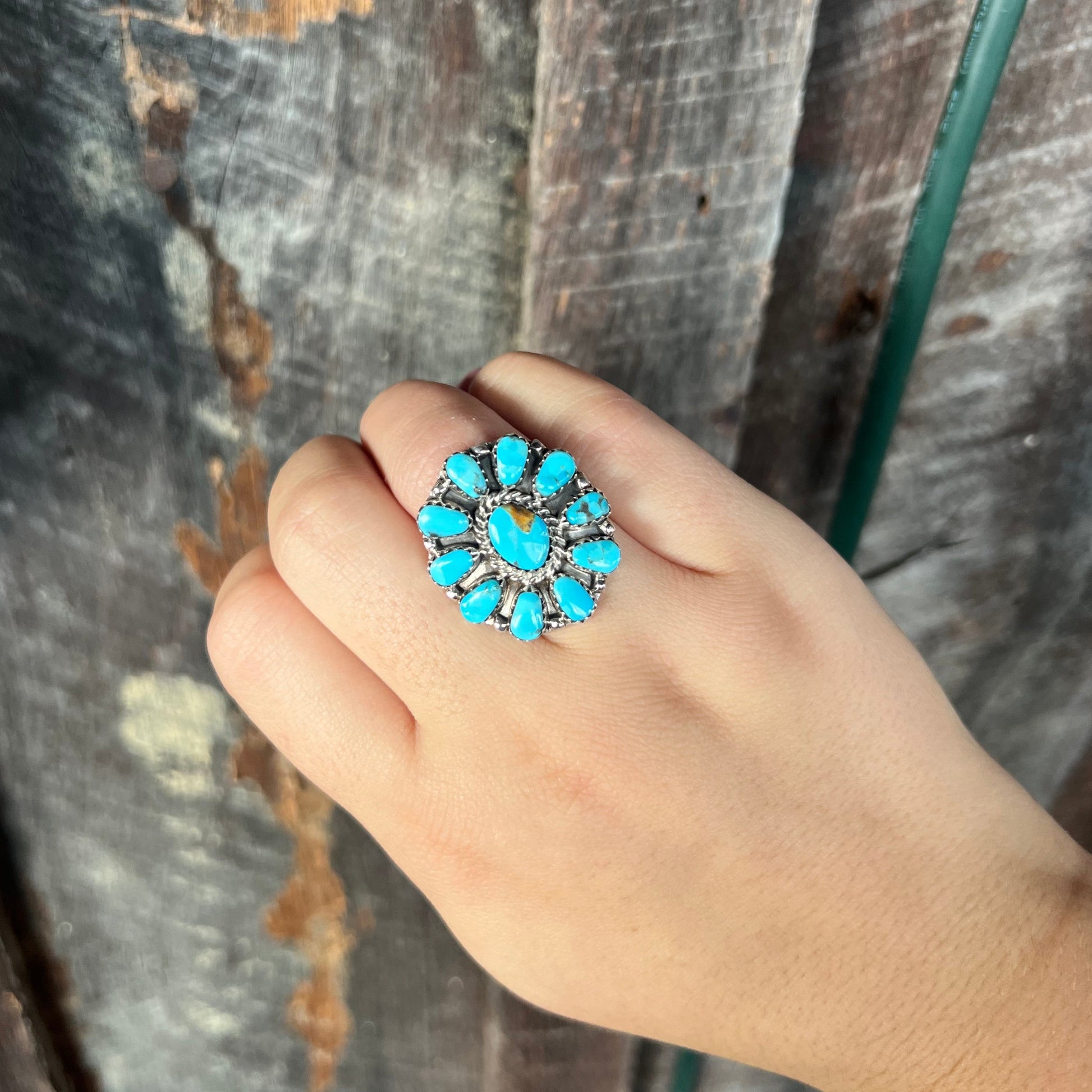 11 Stone Turquoise Cluster Ring