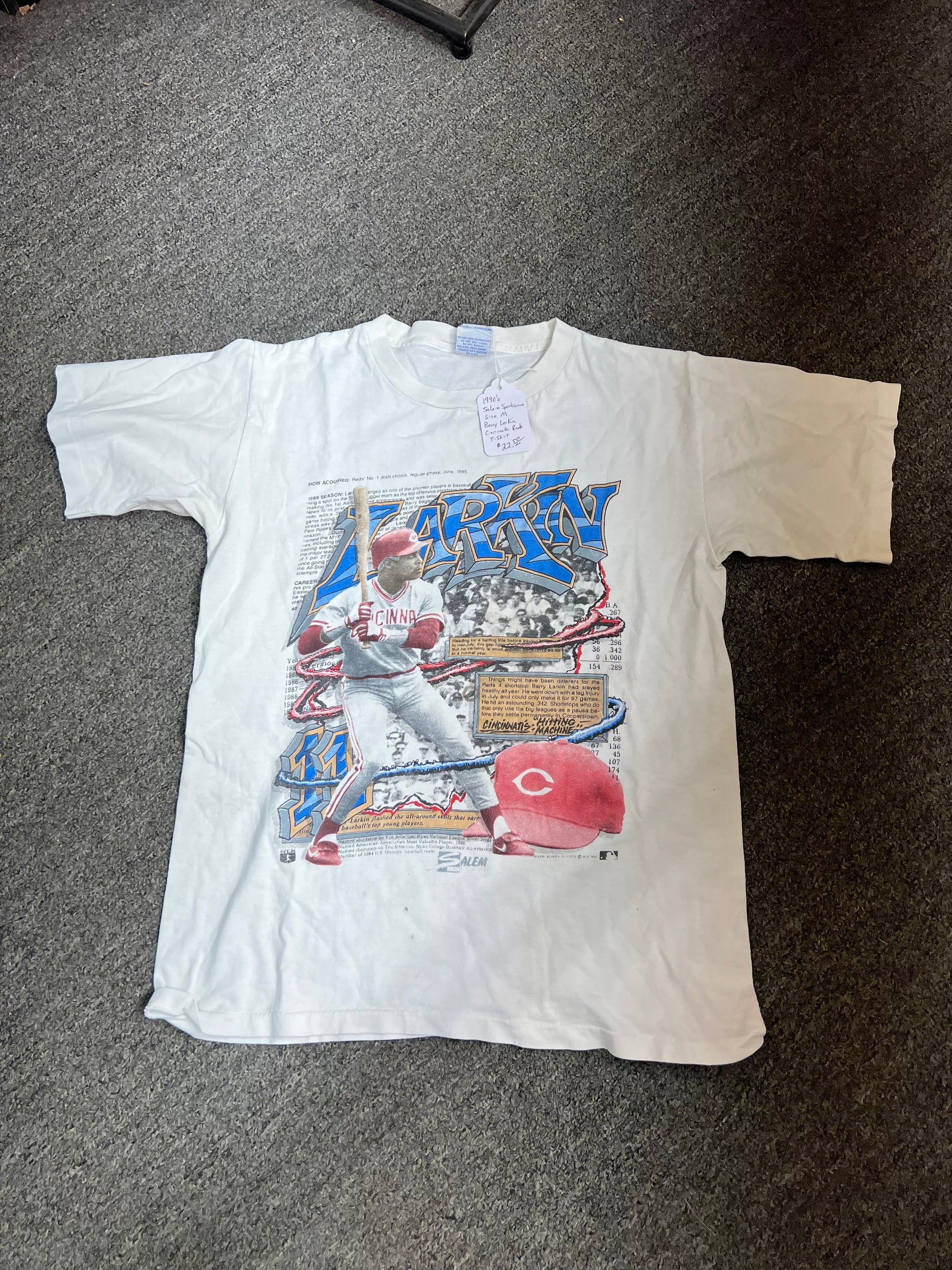 1990's Salem Sportswear Size Medium Barry Larkin Cincinnati Reds T Shirt