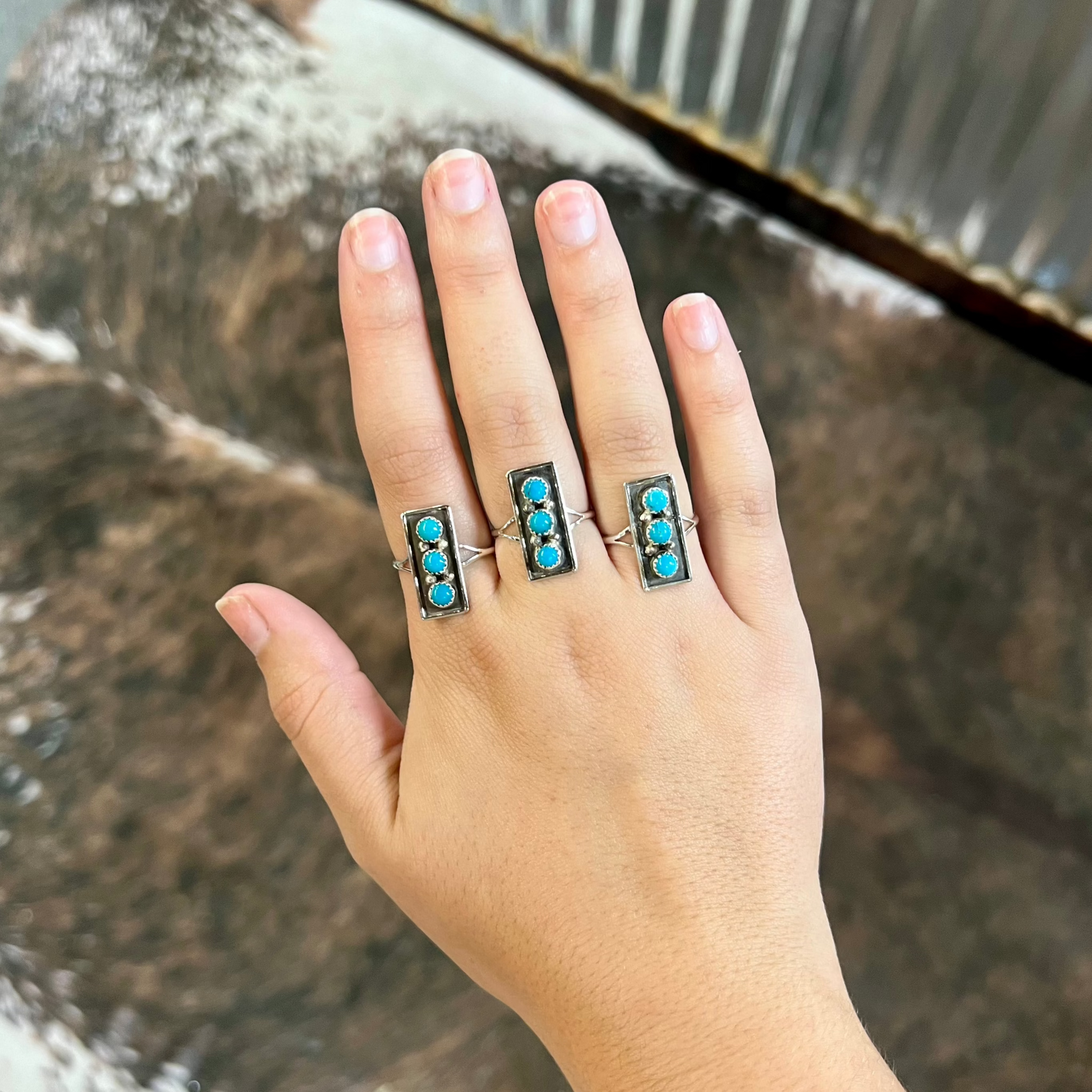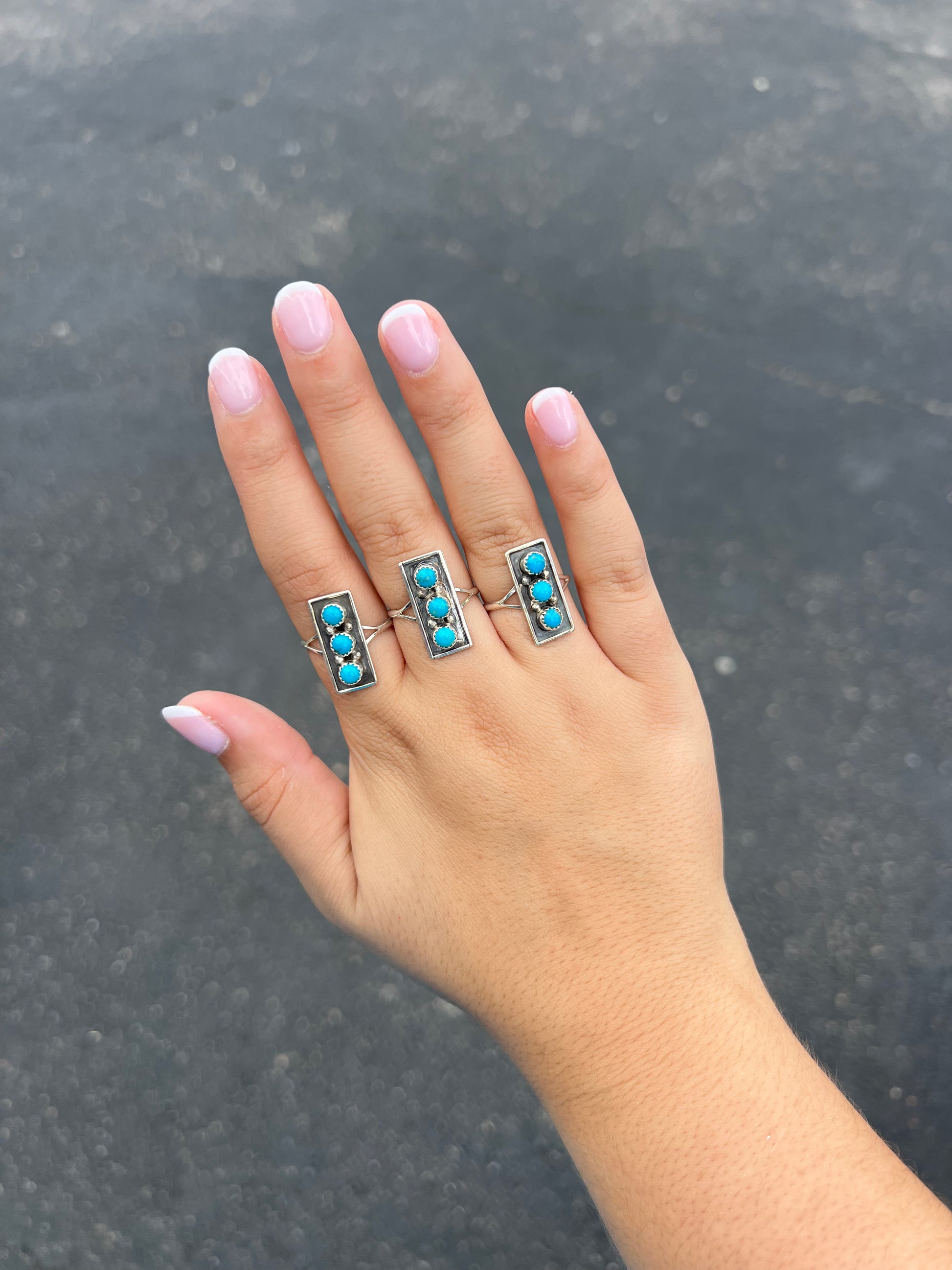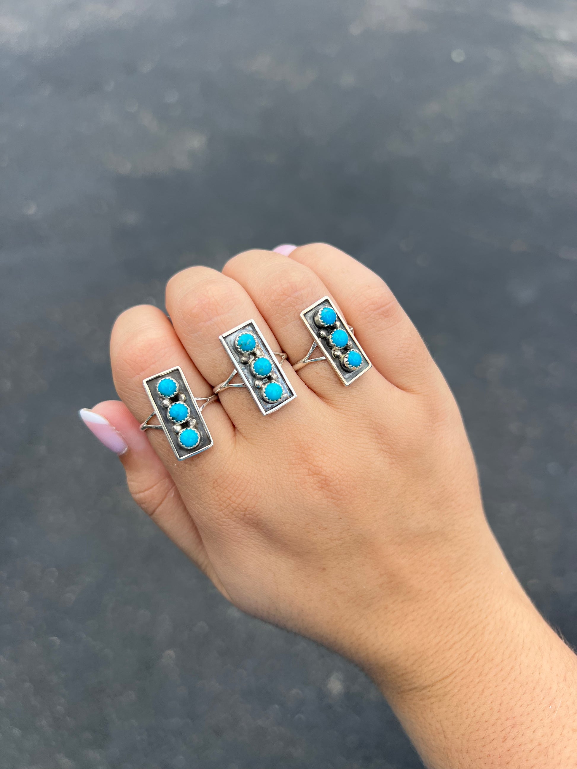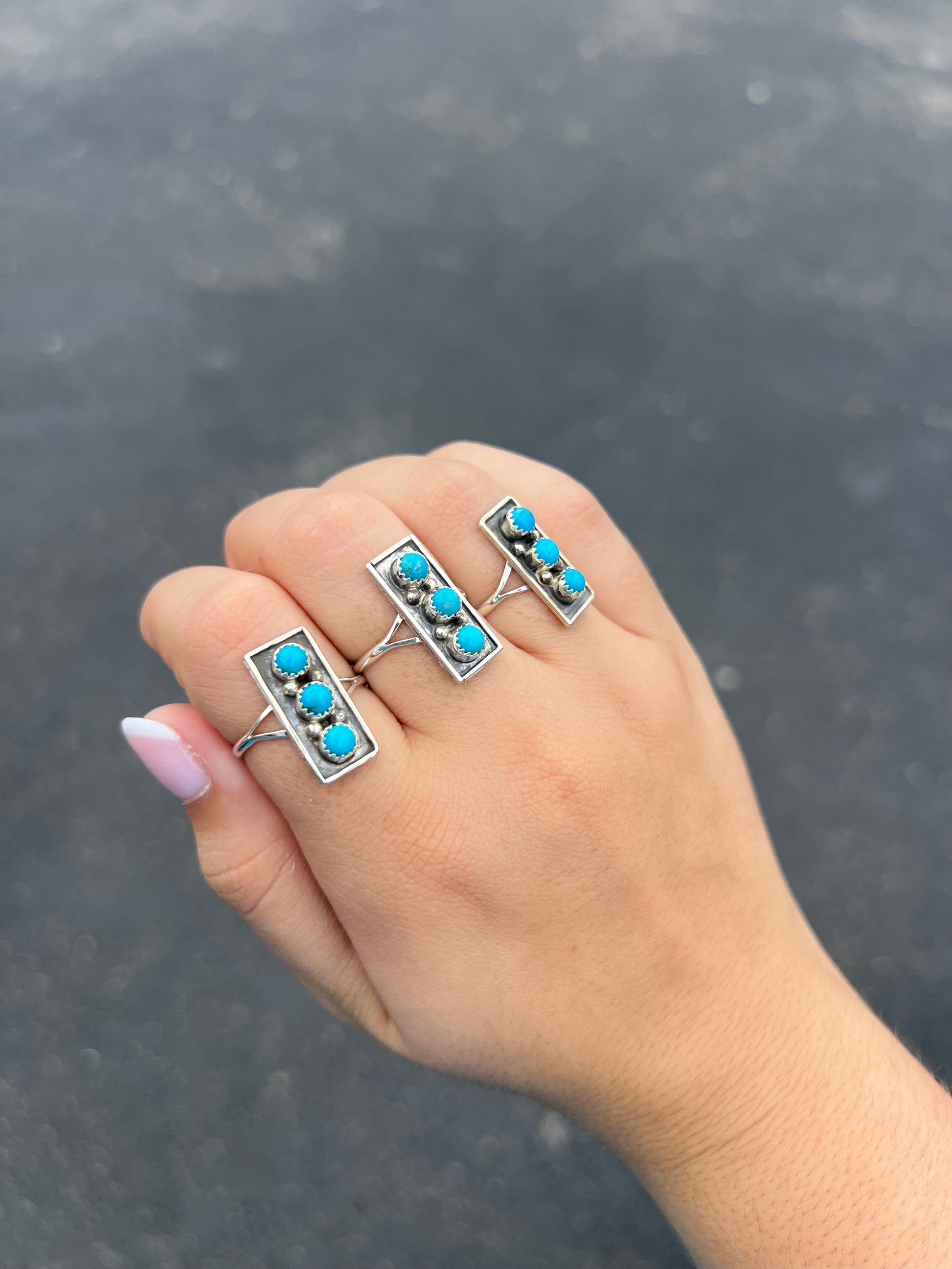 3 Stone Genuine Turquoise Sterling Silver Bar Ring