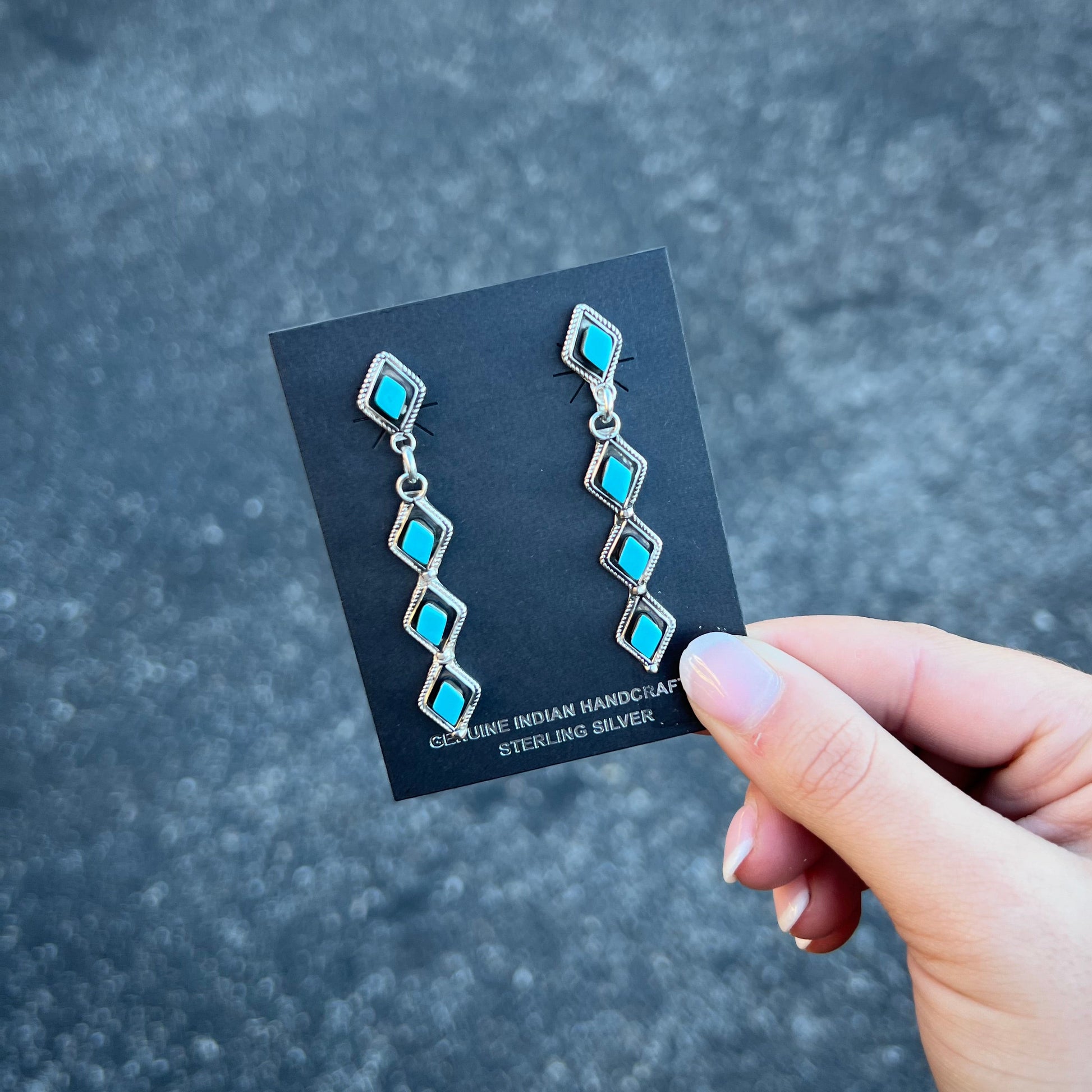 -Authentic Native American Handmade Genuine Turquoise Sterling Silver Dangle Earrings
