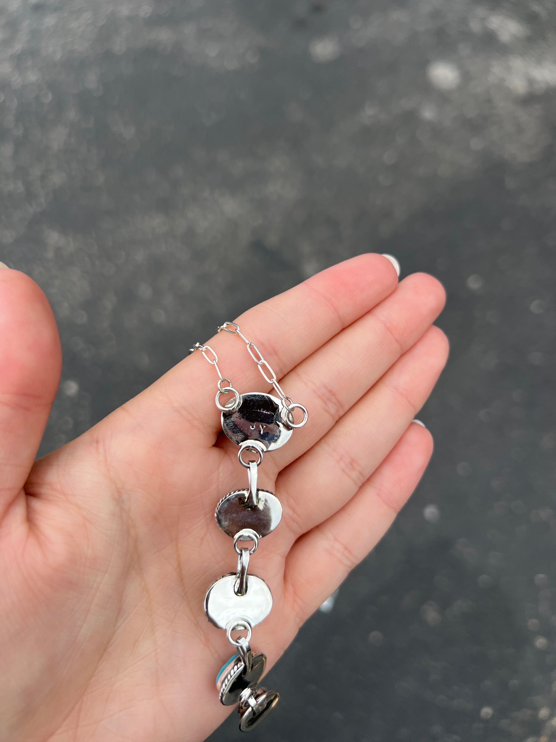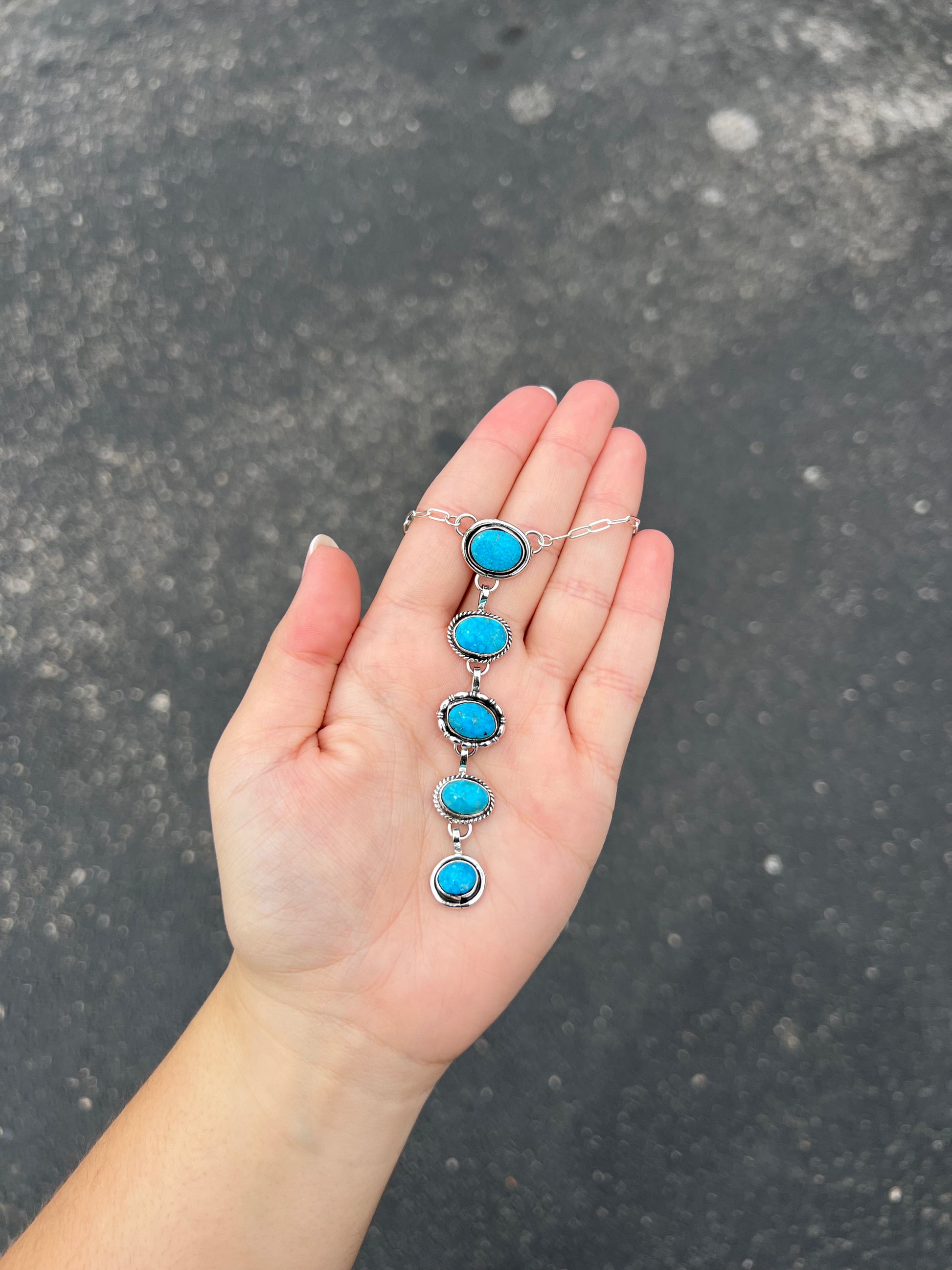 5 Stone Kingman Turquoise Sterling Silver Lariat Necklace