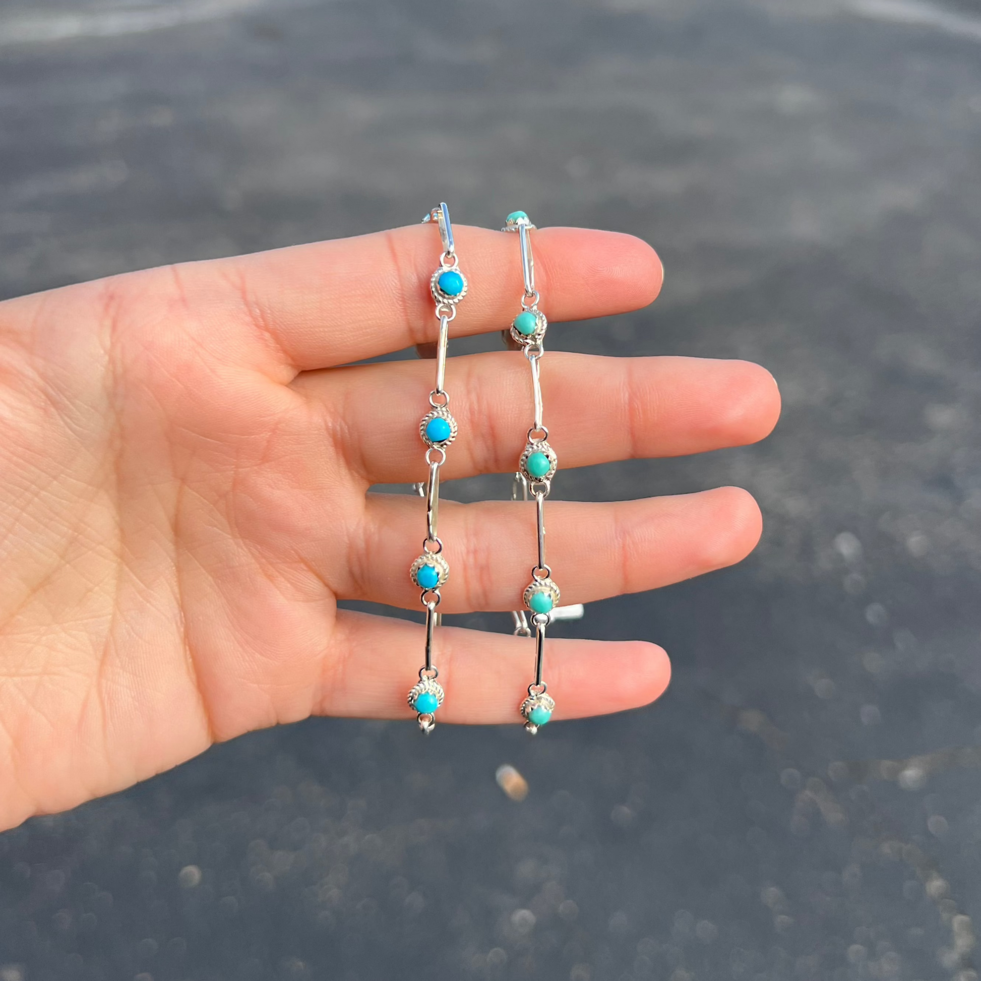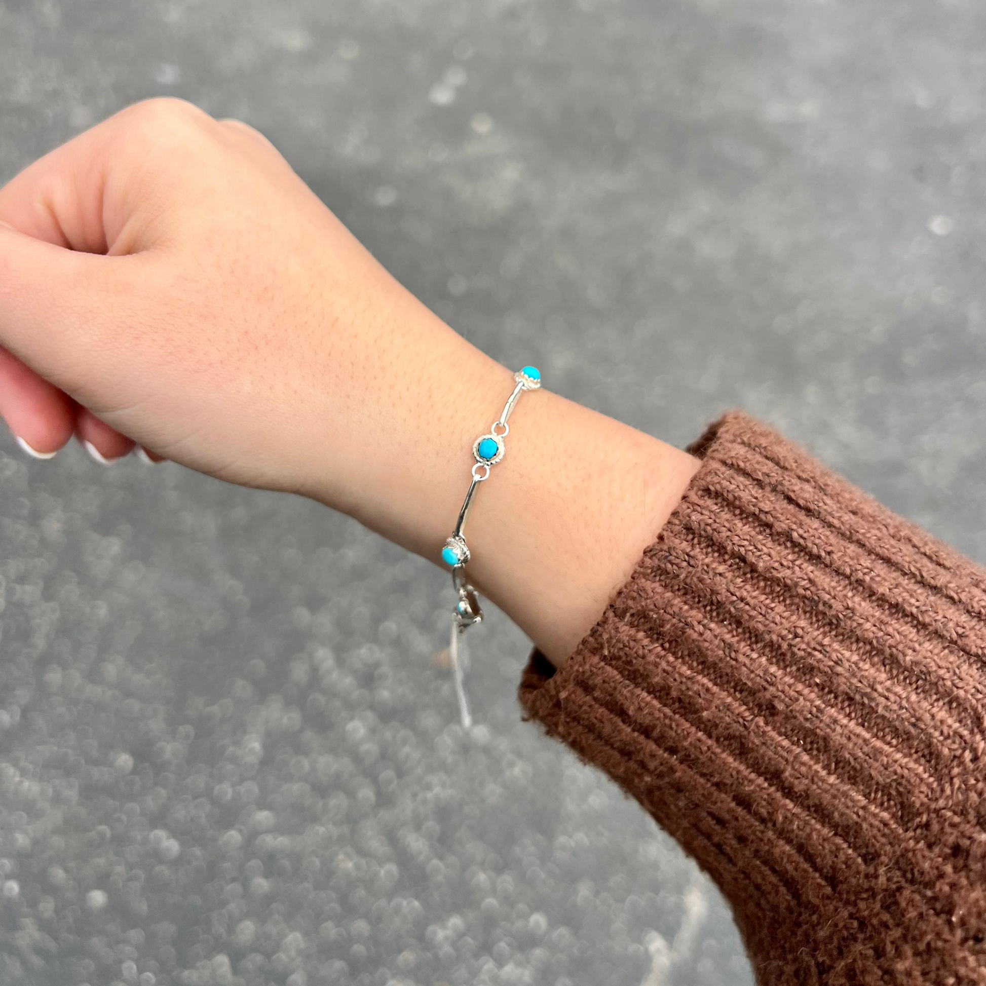 Authentic 8 Stone Turquoise Sterling Silver Link Bracelet