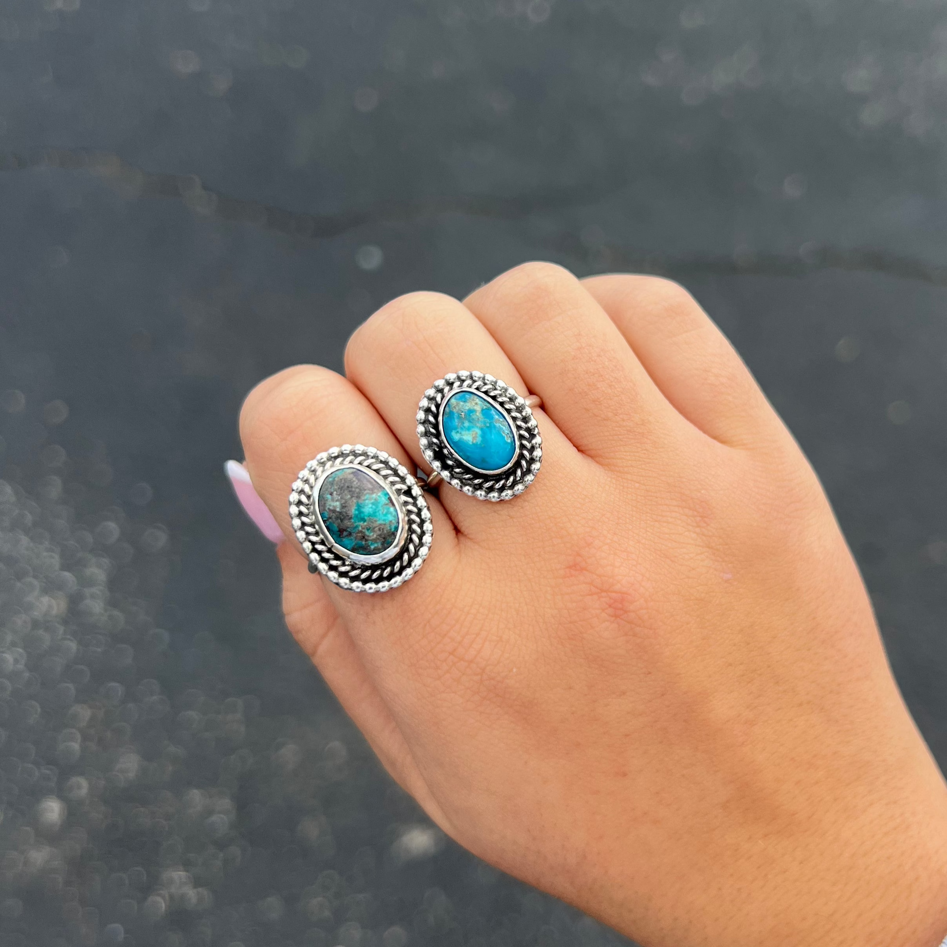 -Authentic Native American Handmade Genuine Turquoise and Sterling Silver Ring
