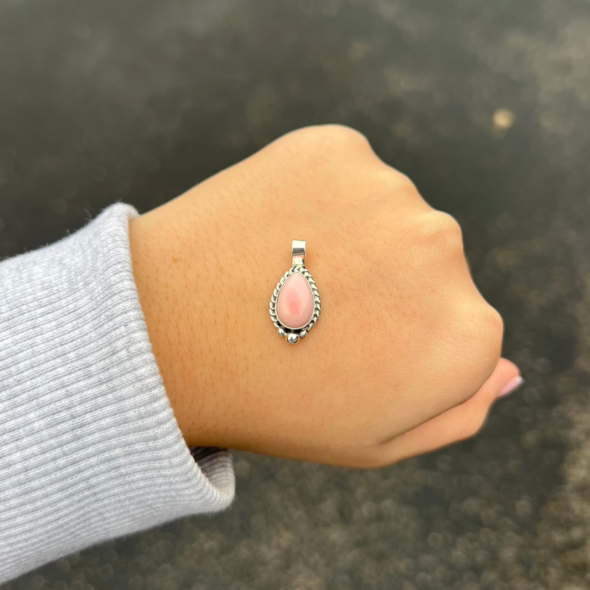 Authentic Pink Conch Teardrop Sterling Silver Pendant