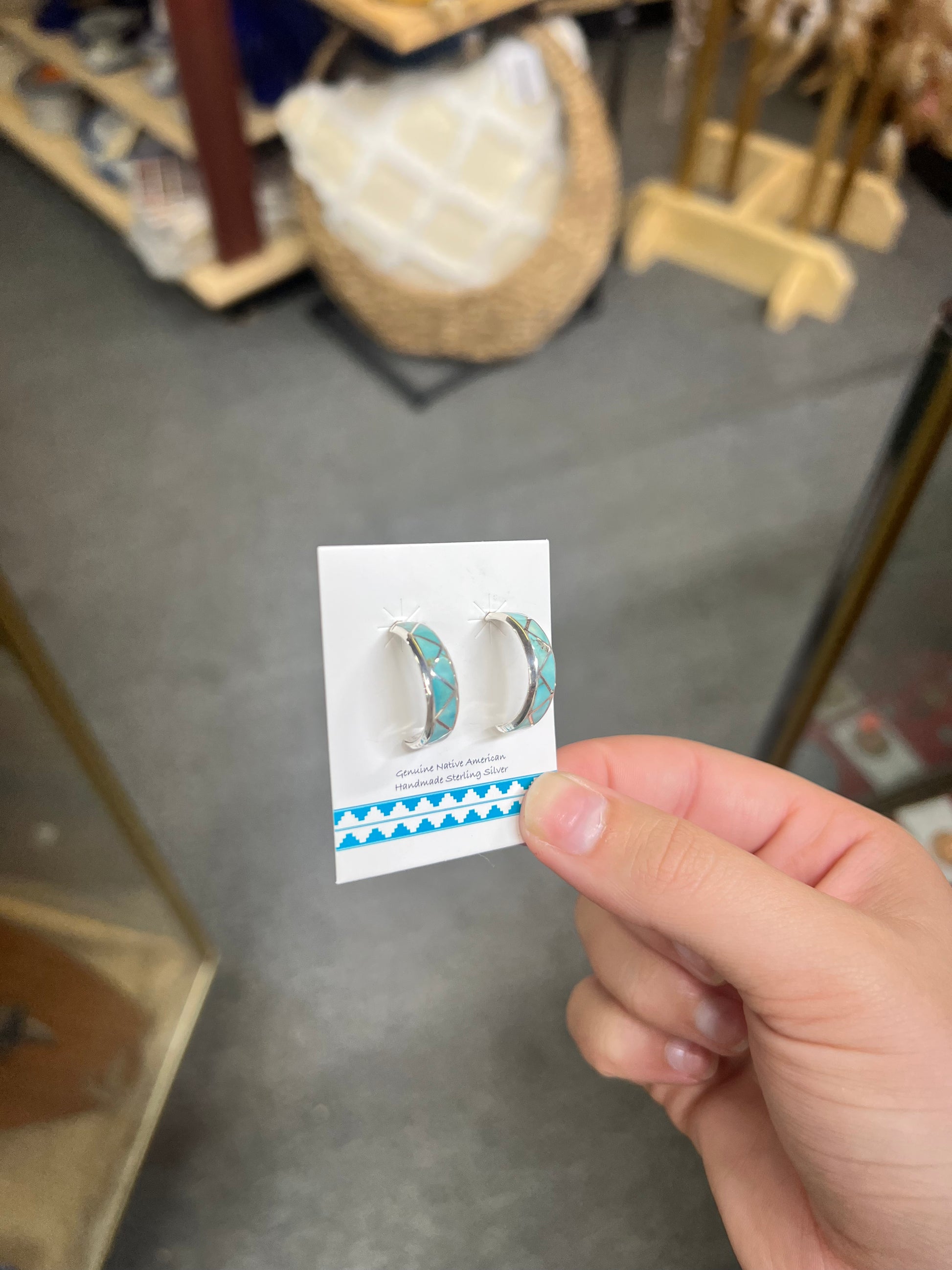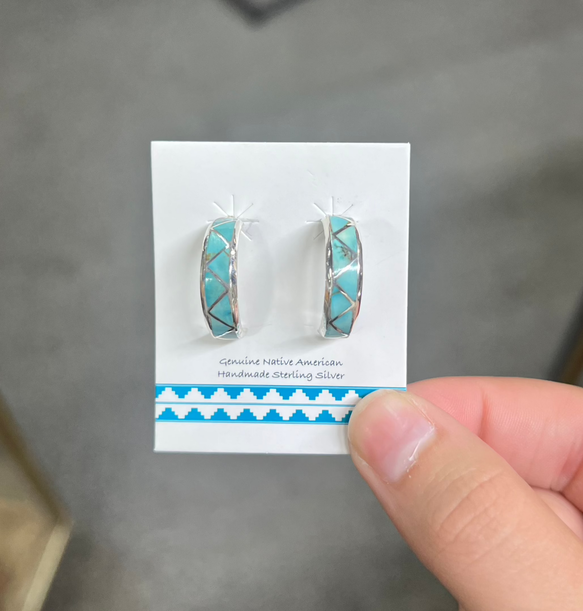 -Authentic Native American Handmade Sterling Silver and Genuine Turquoise Earrings