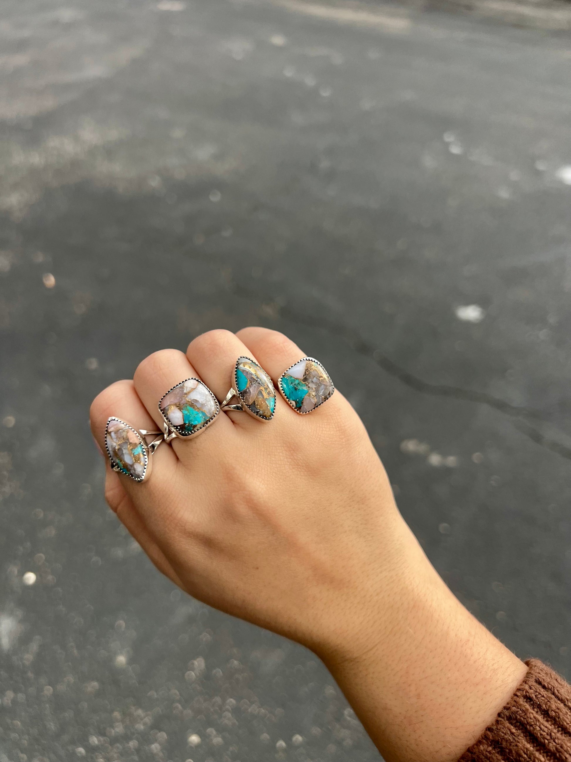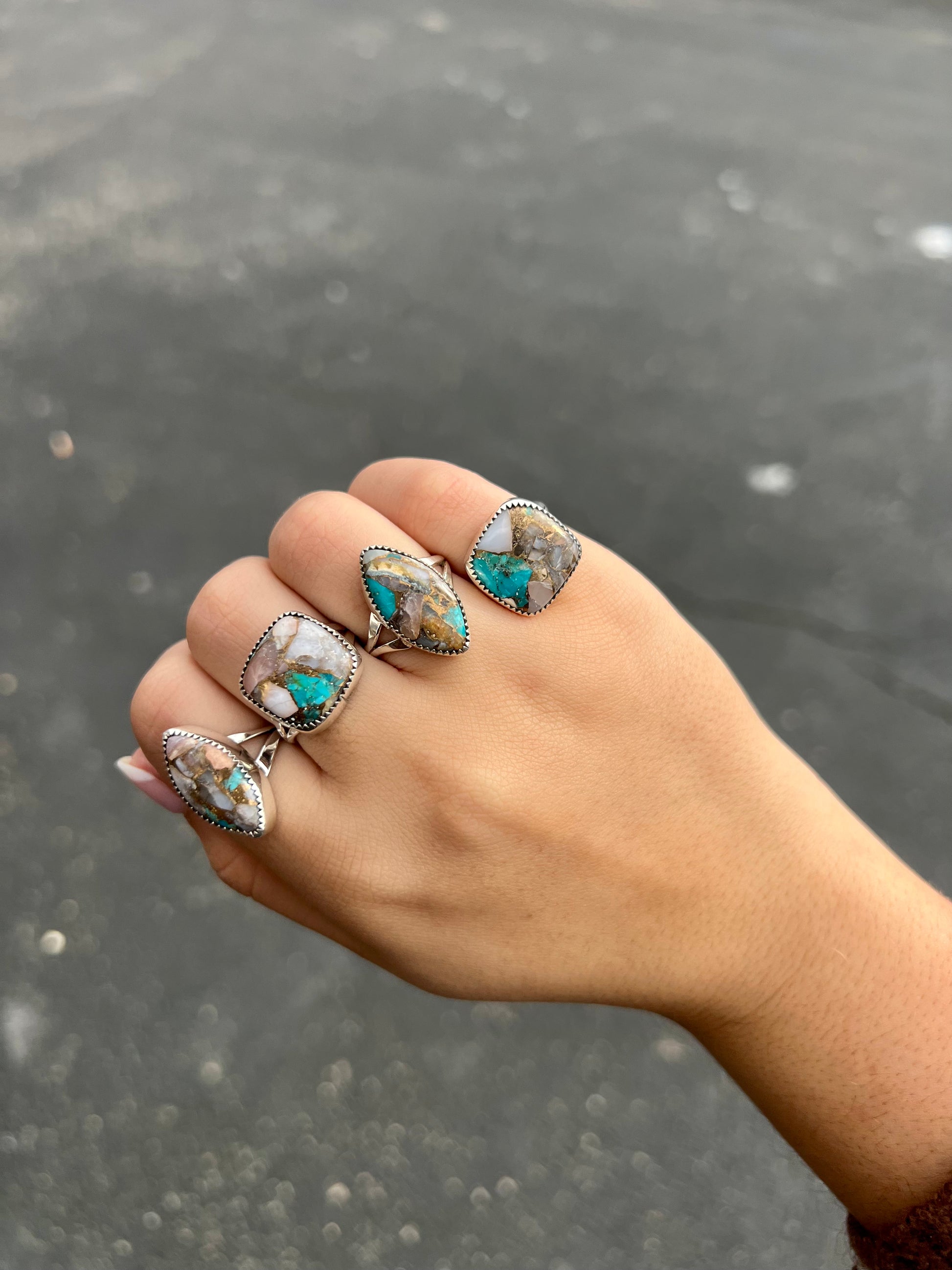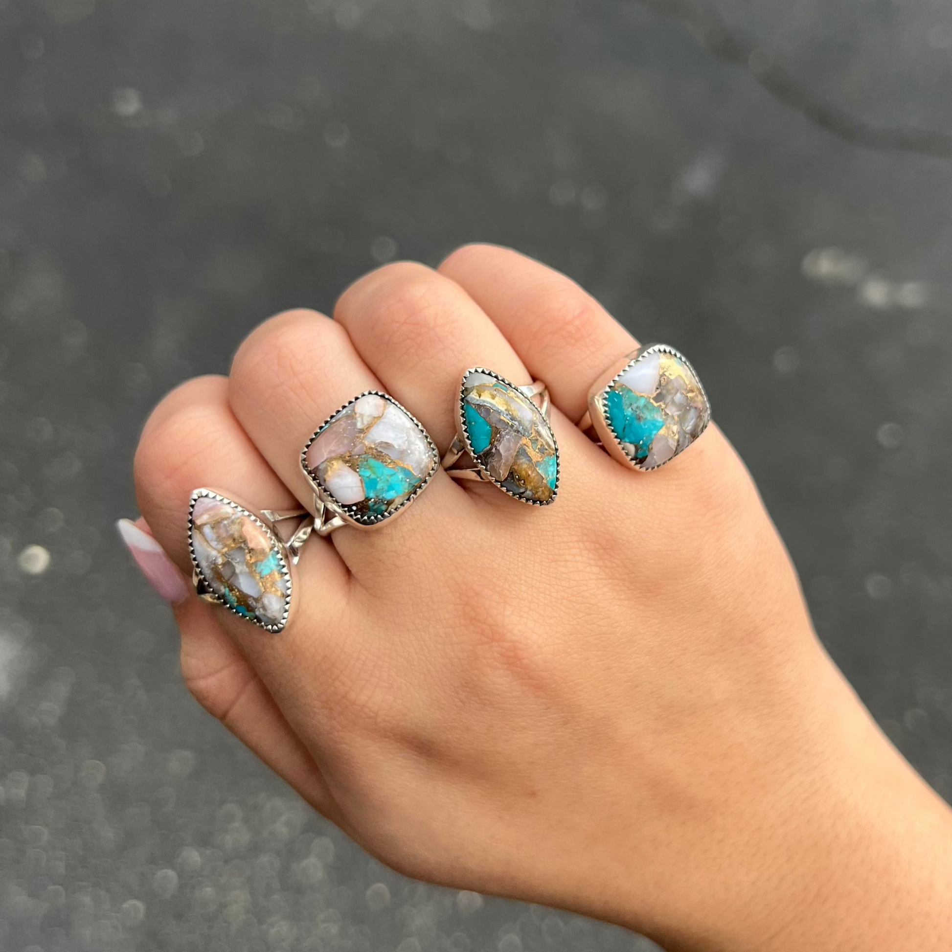 Authentic Turquoise, Shell, and Bronze Sterling Silver Ring
