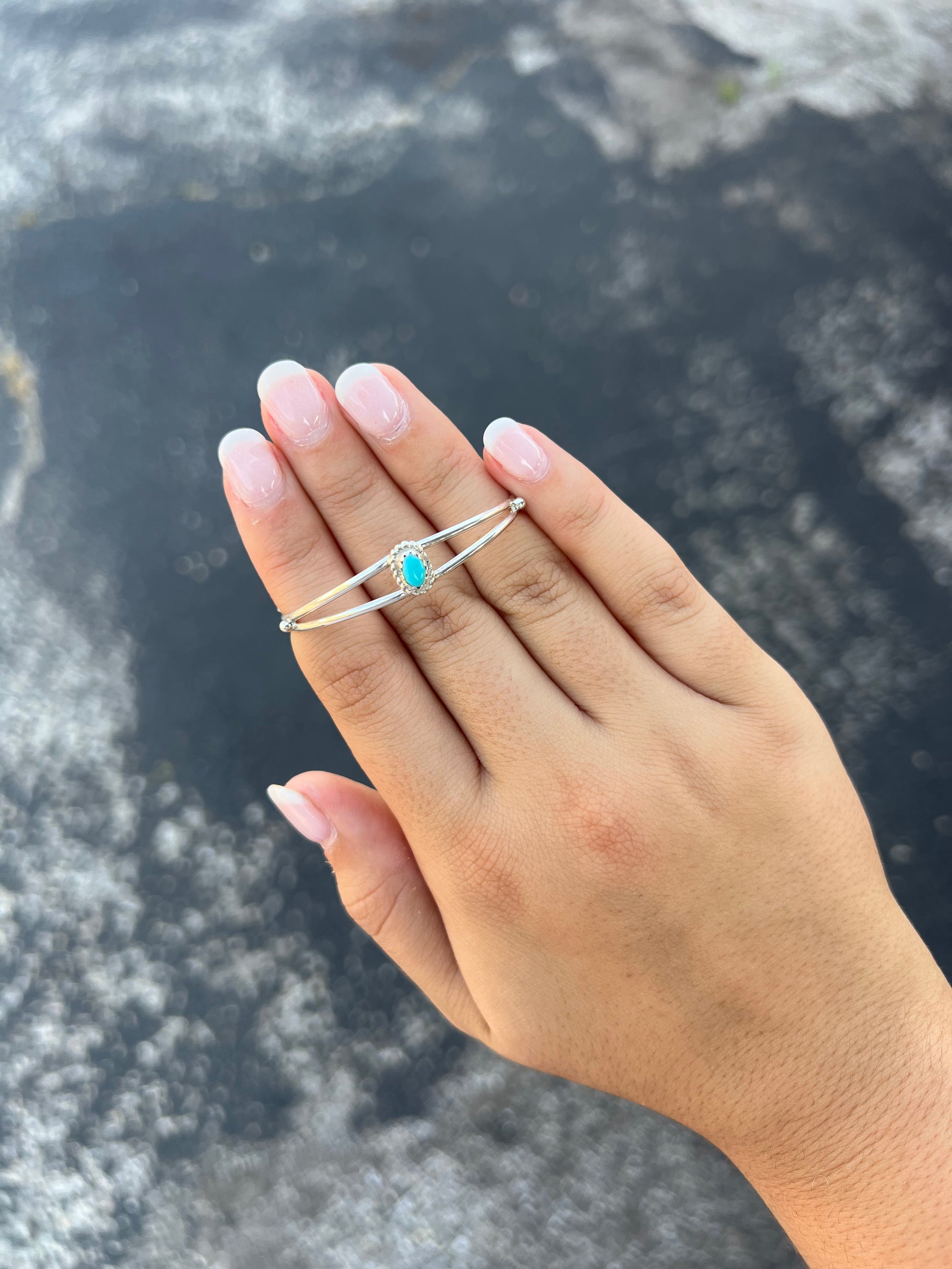 Baby Bracelet Genuine Turquoise Sterling Silver Split Cuff