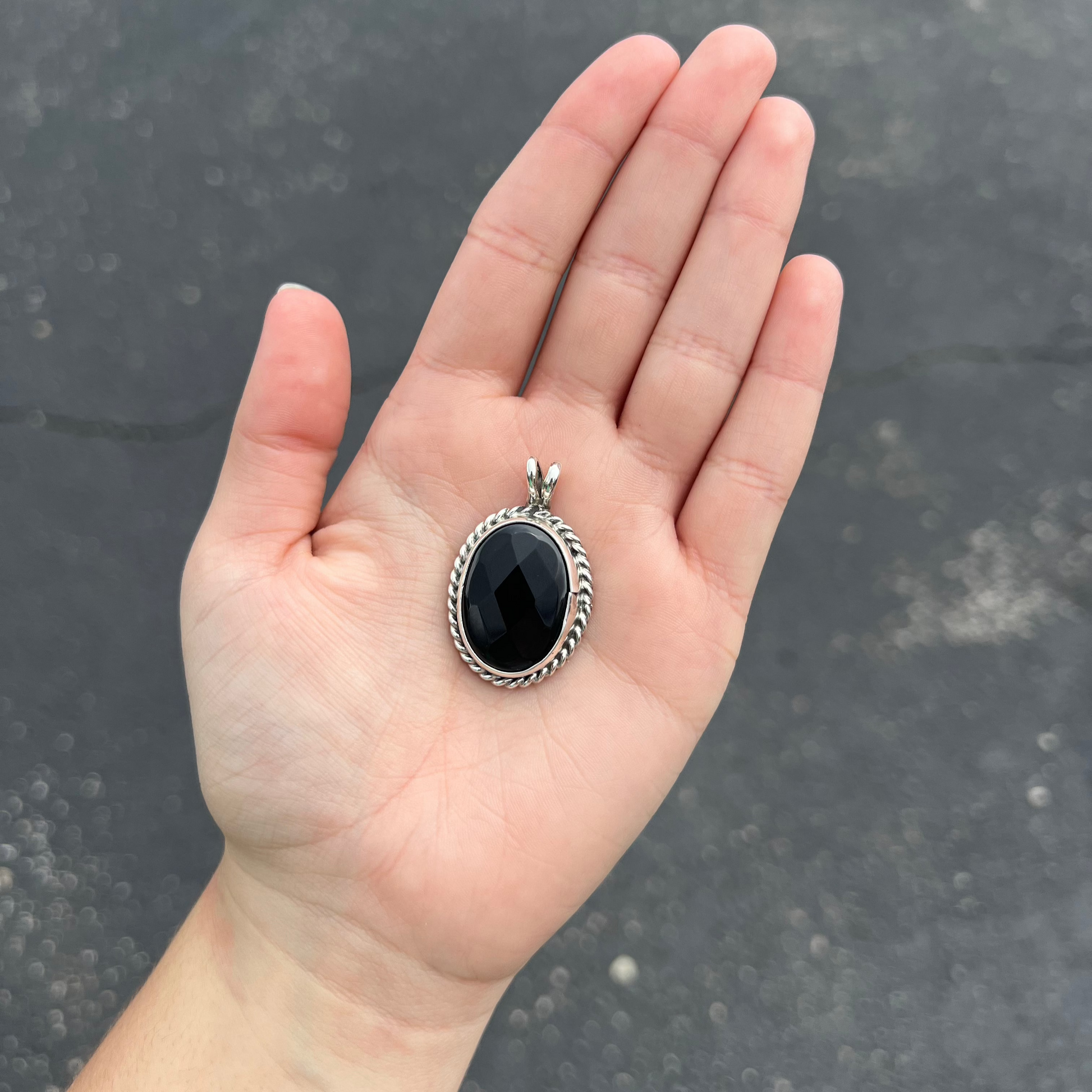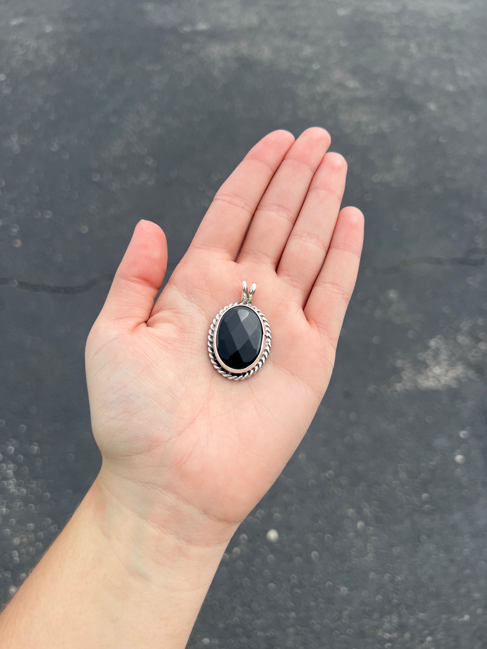 Black Onyx Faceted Oval Sterling Silver Pendant