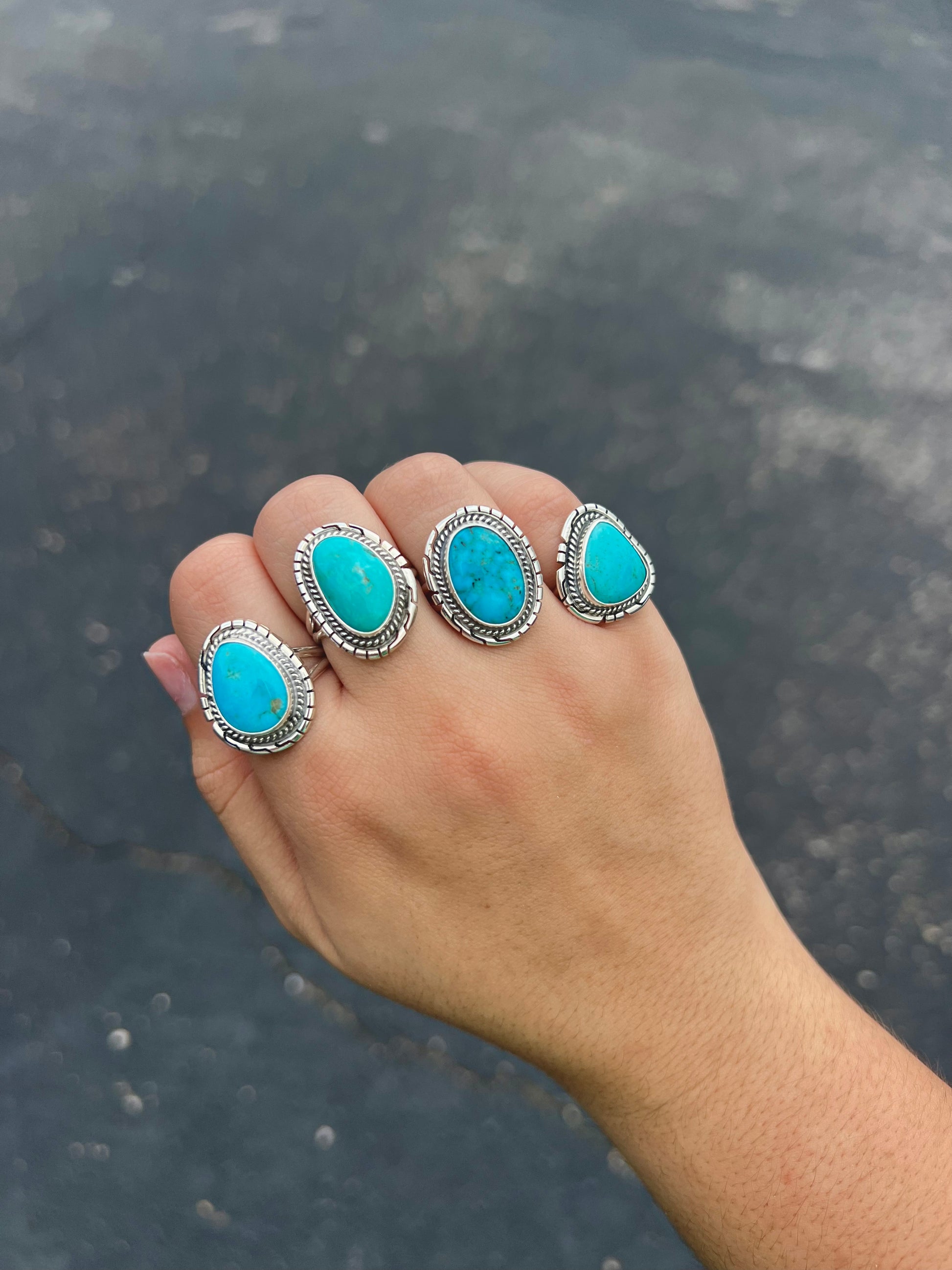 -Native American Handmade Genuine Turquoise Sterling Silver Ring
