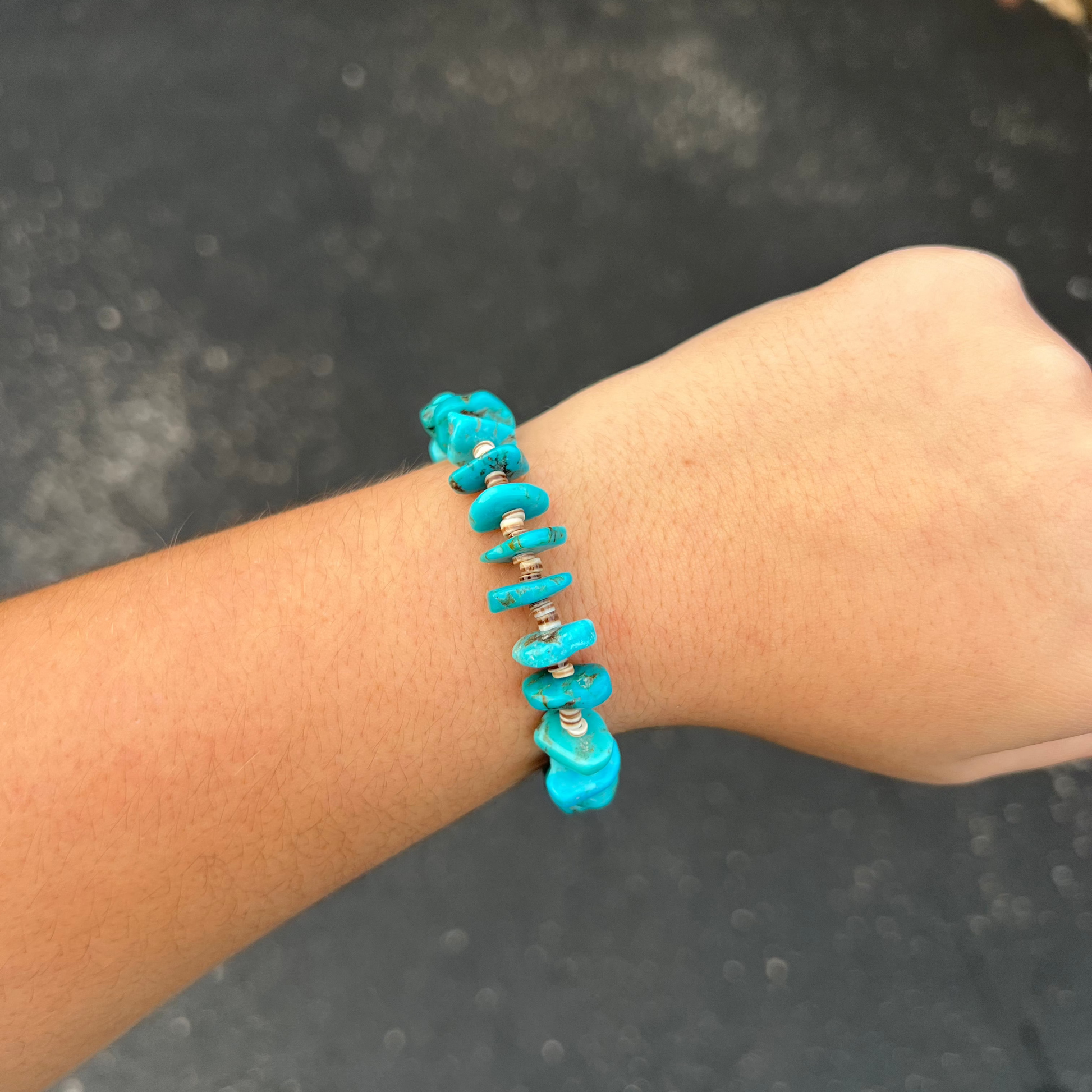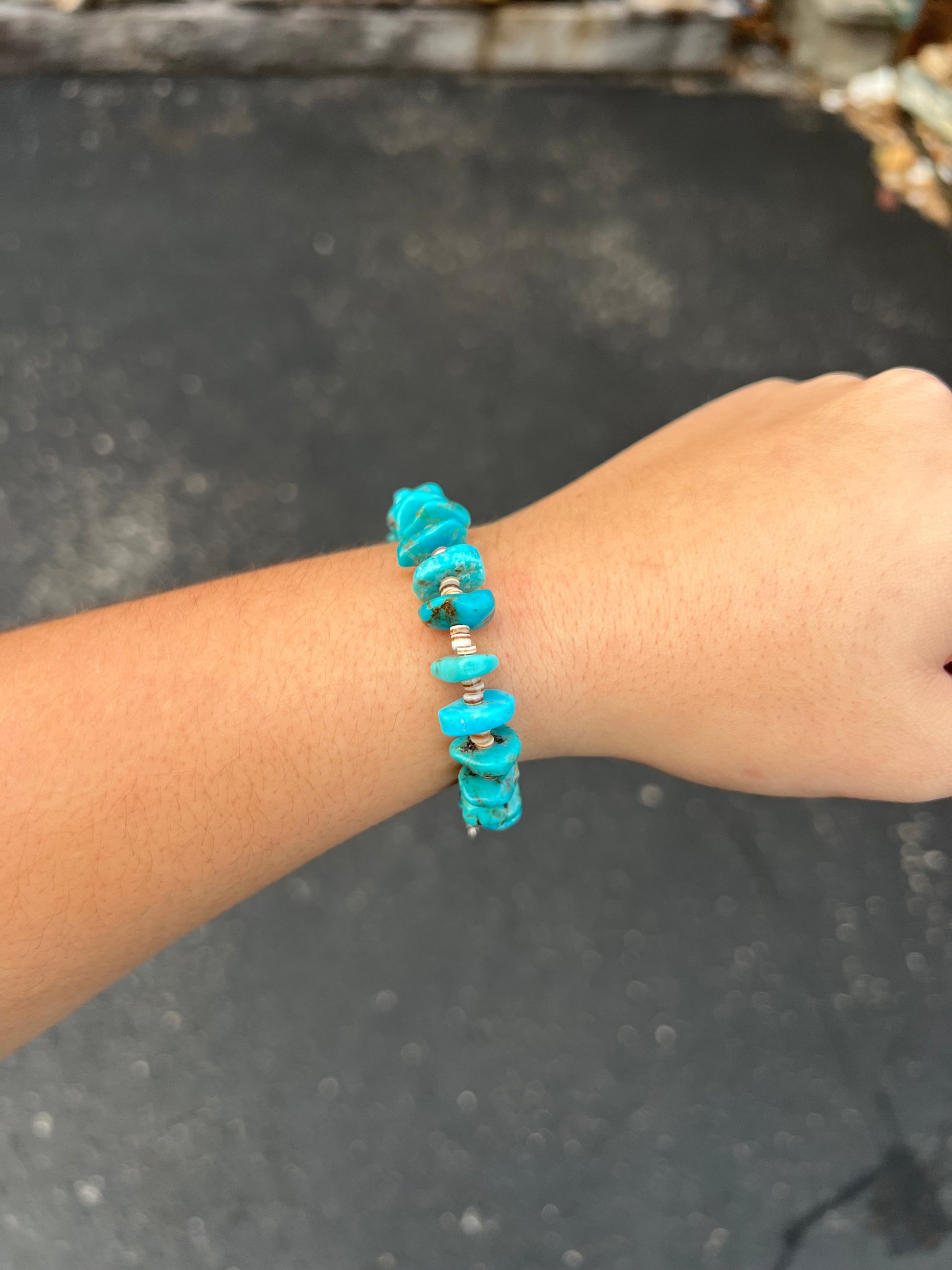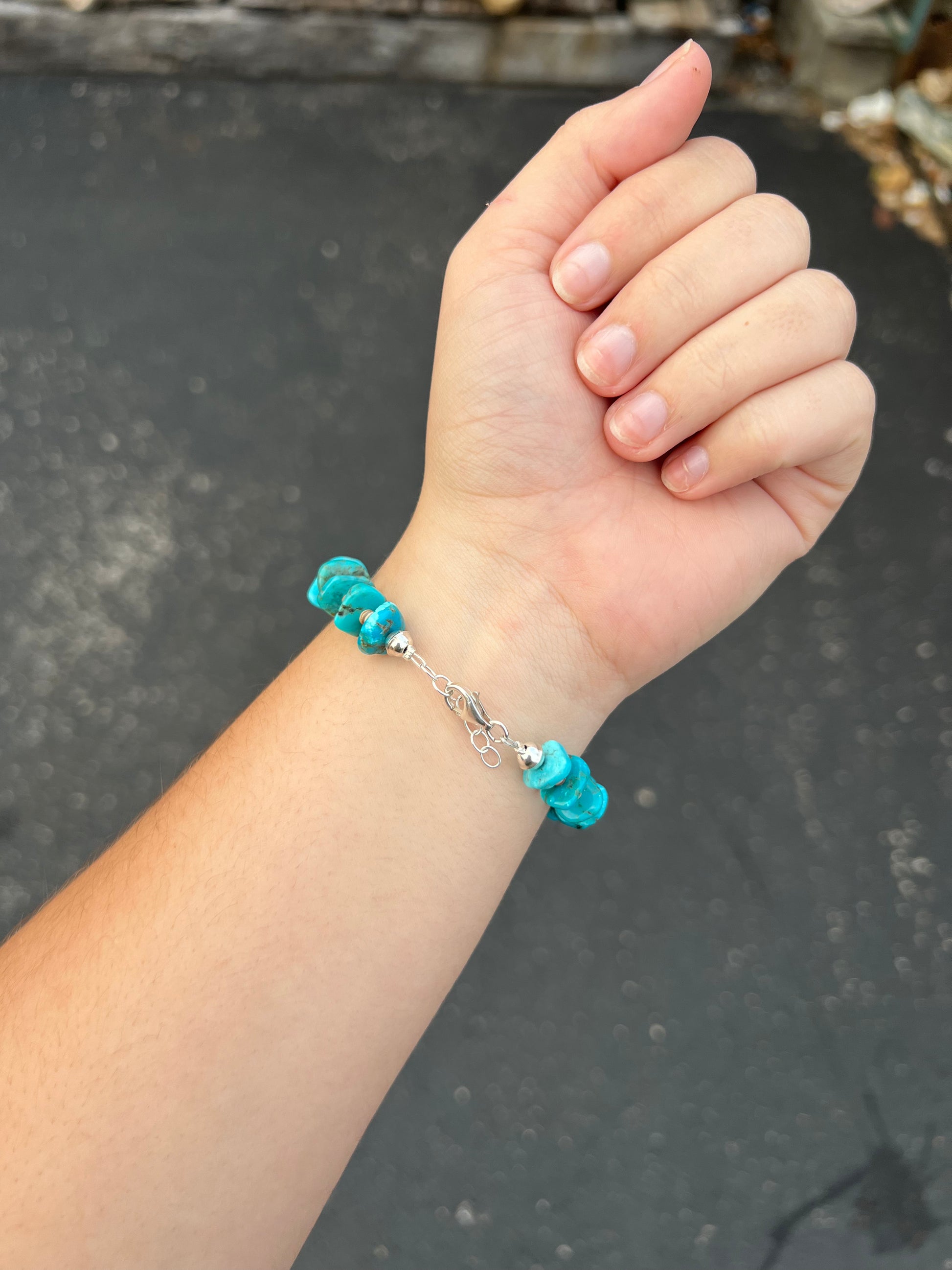 Genuine Campitos Turquoise Nugget Heishi Sterling Silver Bracelet