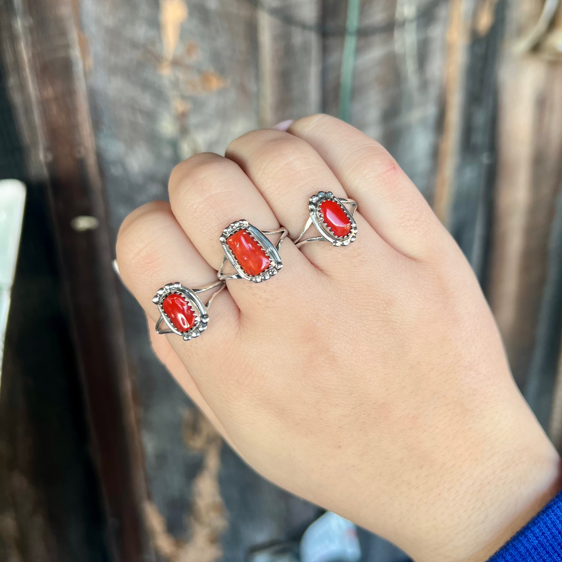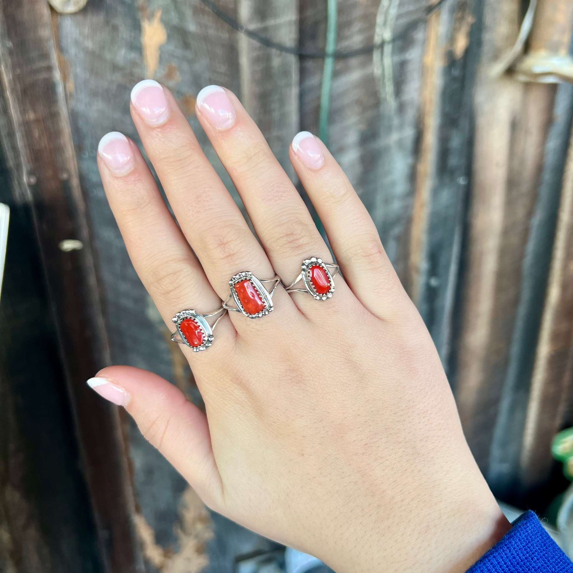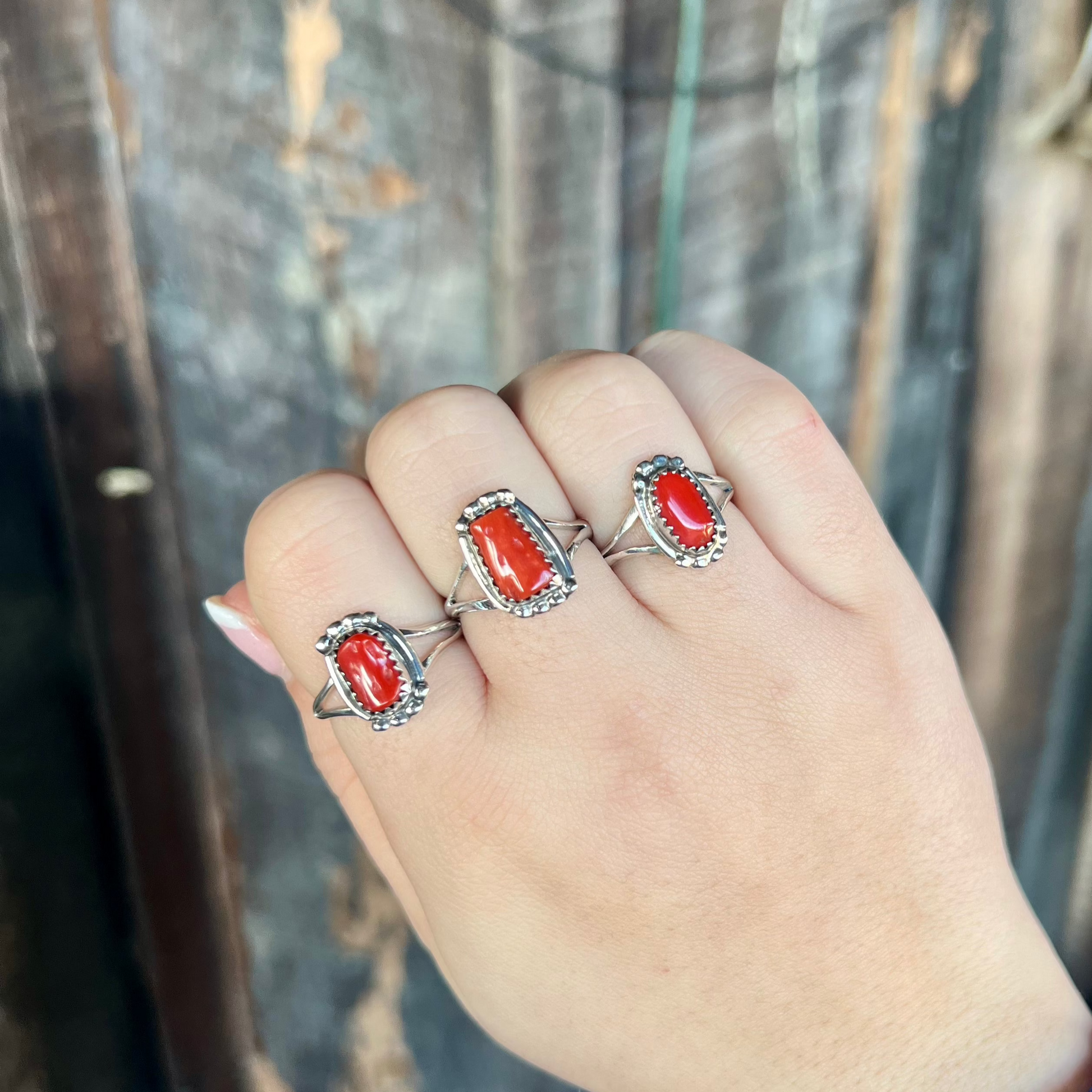 -Authentic Native American Handmade Genuine Coral Sterling Silver Ring