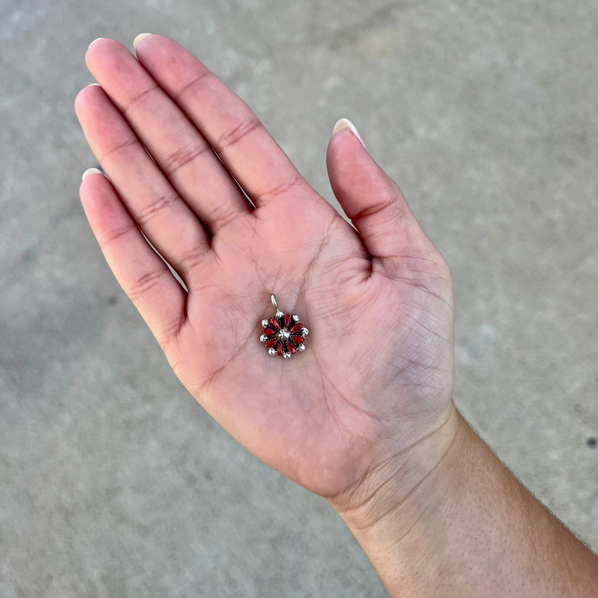 Genuine Coral Sterling Silver Petti Point Flower Cluster Pendant