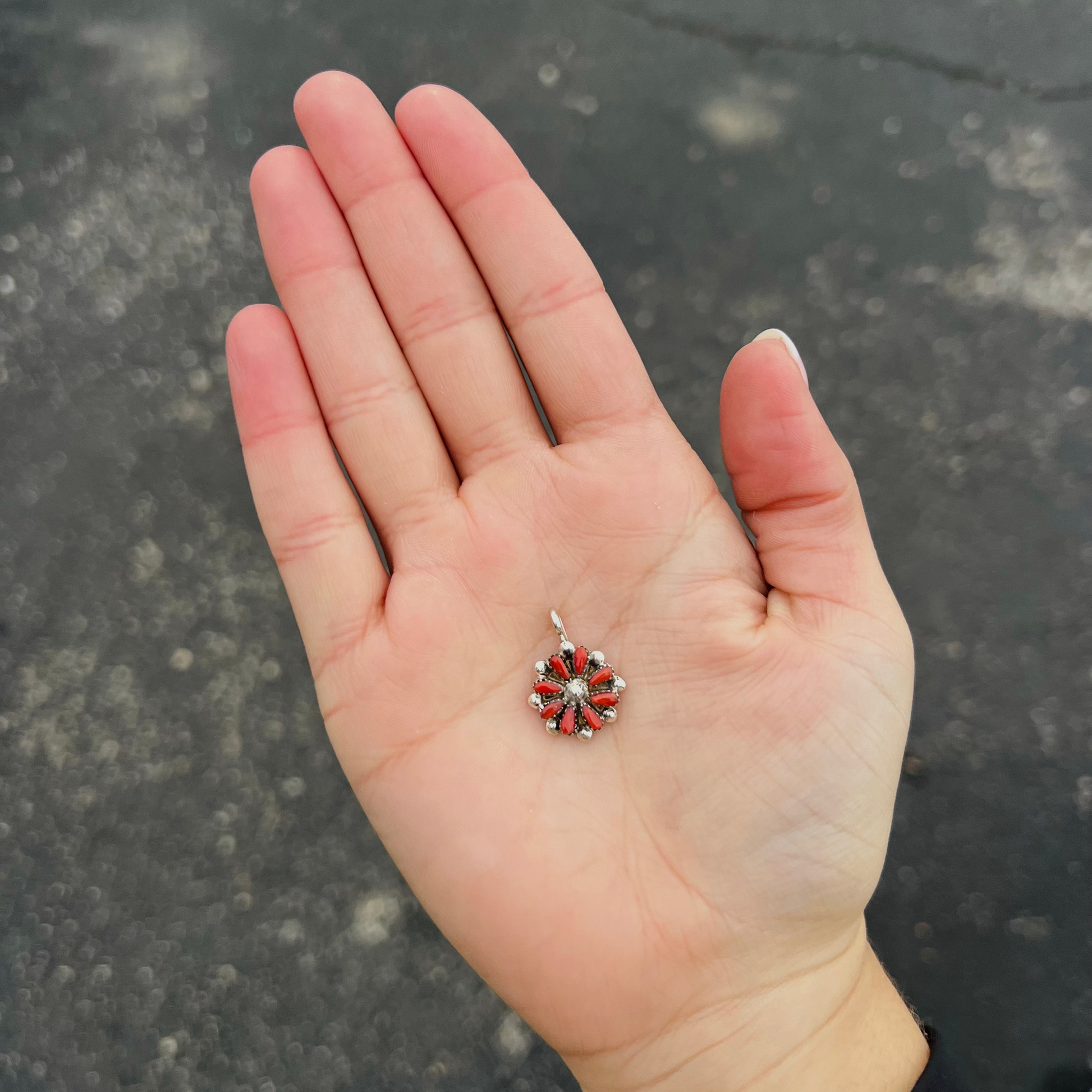 -Authentic Native American Handmade Genuine Coral Sterling Silver Pendant