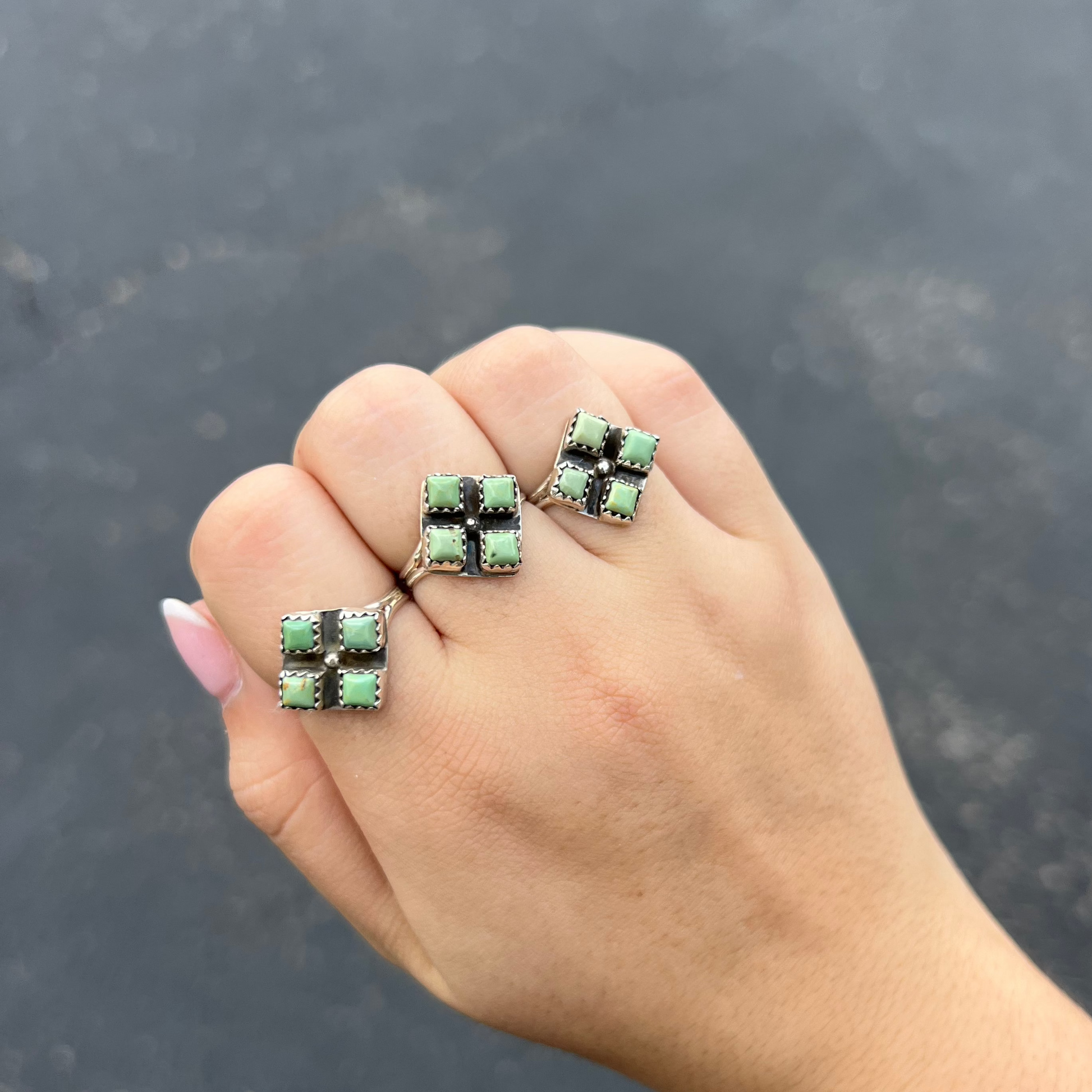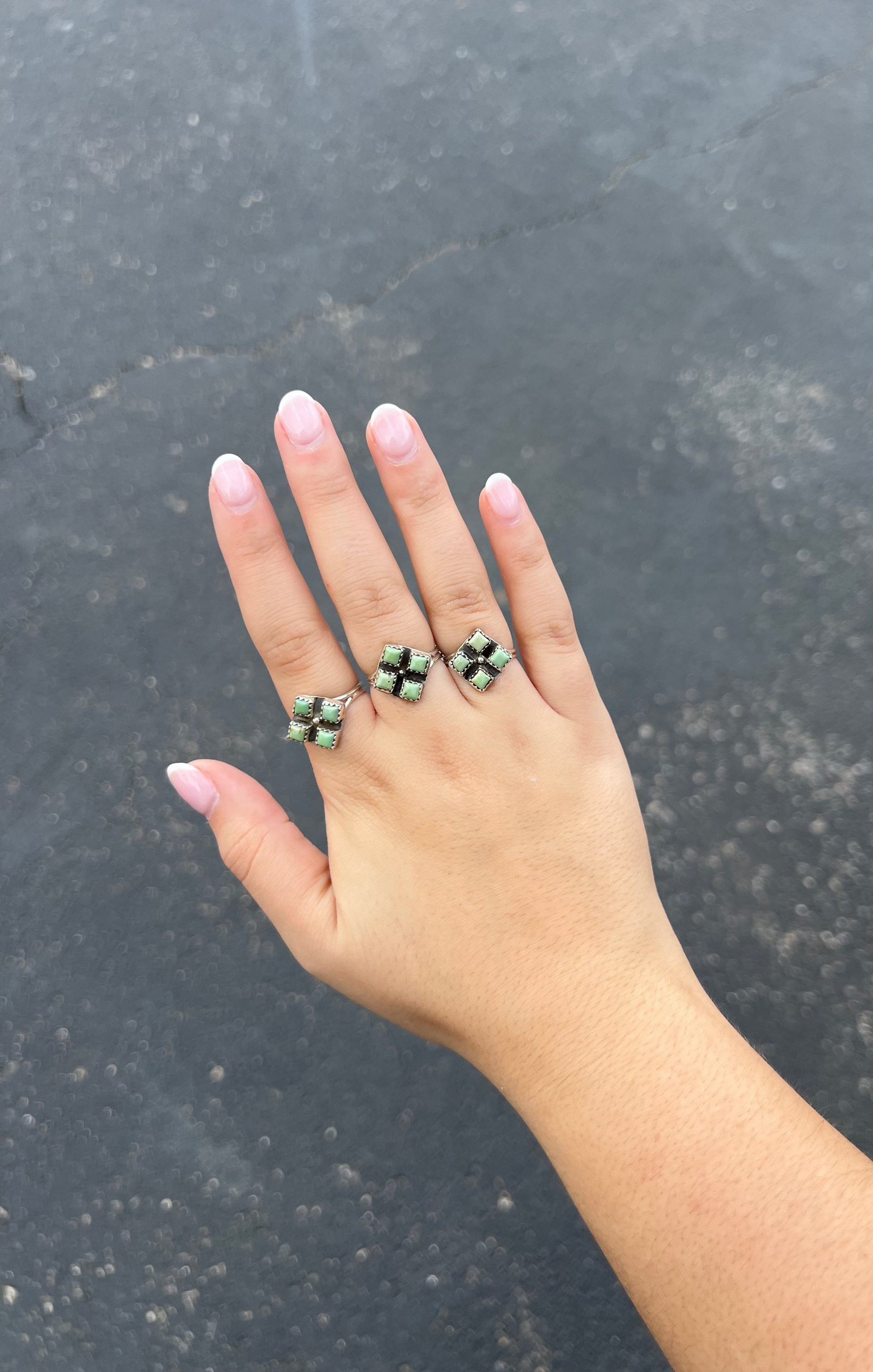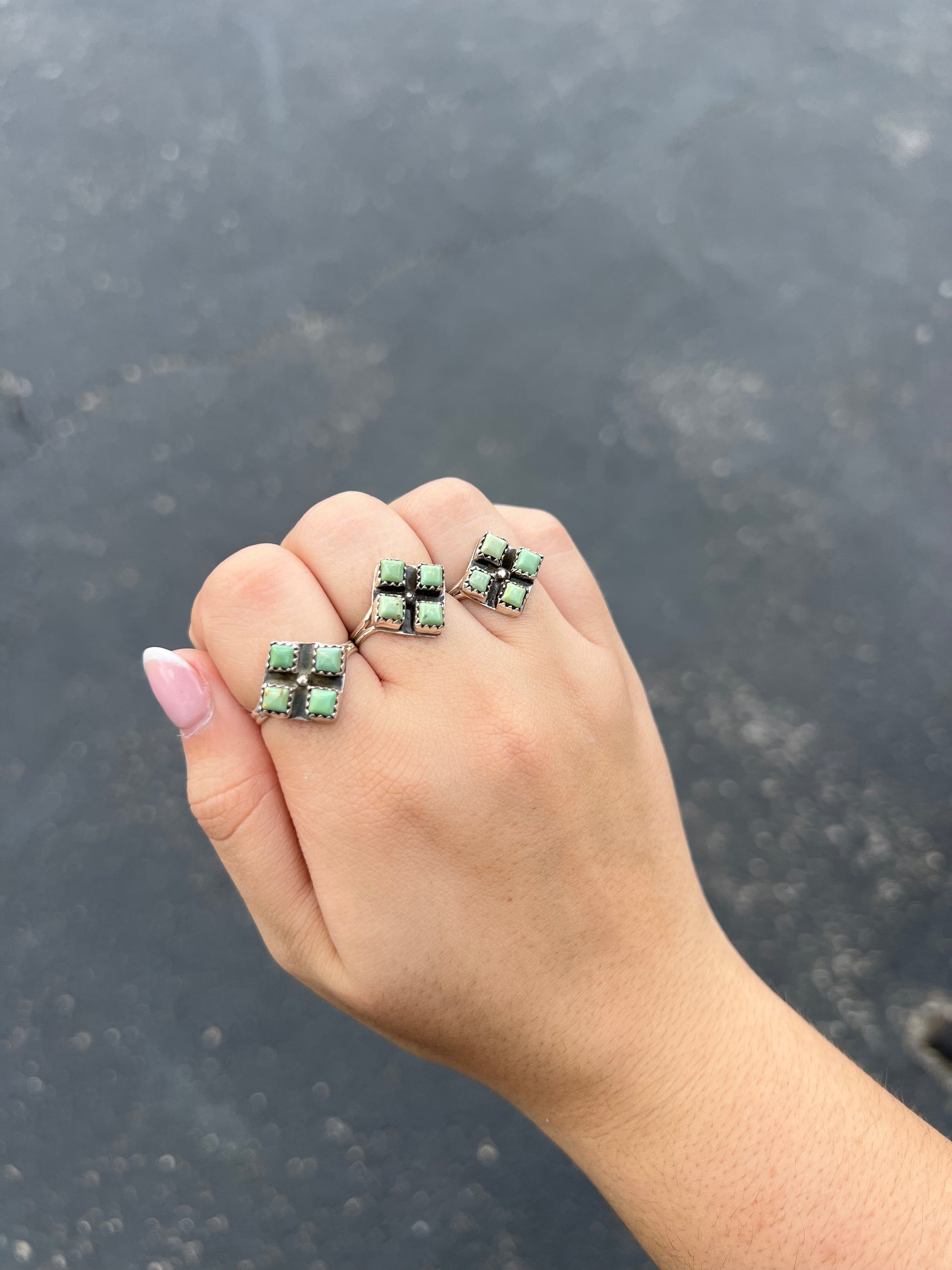 Genuine Green Kingman Turquoise 4 Stone Diamond Sterling Silver Ring