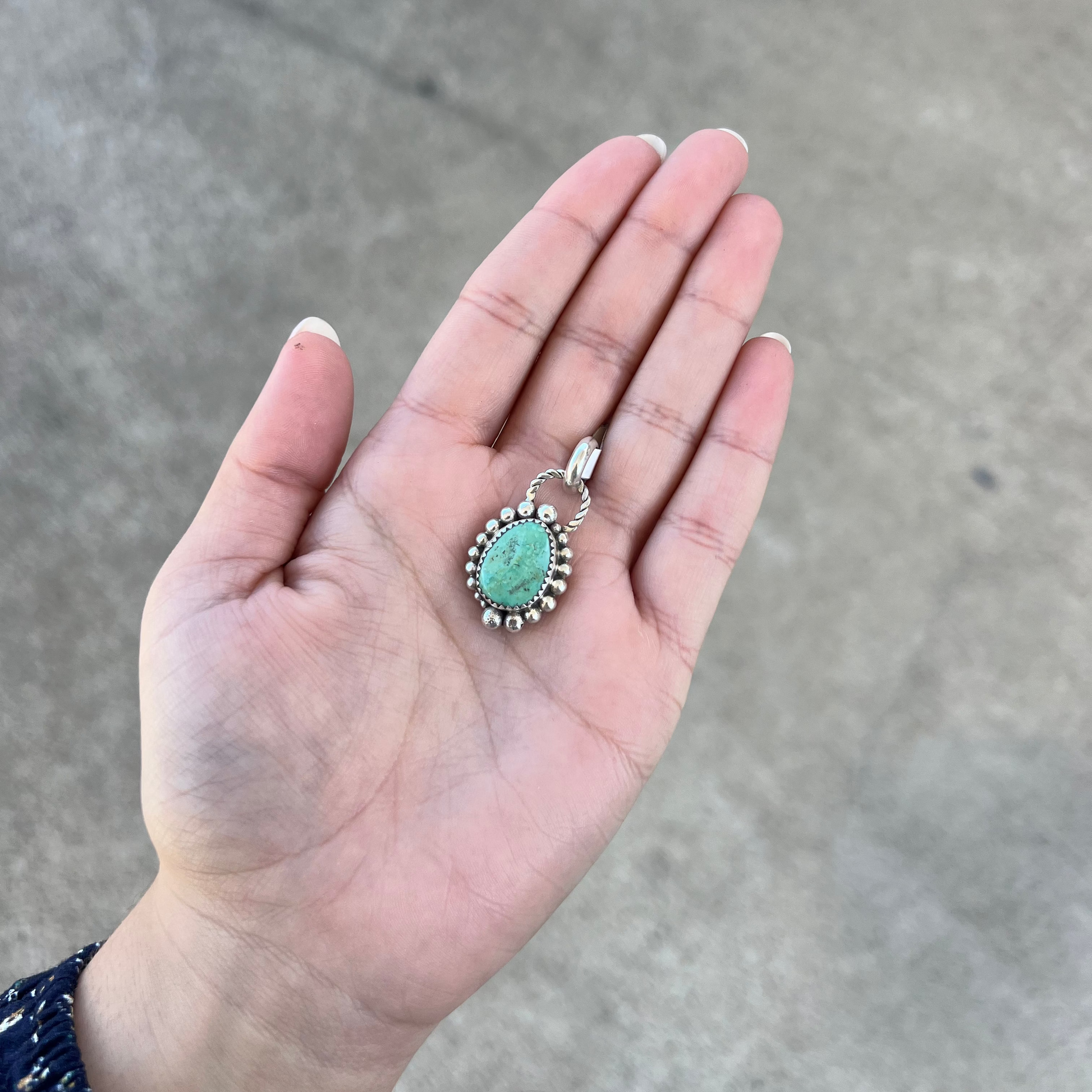Genuine Green Turquoise Double Loop Sterling Silver Beaded Pendant