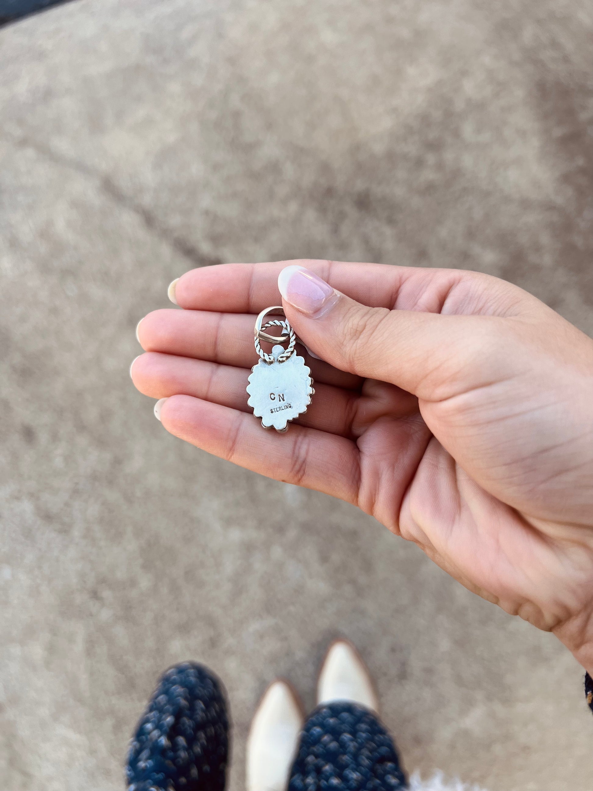 -Authentic Native American Handmade Genuine Turquoise Sterling Silver Pendant