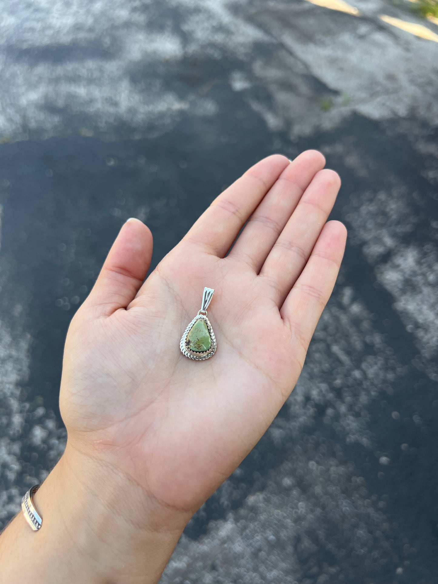 Genuine Green Turquoise Sterling Silver Teardrop Pendant