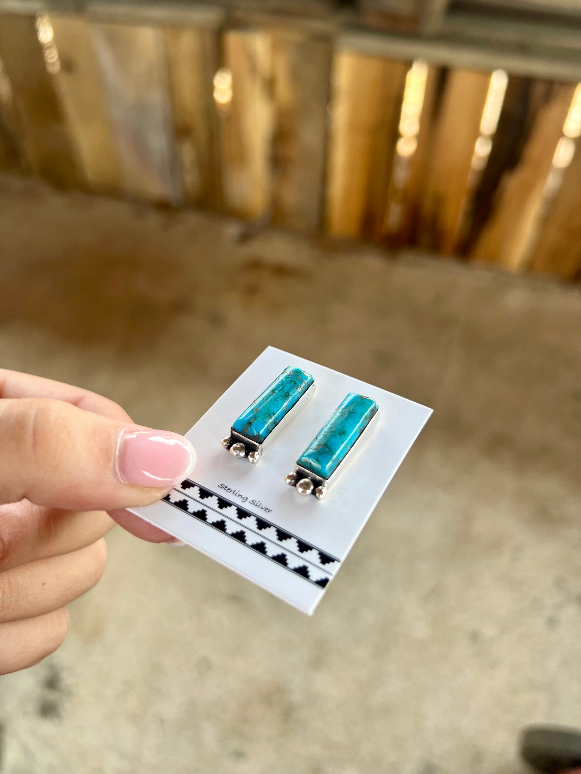 Genuine Kingman Turquoise and Sterling Silver Bar Earrings