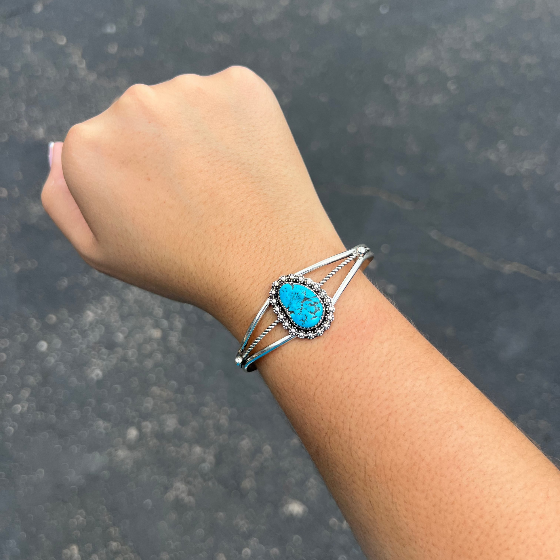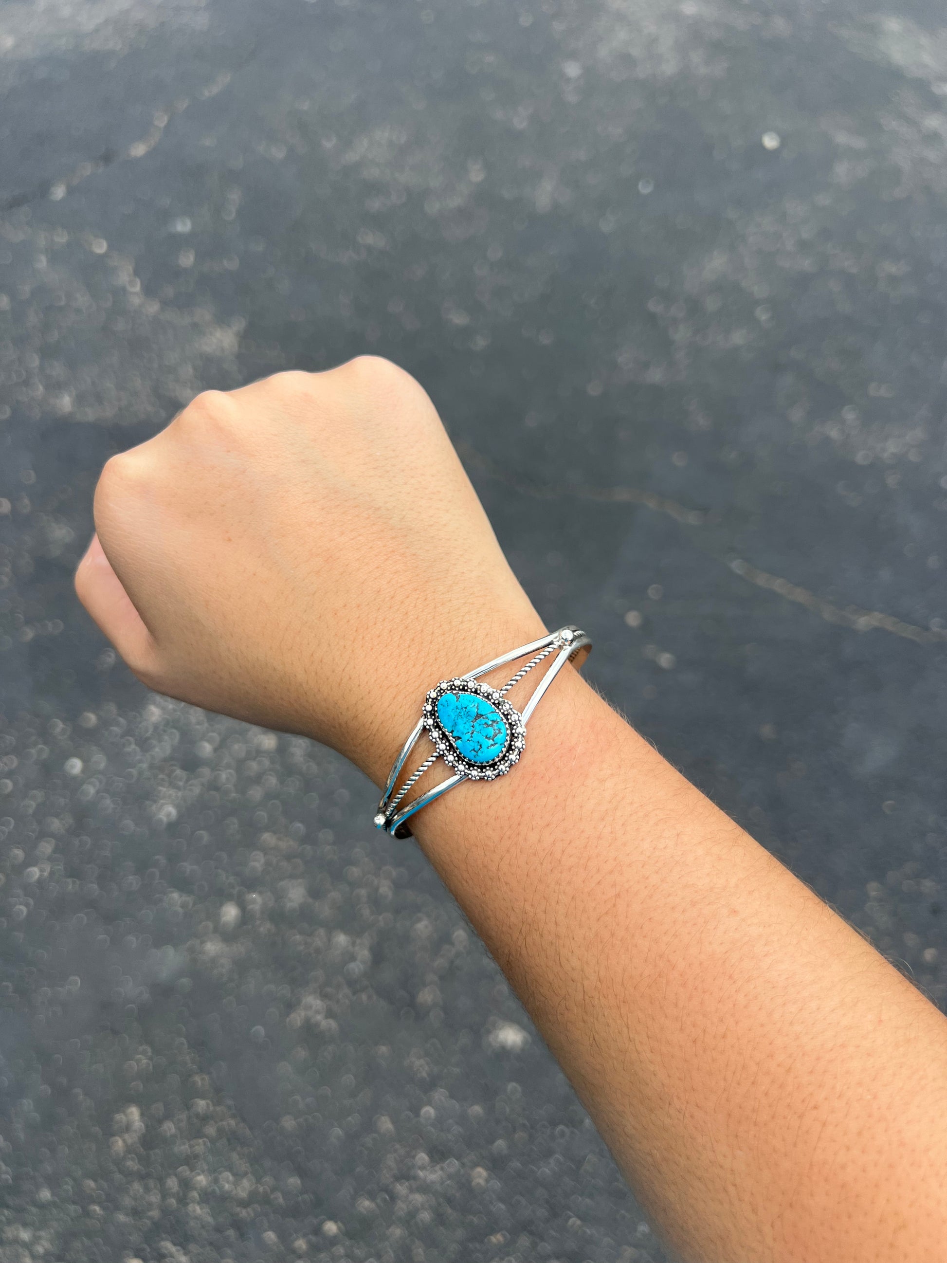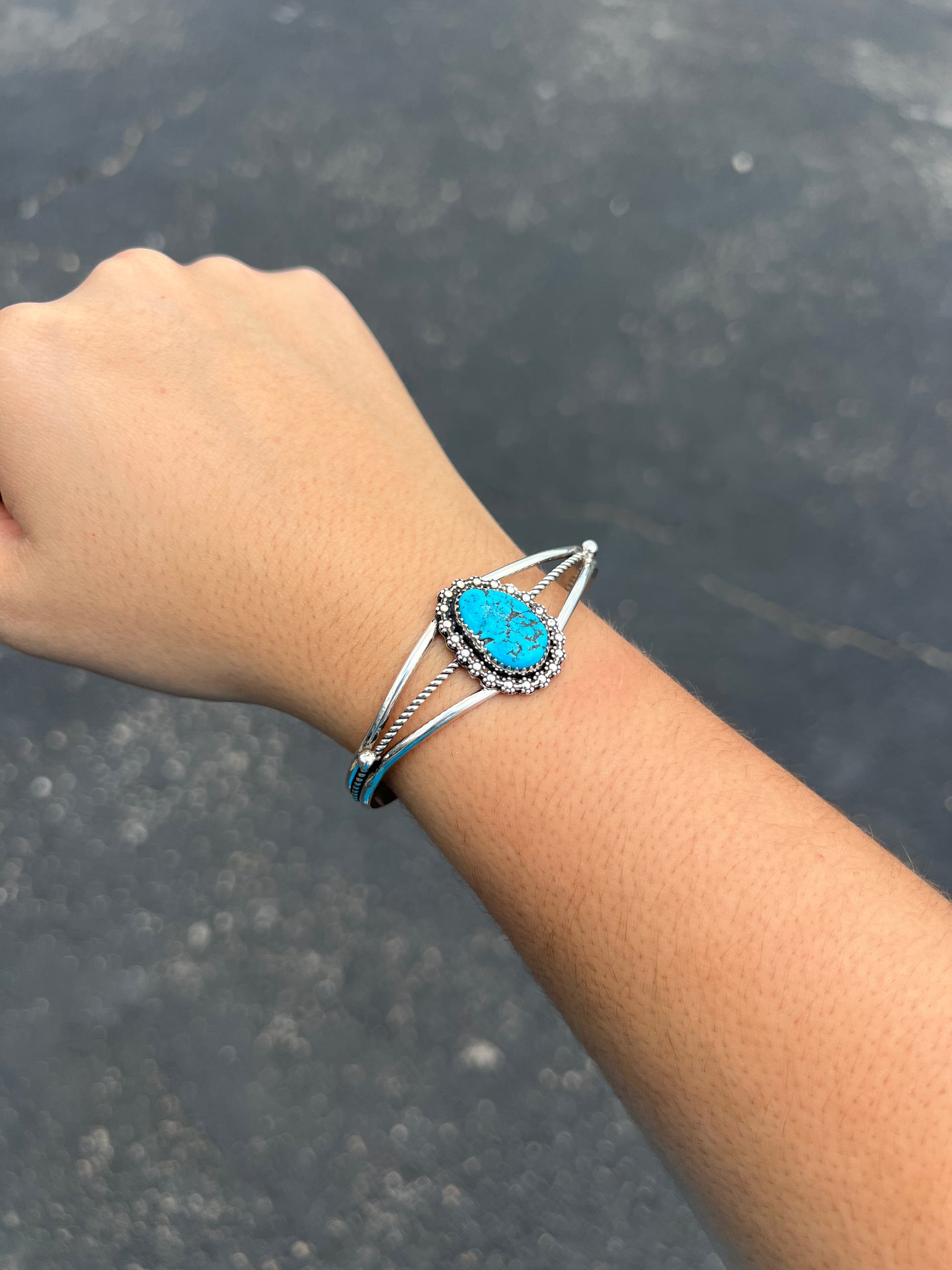 -Authentic Native American handmade Kingman Turquoise Sterling Silver Cuff