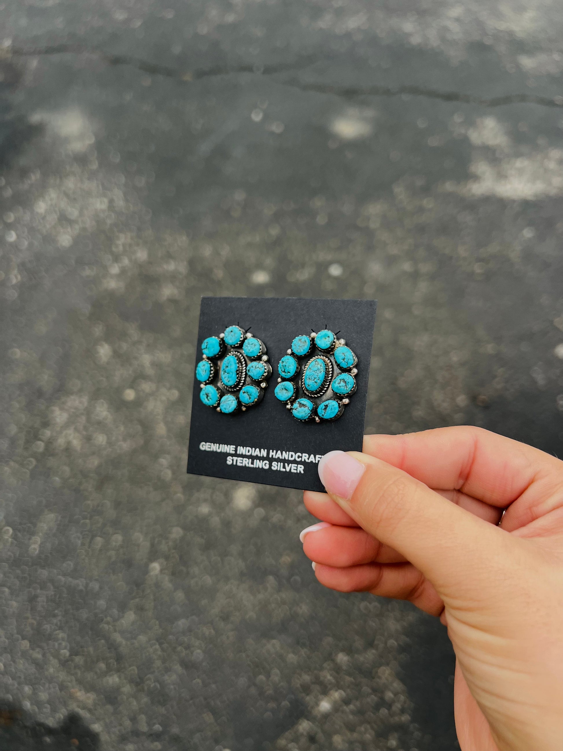 Genuine Kingman Turquoise Cluster Statement Earrings