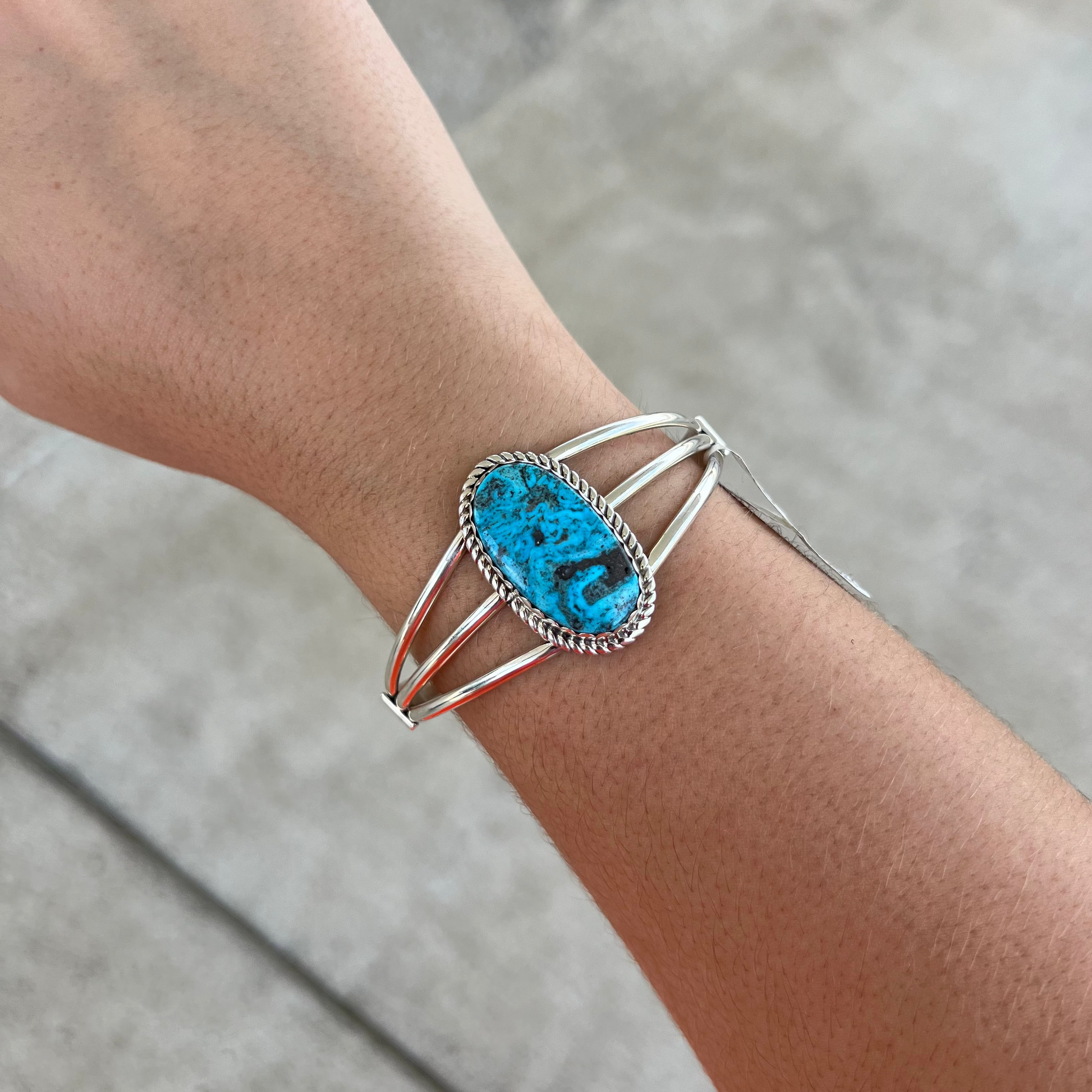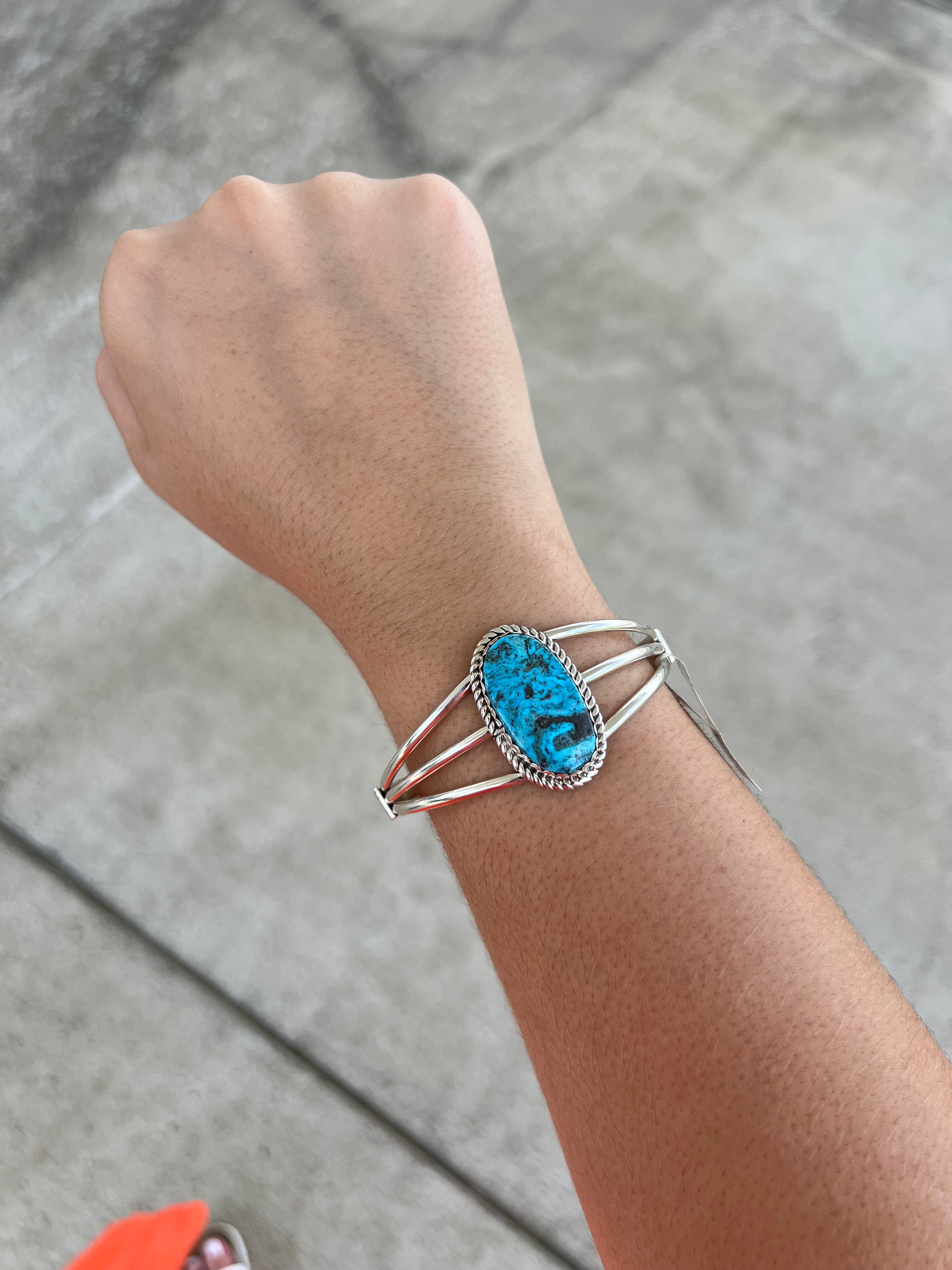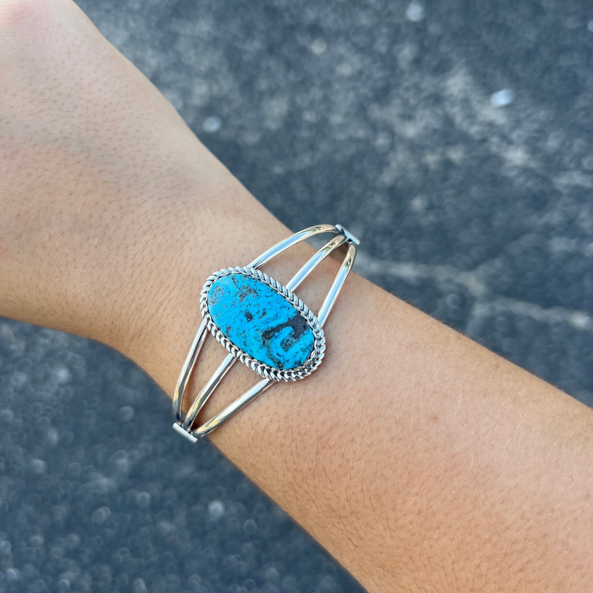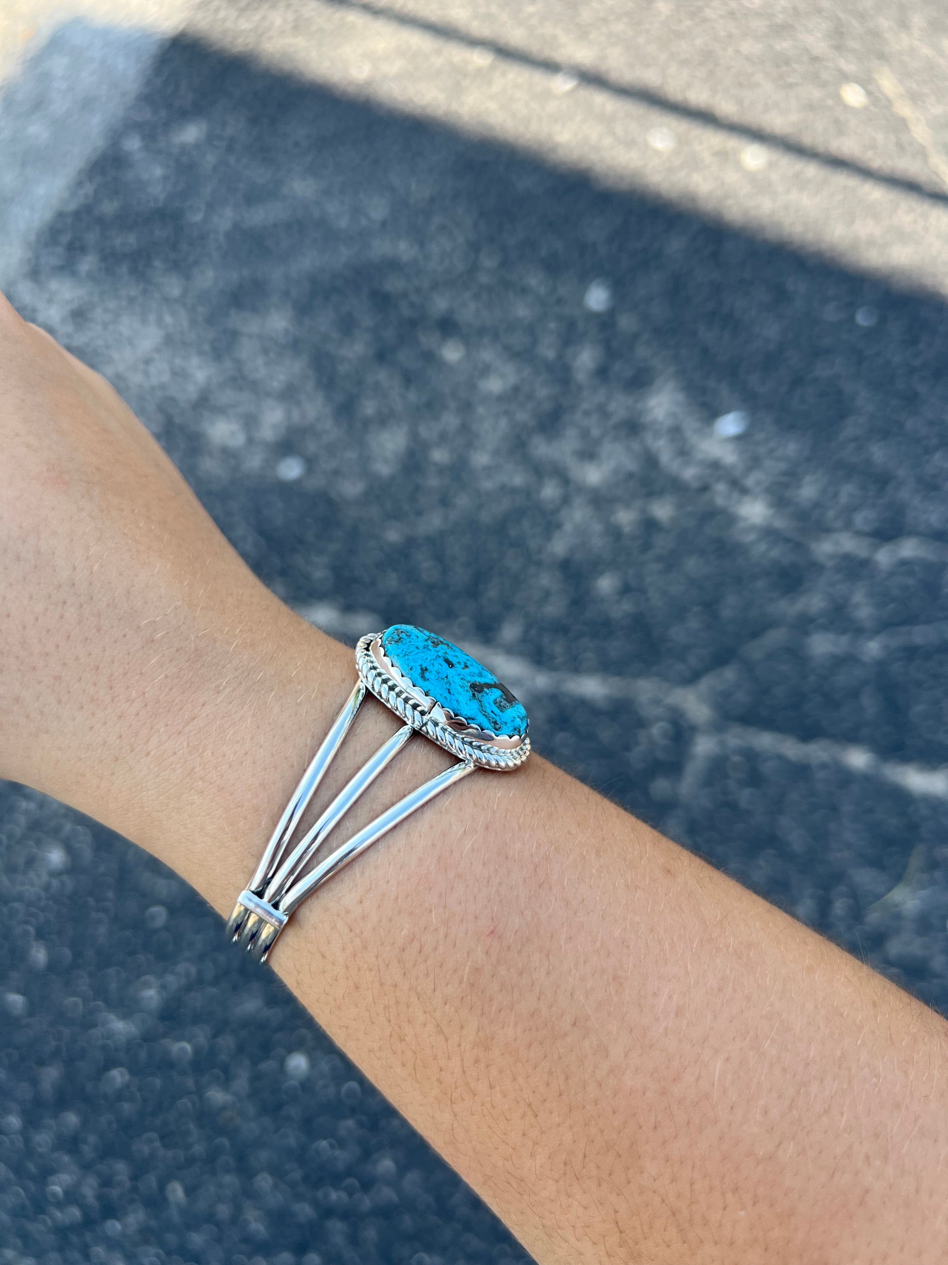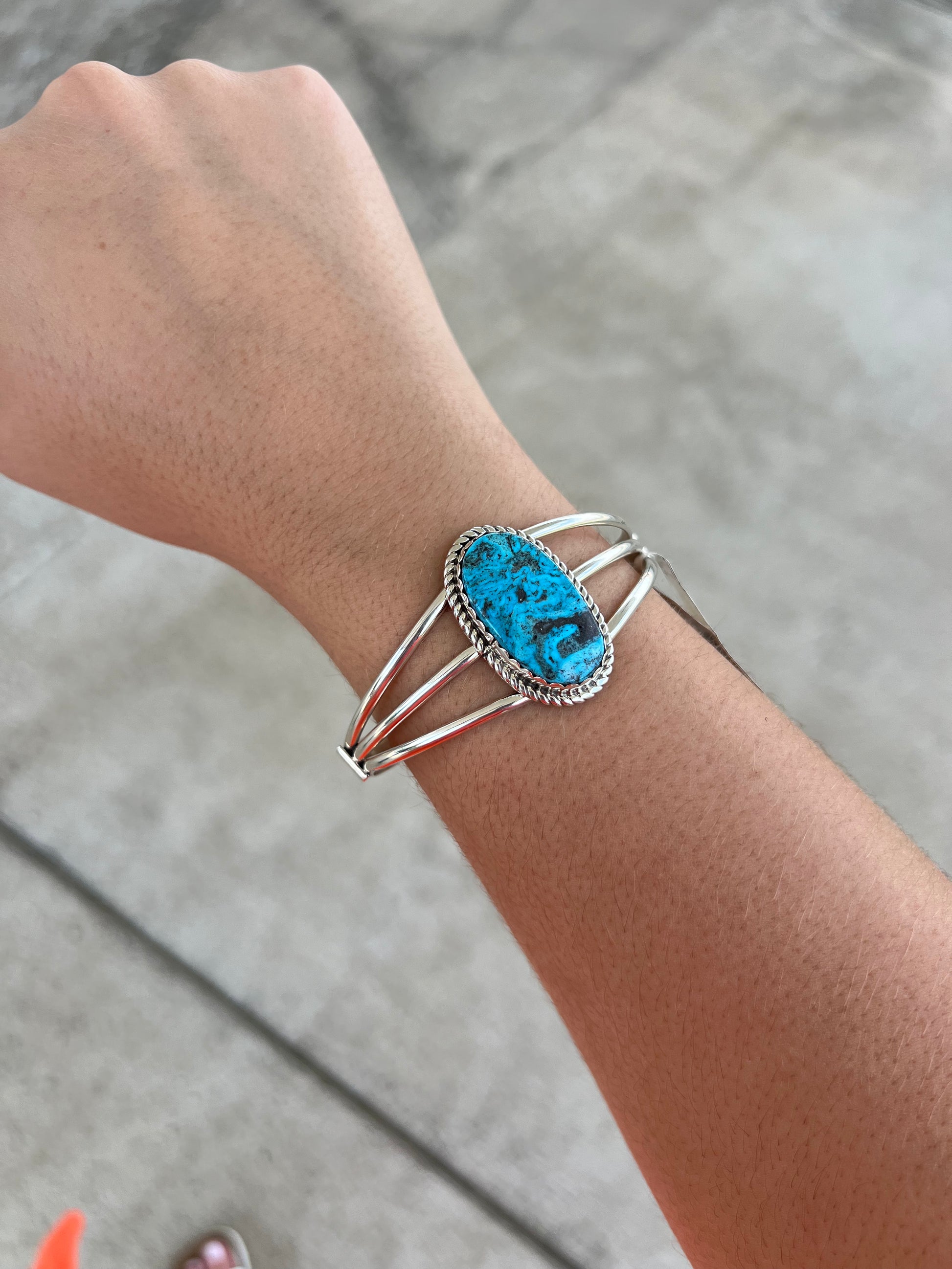 -Authentic Native American Made Turquoise and Sterling Silver Cuff Bracelet