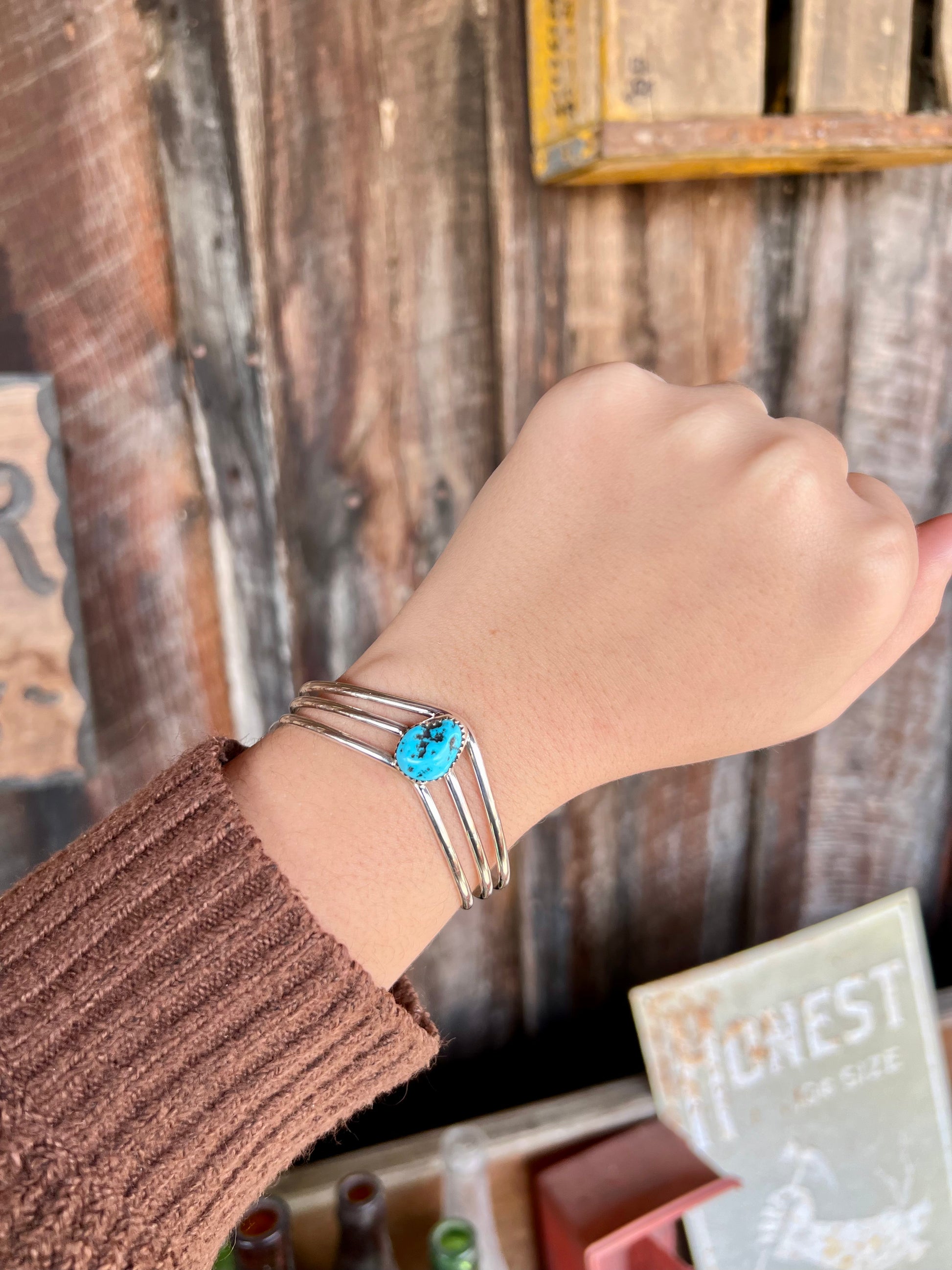 -Authentic Native American Handmade Turquoise and Sterling Silver Bracelet