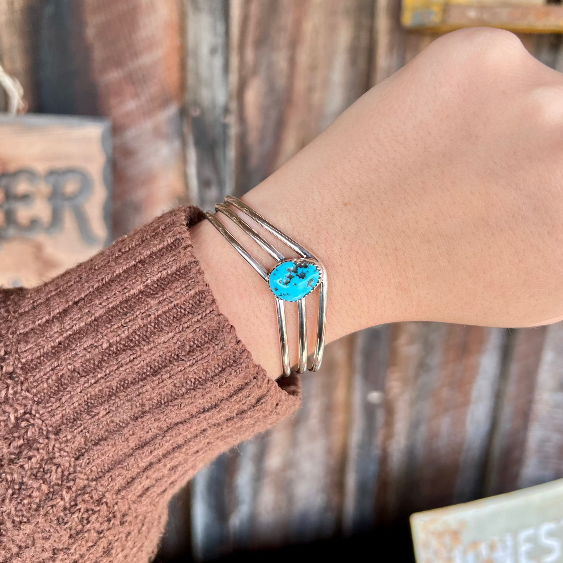 Genuine Kingman Turquoise Sweater Sterling Silver Bracelet