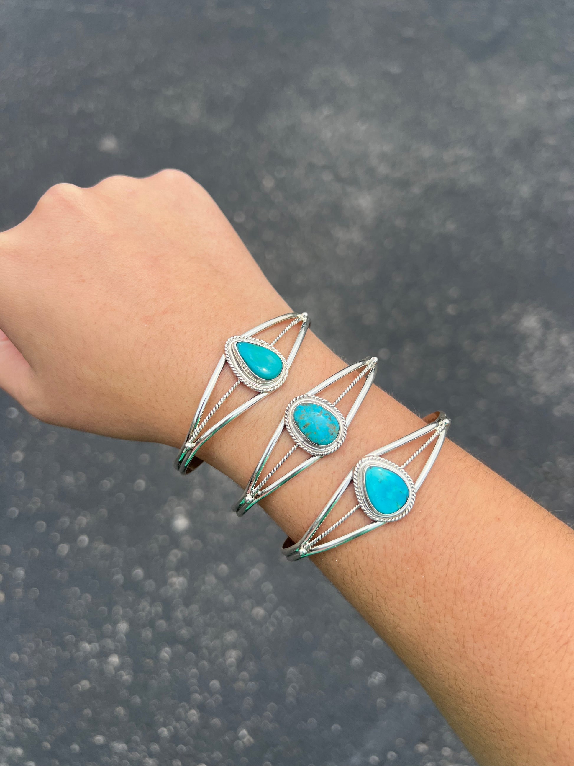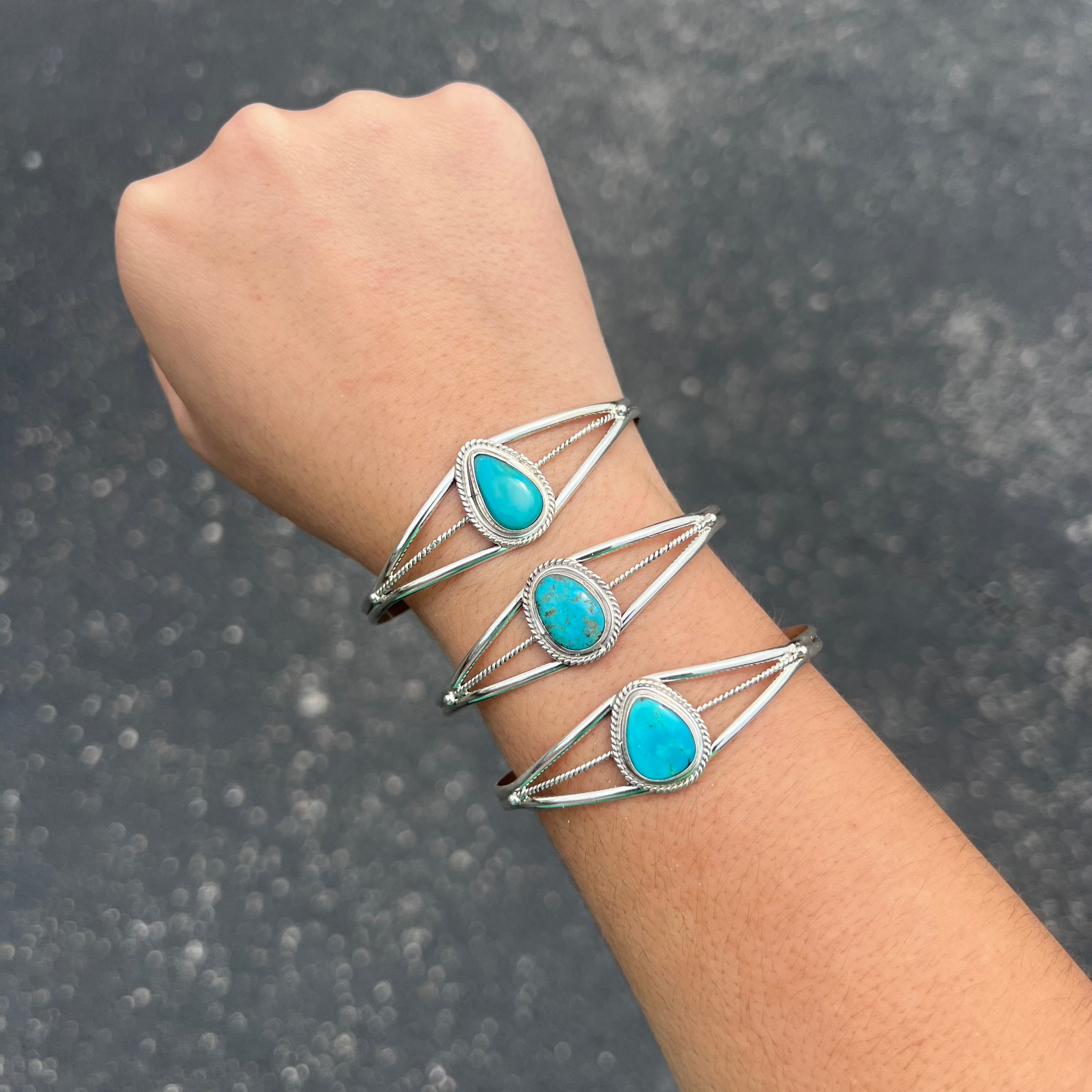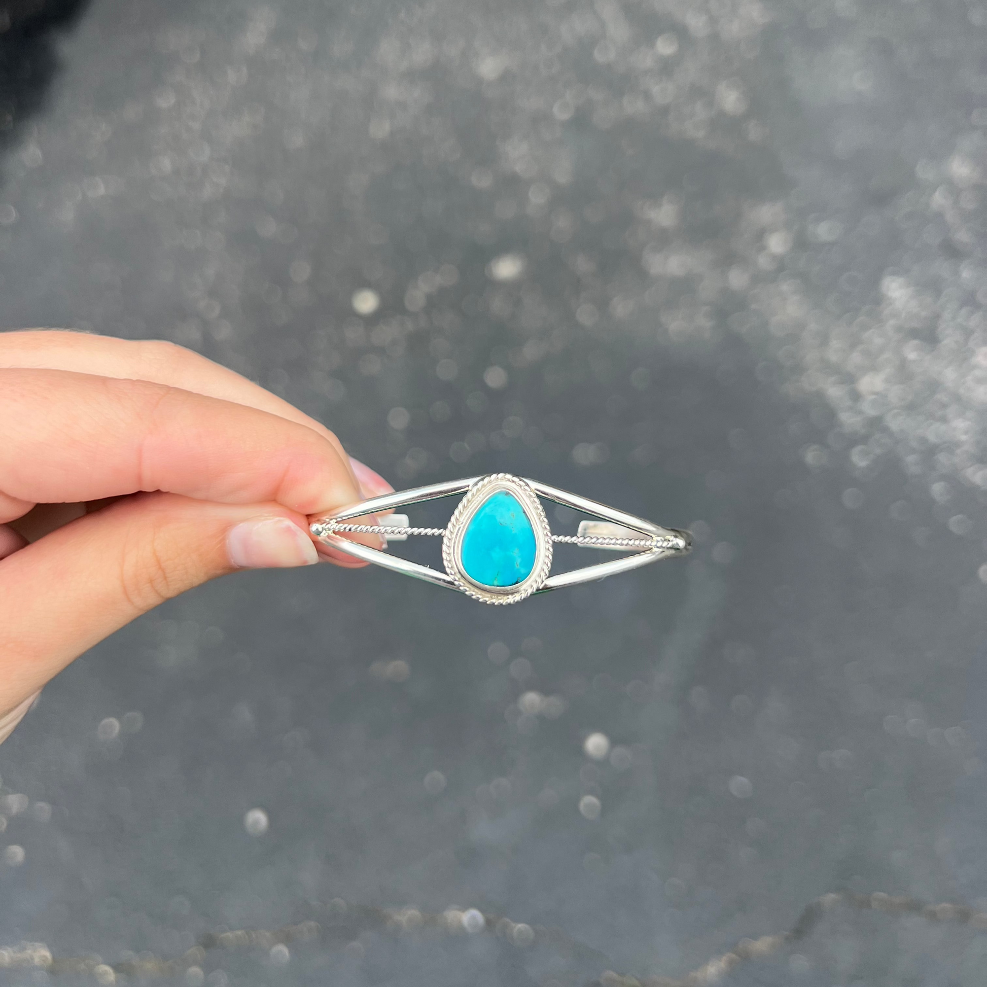 Genuine Kingman Turquoise Teardrop Sterling Silver Cuff Bracelet