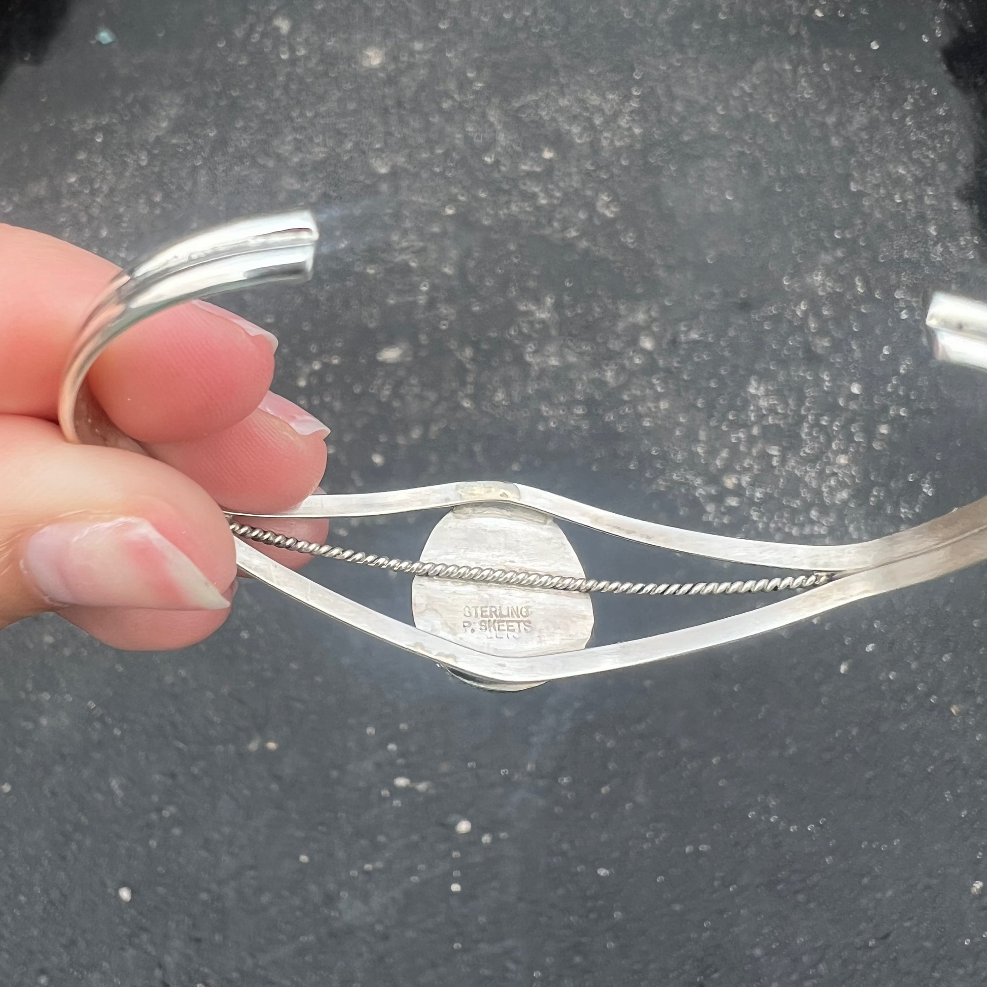 -Authentic Native American Handmade Genuine Kingman Turquoise Sterling Silver Cuff