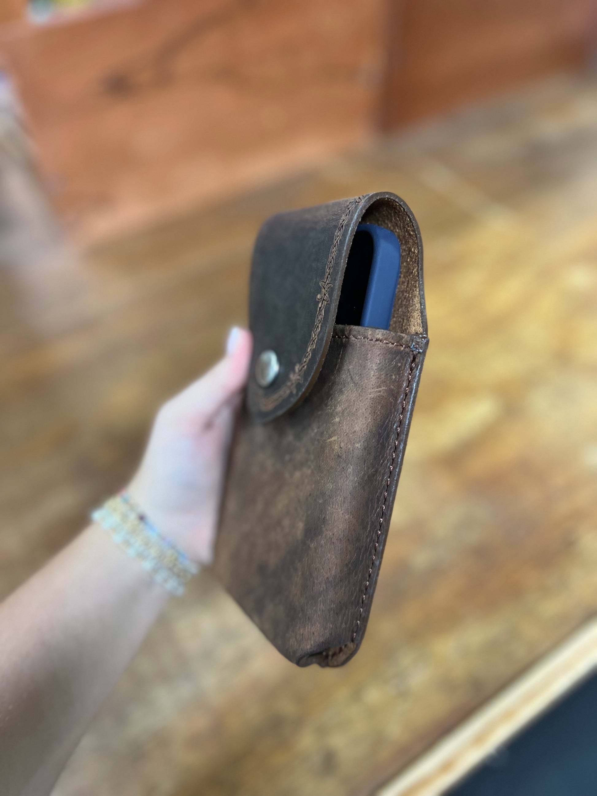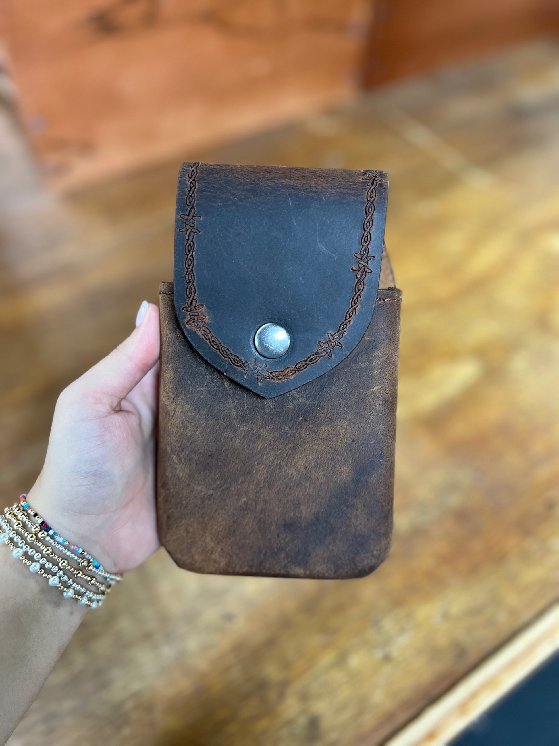 Genuine Leather Barbed Wire Phone Case - Local Amish Made
