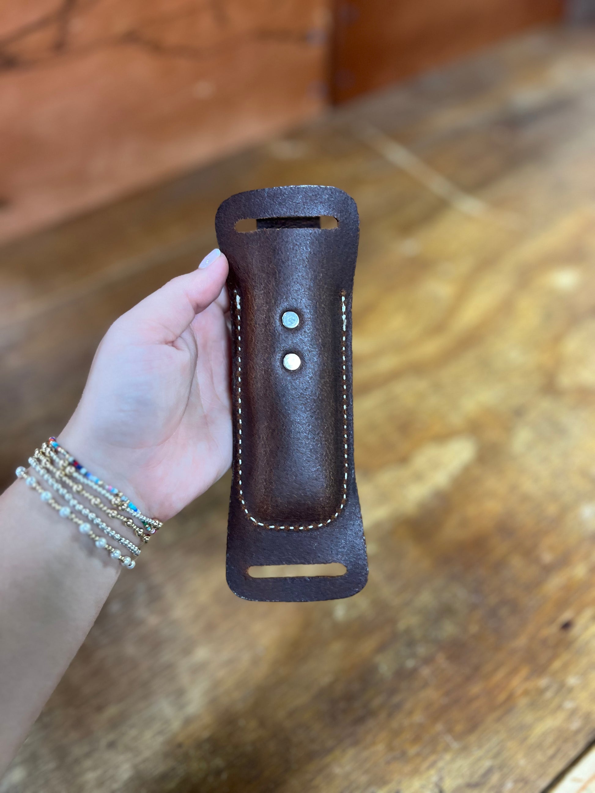 -Has two holes to slide your belt in!