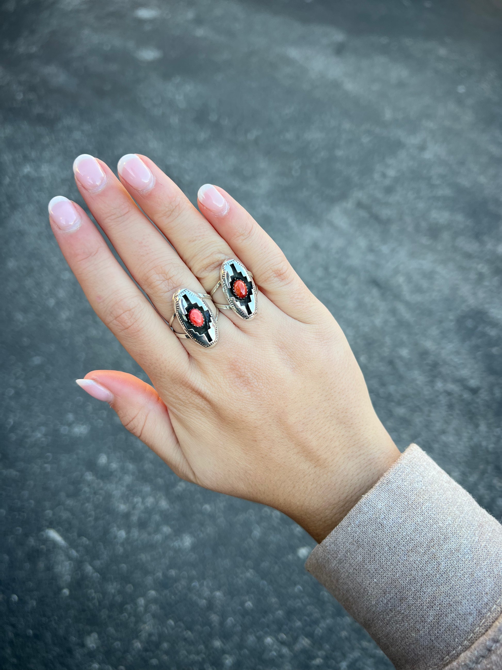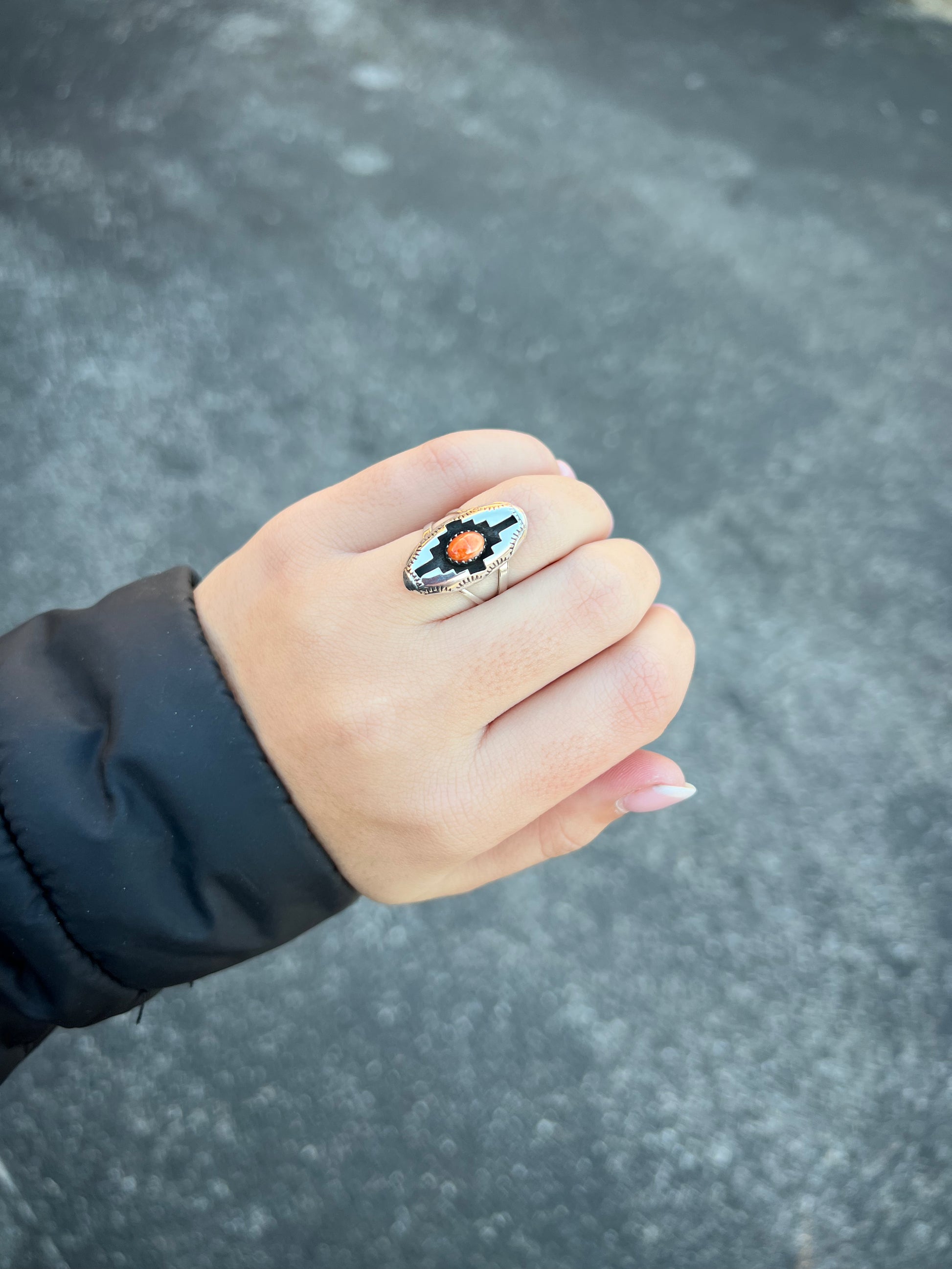 -Authentic Native American handmade Genuine Spiny Oyster Sterling Silver Ring