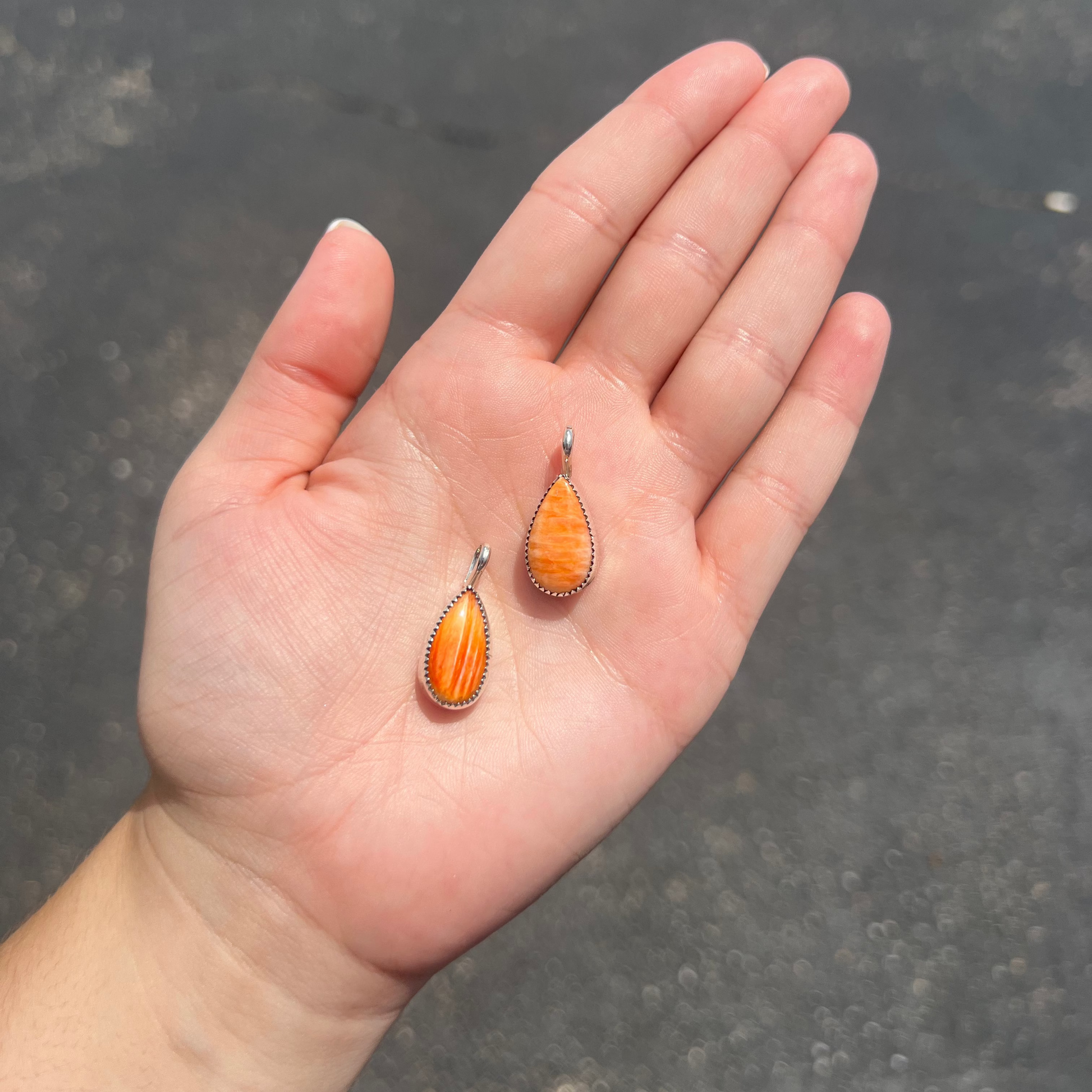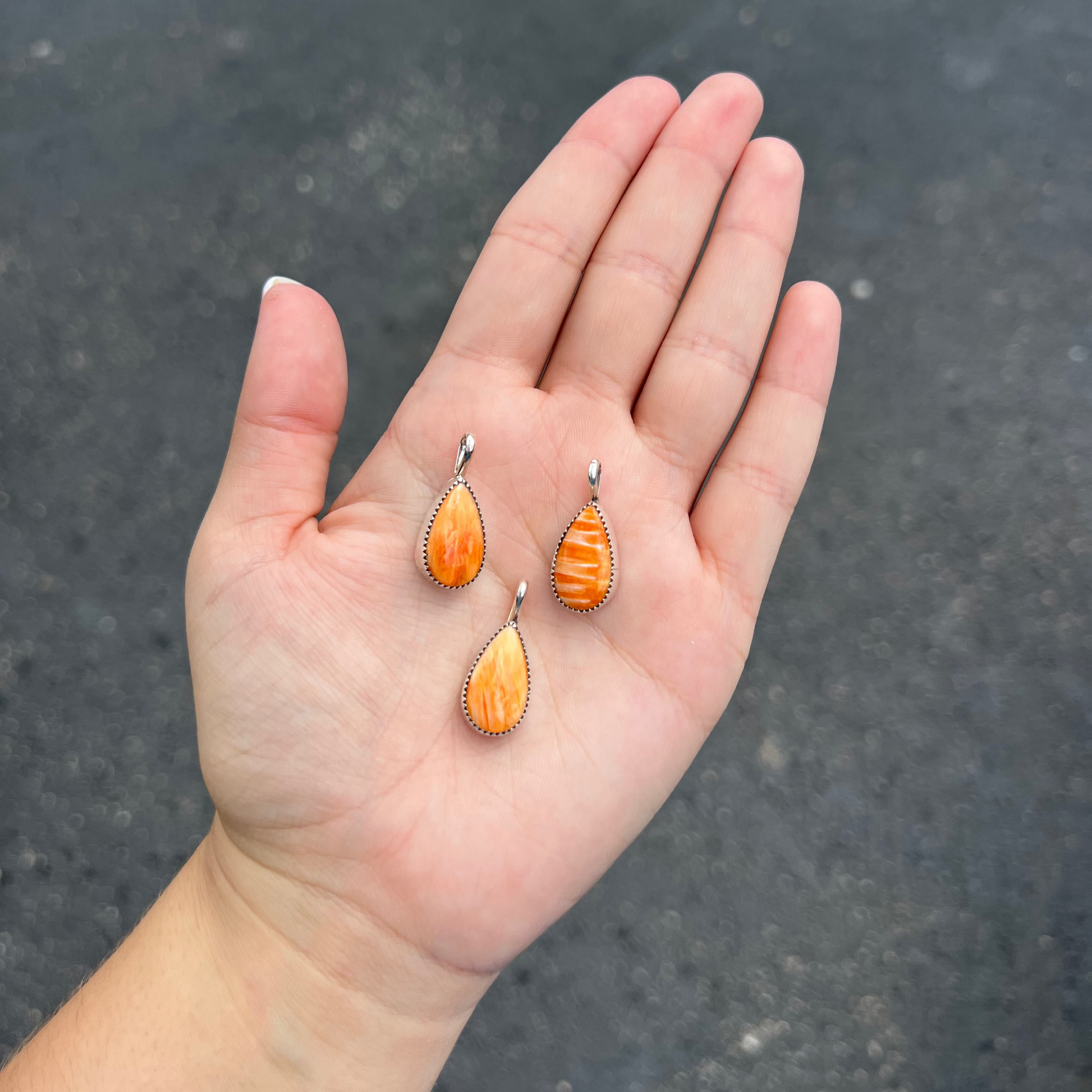 Genuine Orange Spiny Oyster Teardrop Sterling Silver Pendant