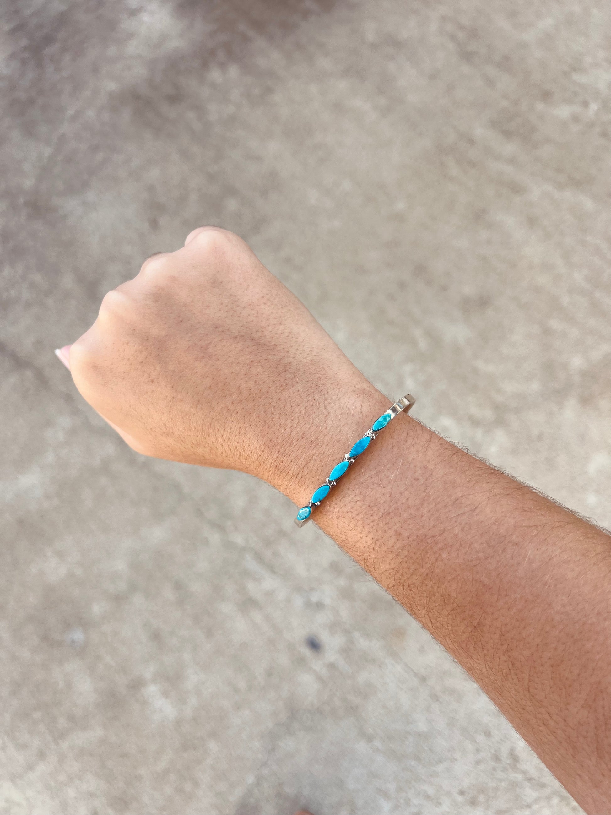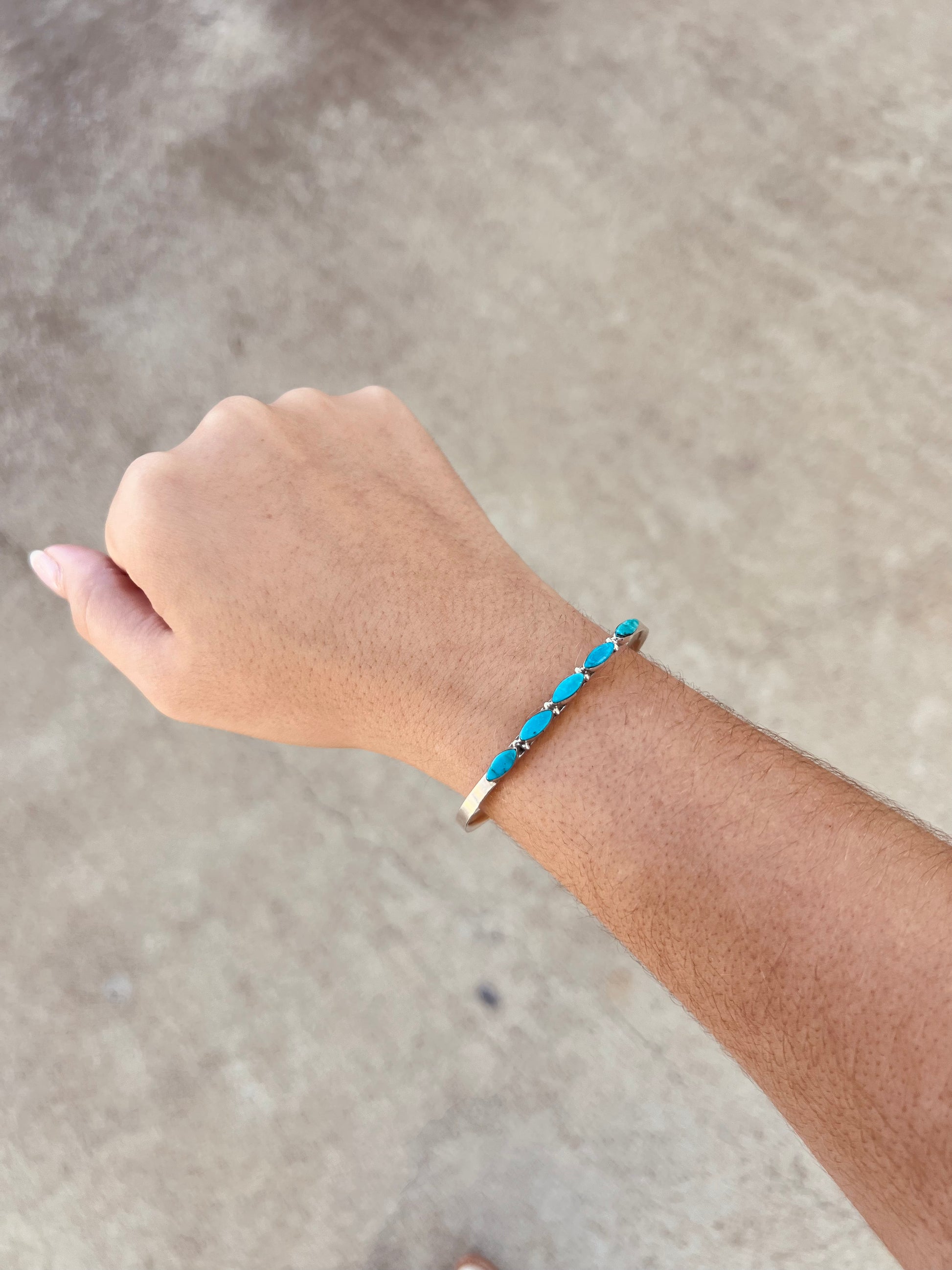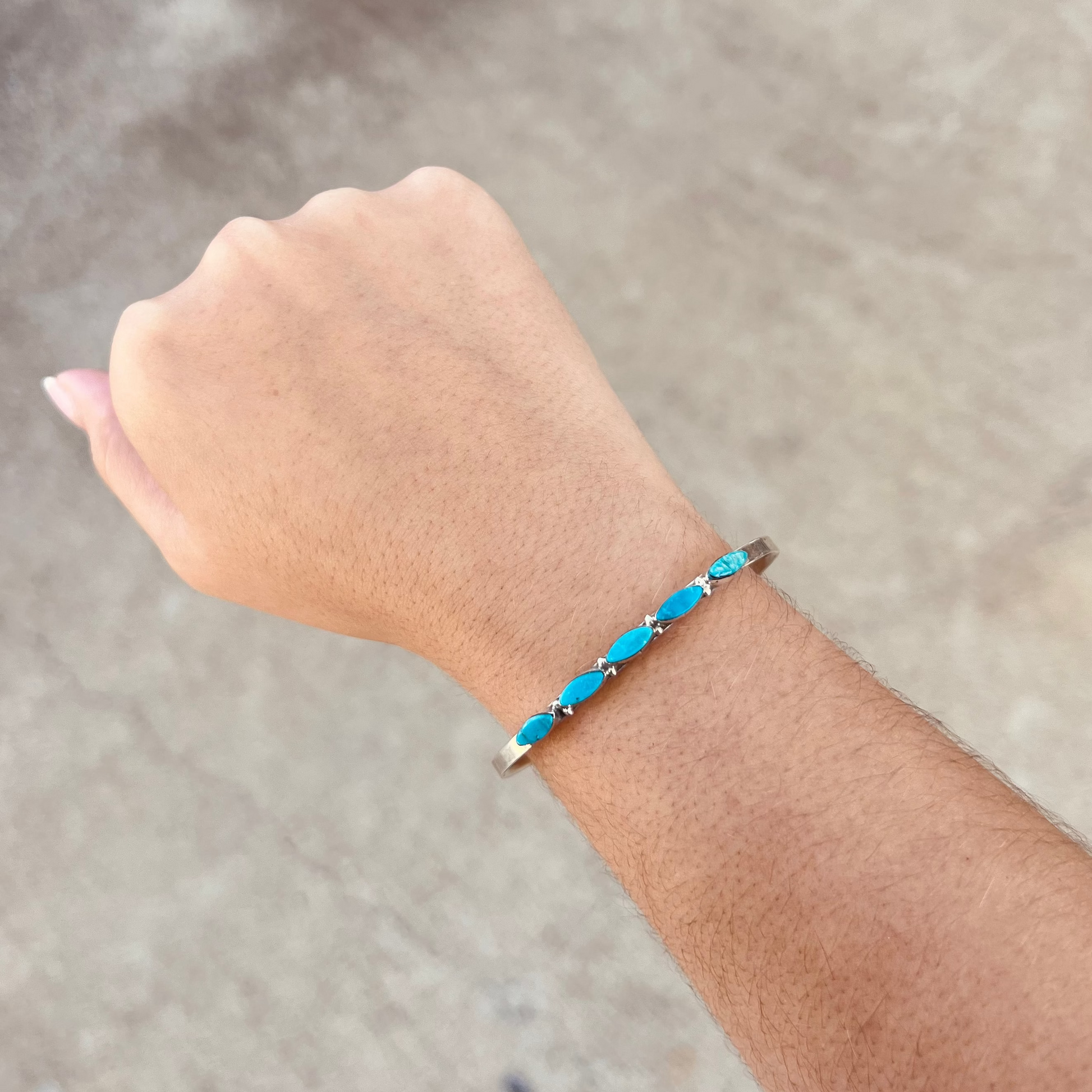 Genuine Oval Kingman Turquoise 5 Stone Inlay Sterling Silver Cuff Bracelet