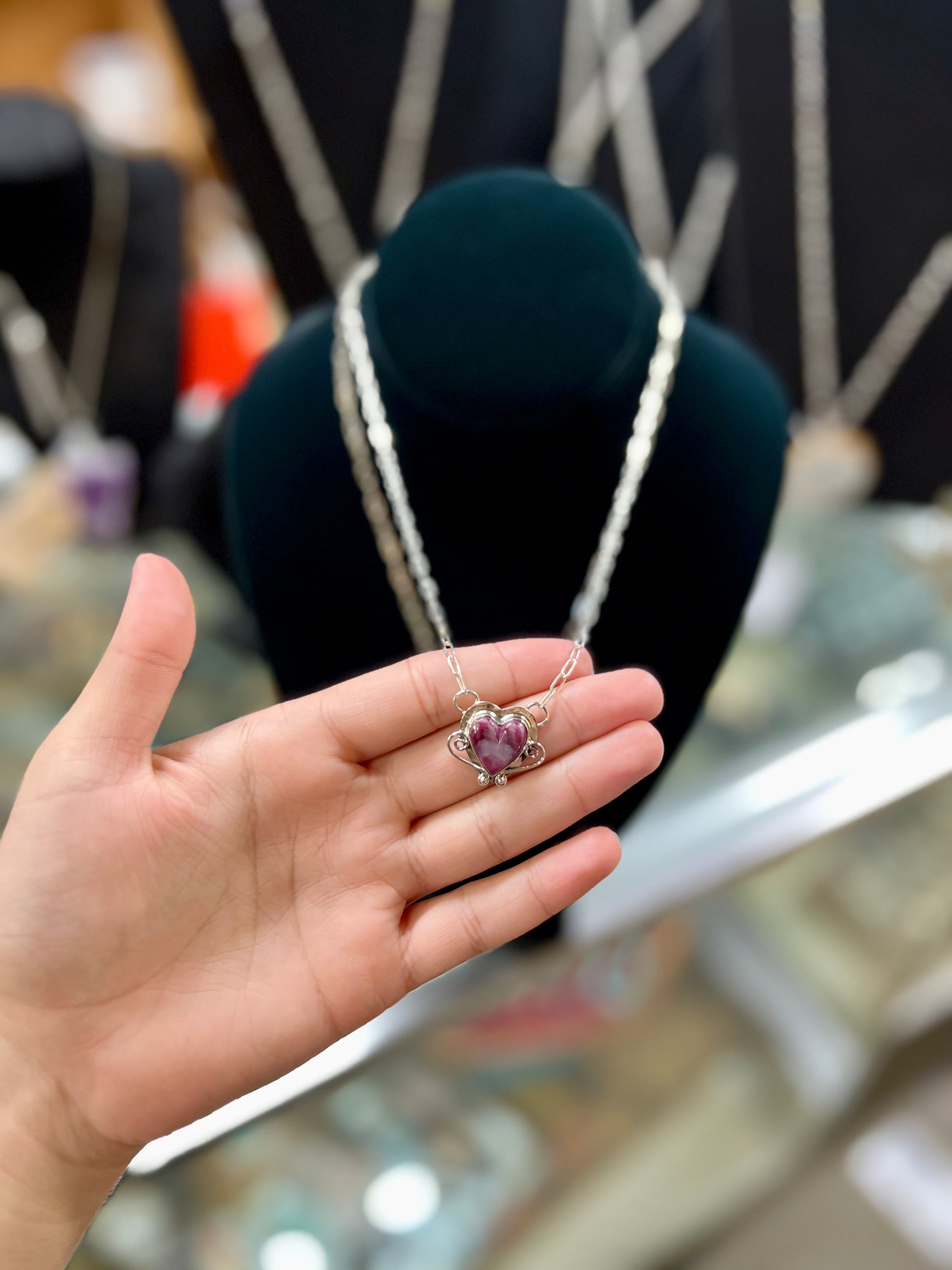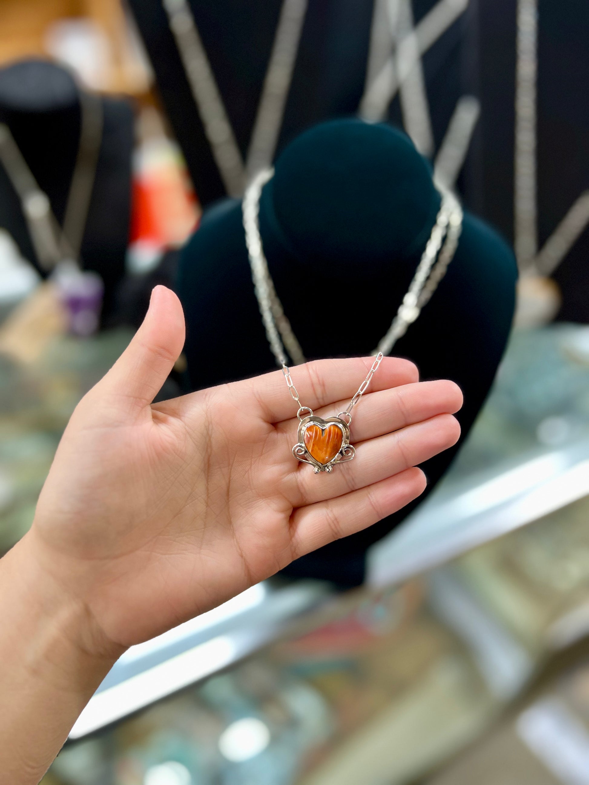 Genuine Spiny Oyster Sterling Silver Heart Necklace