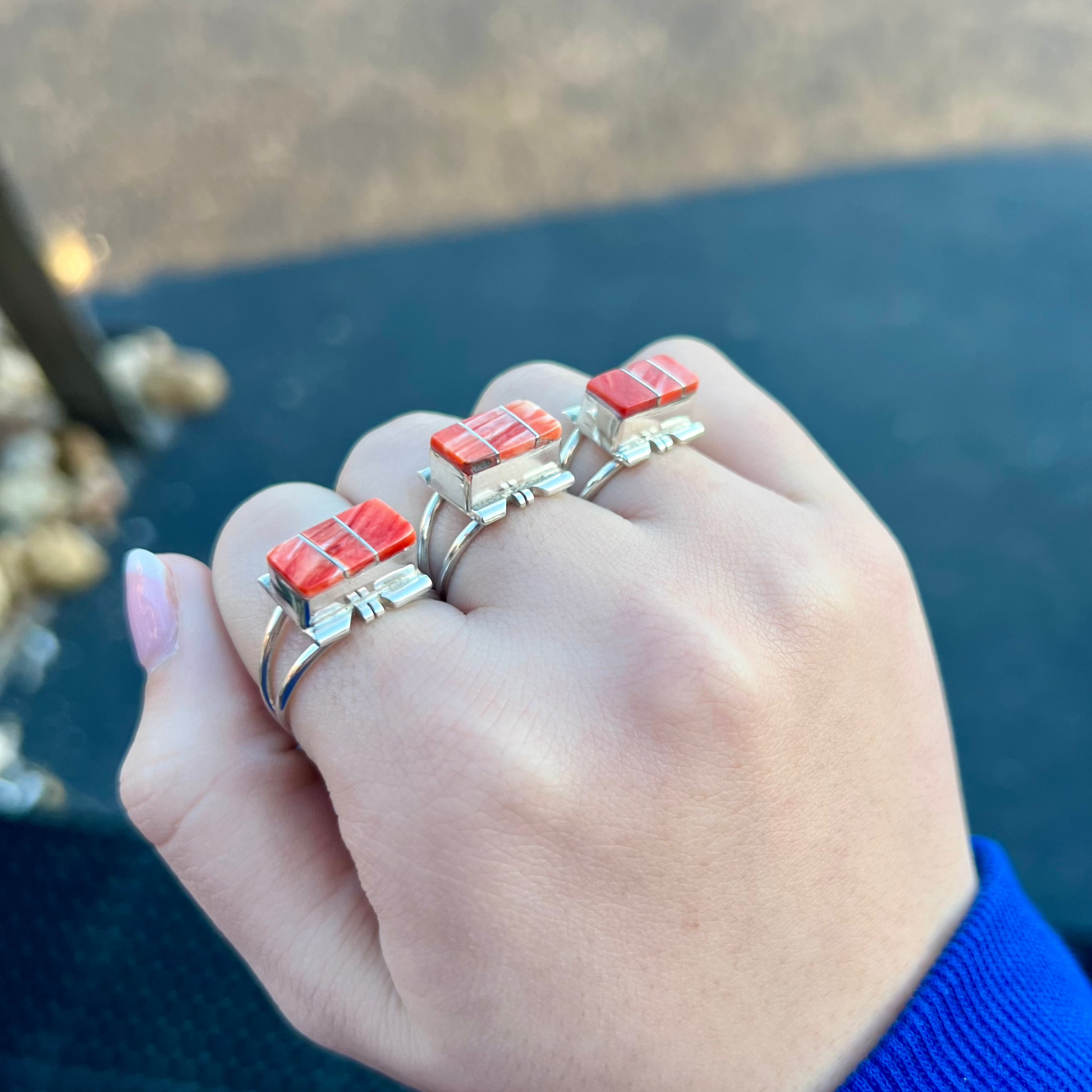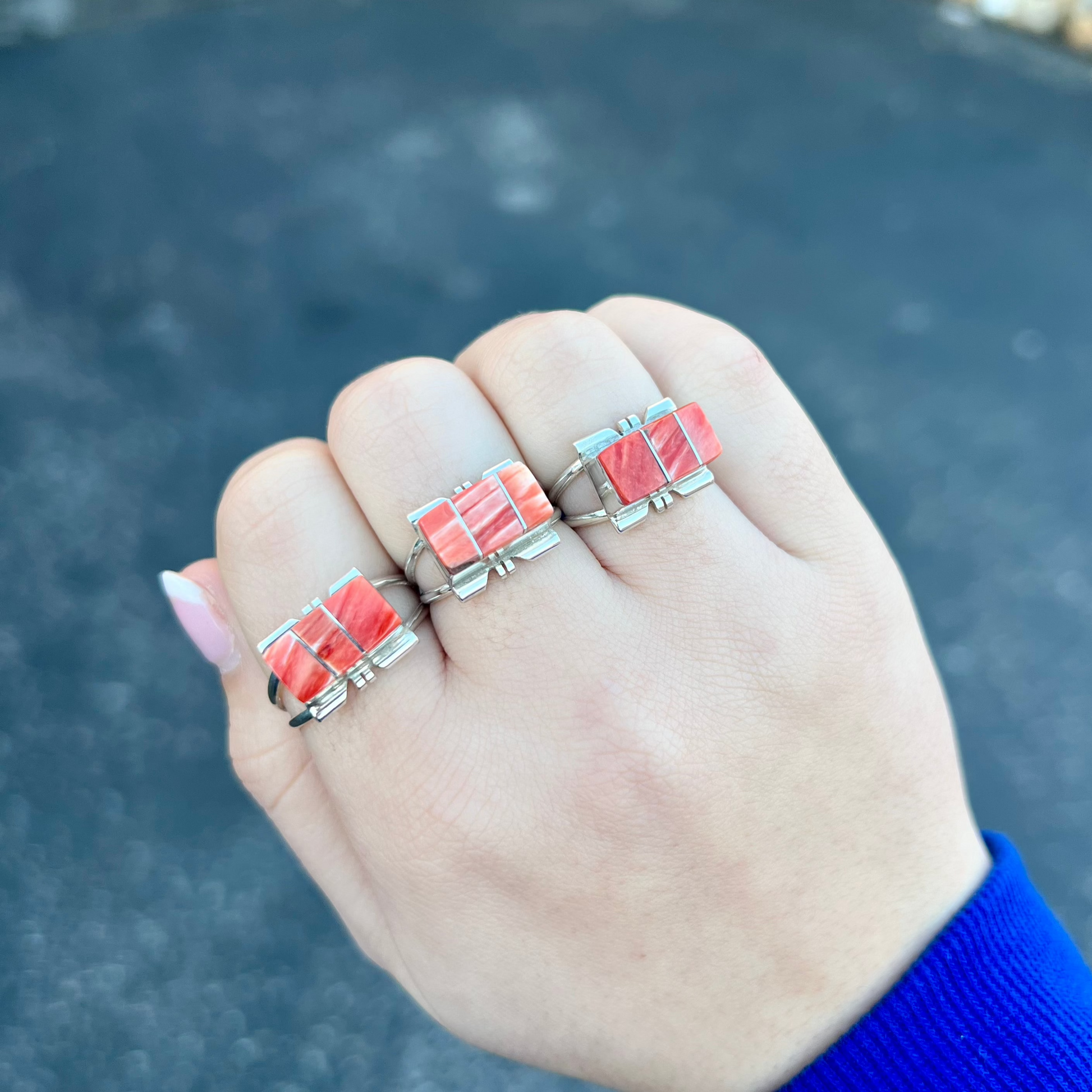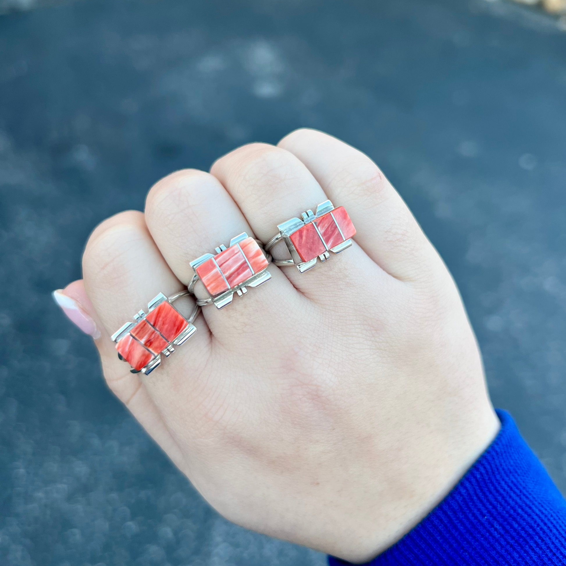 -Authentic Native American Handmade Genuine Spiny Oyster Sterling Silver ring