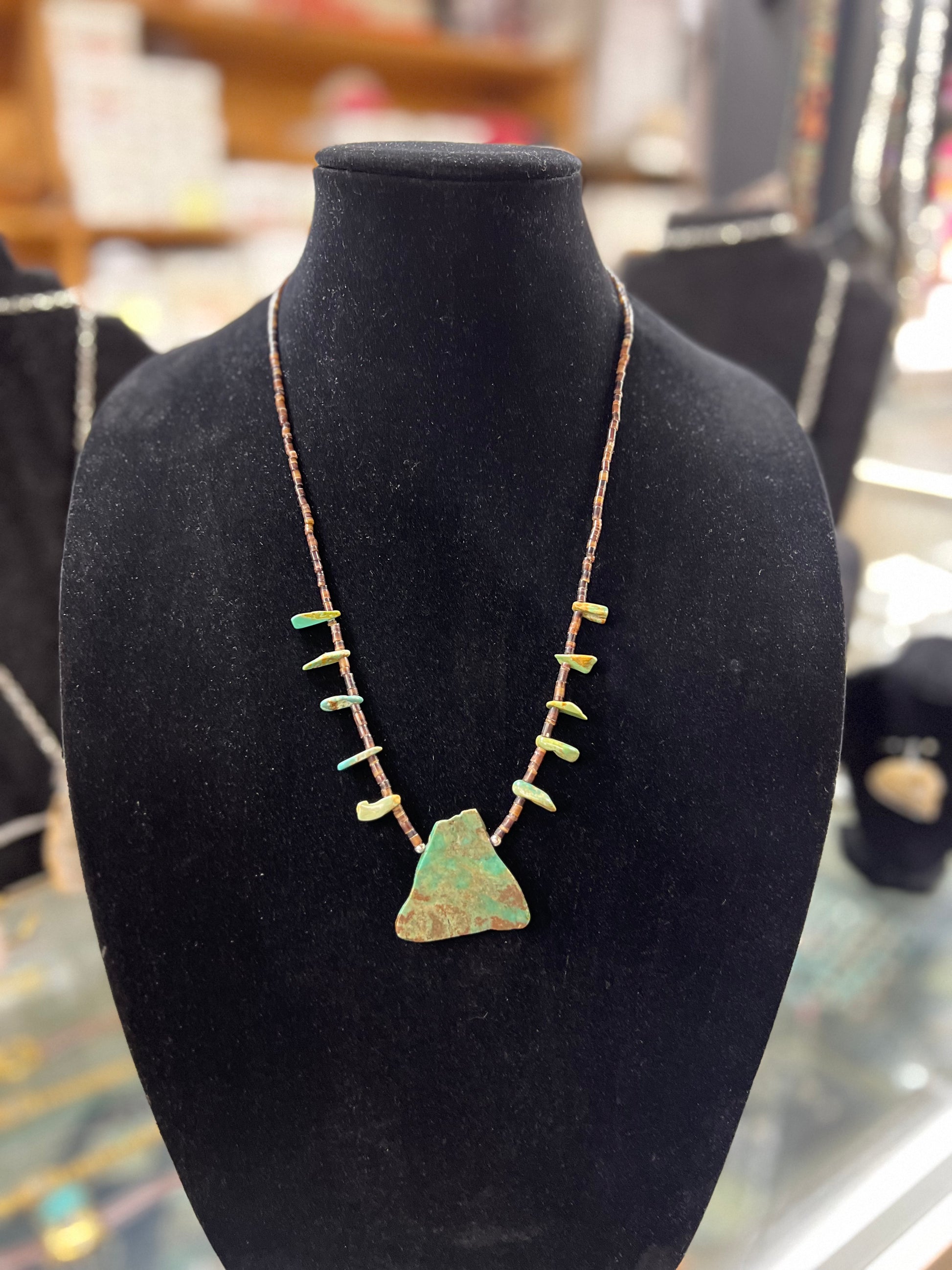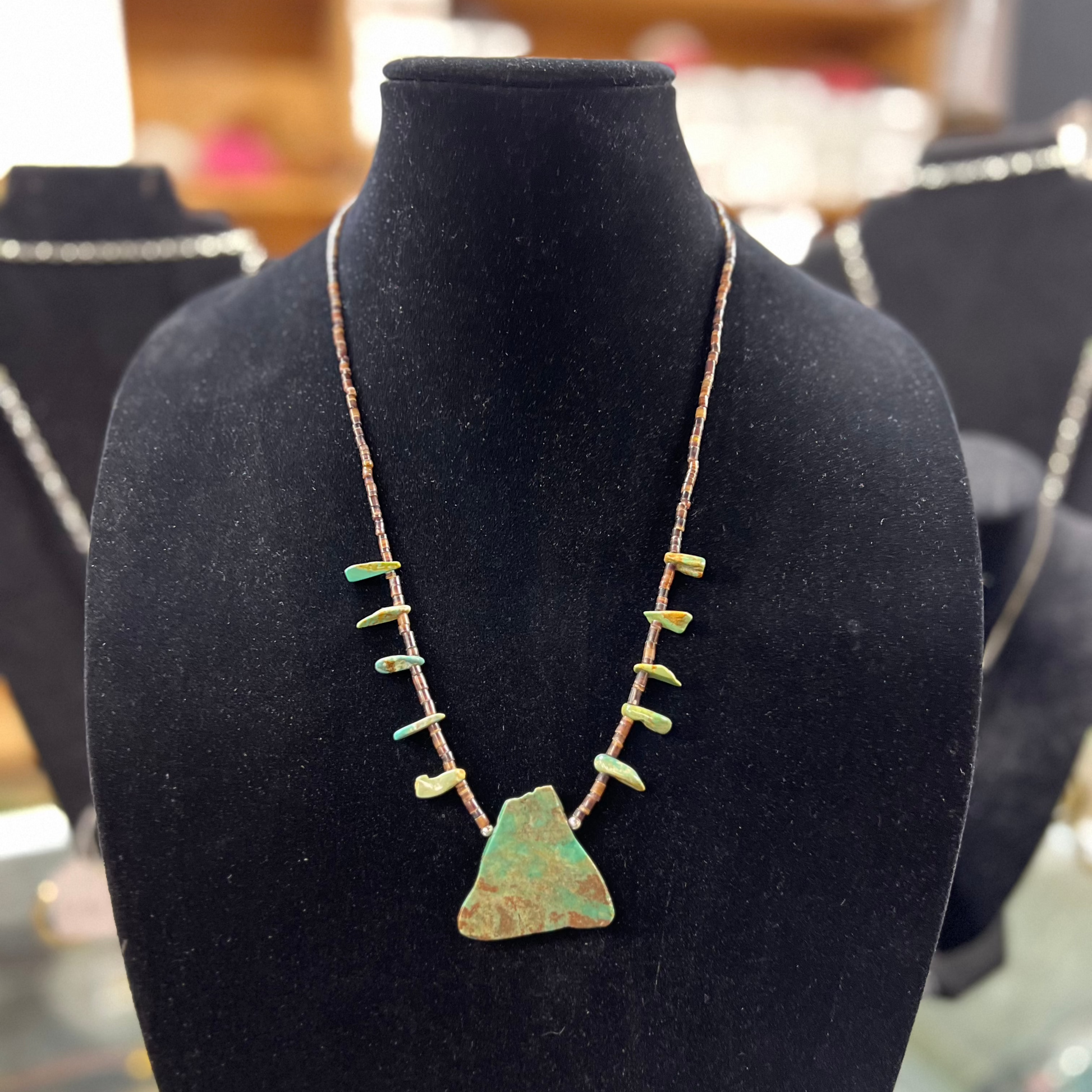 Genuine Turquoise 11 Nuggets Brown Heishi Necklace