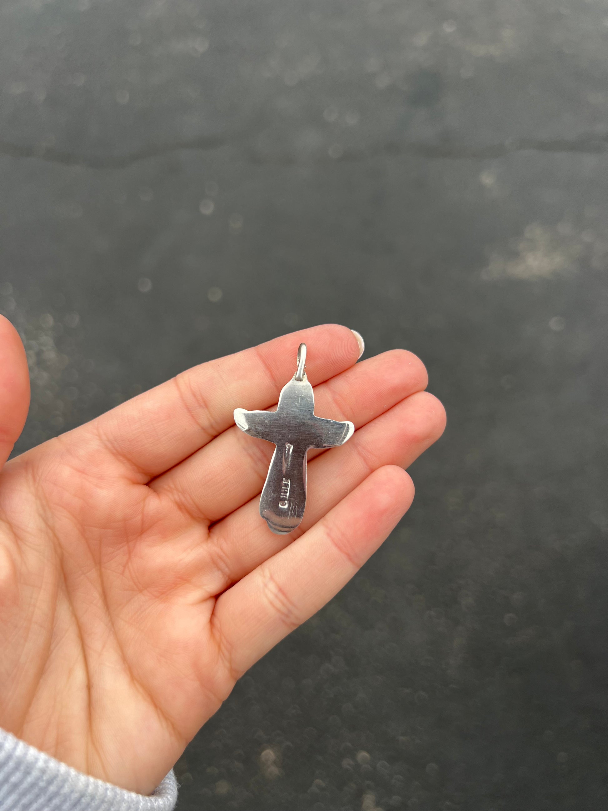 Genuine Turquoise 5 Stone Sterling Silver Cross Pendant