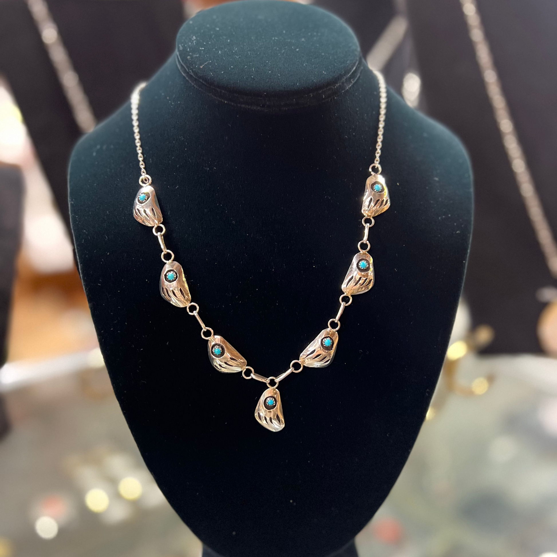 Genuine Turquoise and Sterling Silver Bear Paw Shadowbox Necklace