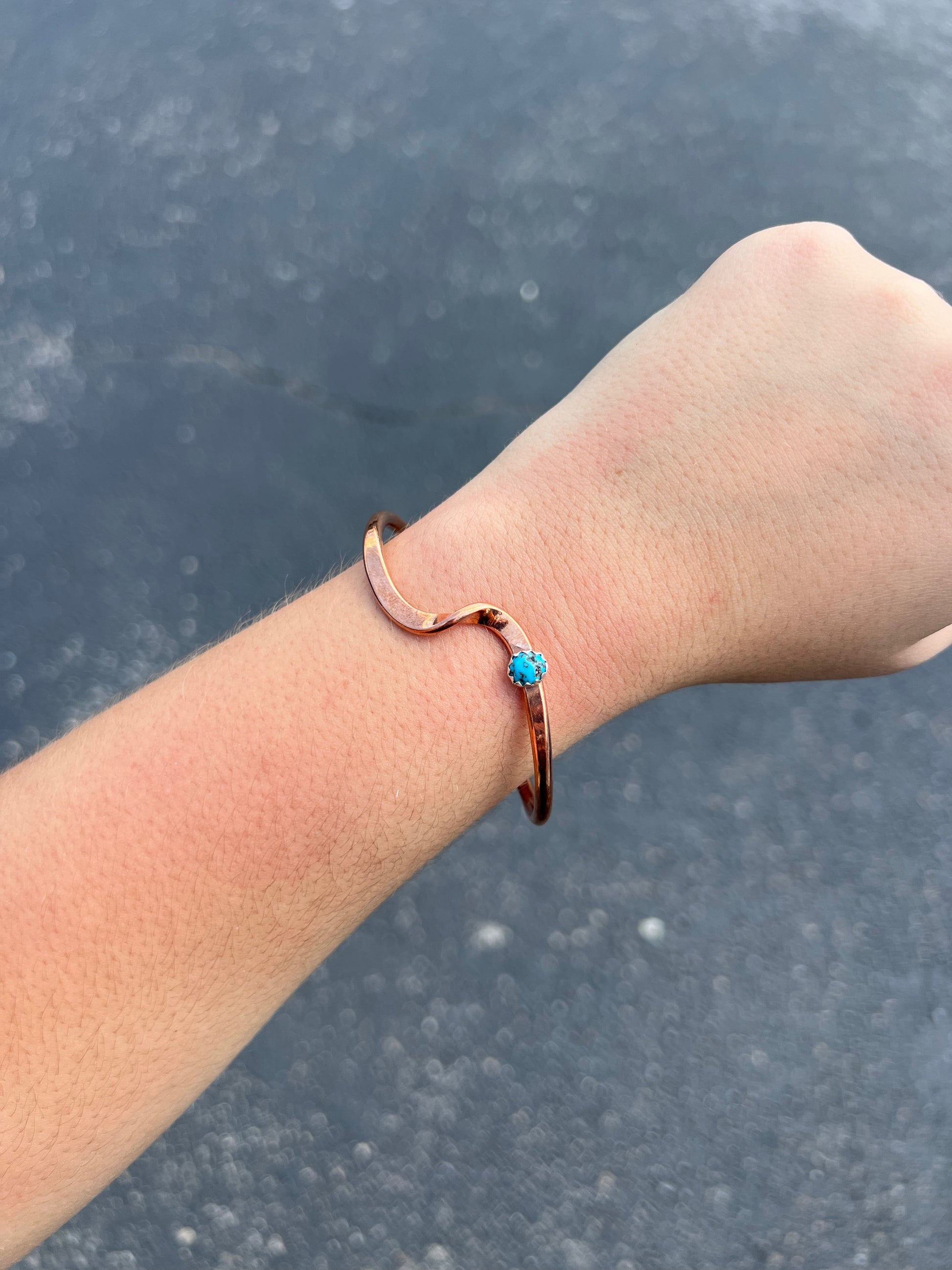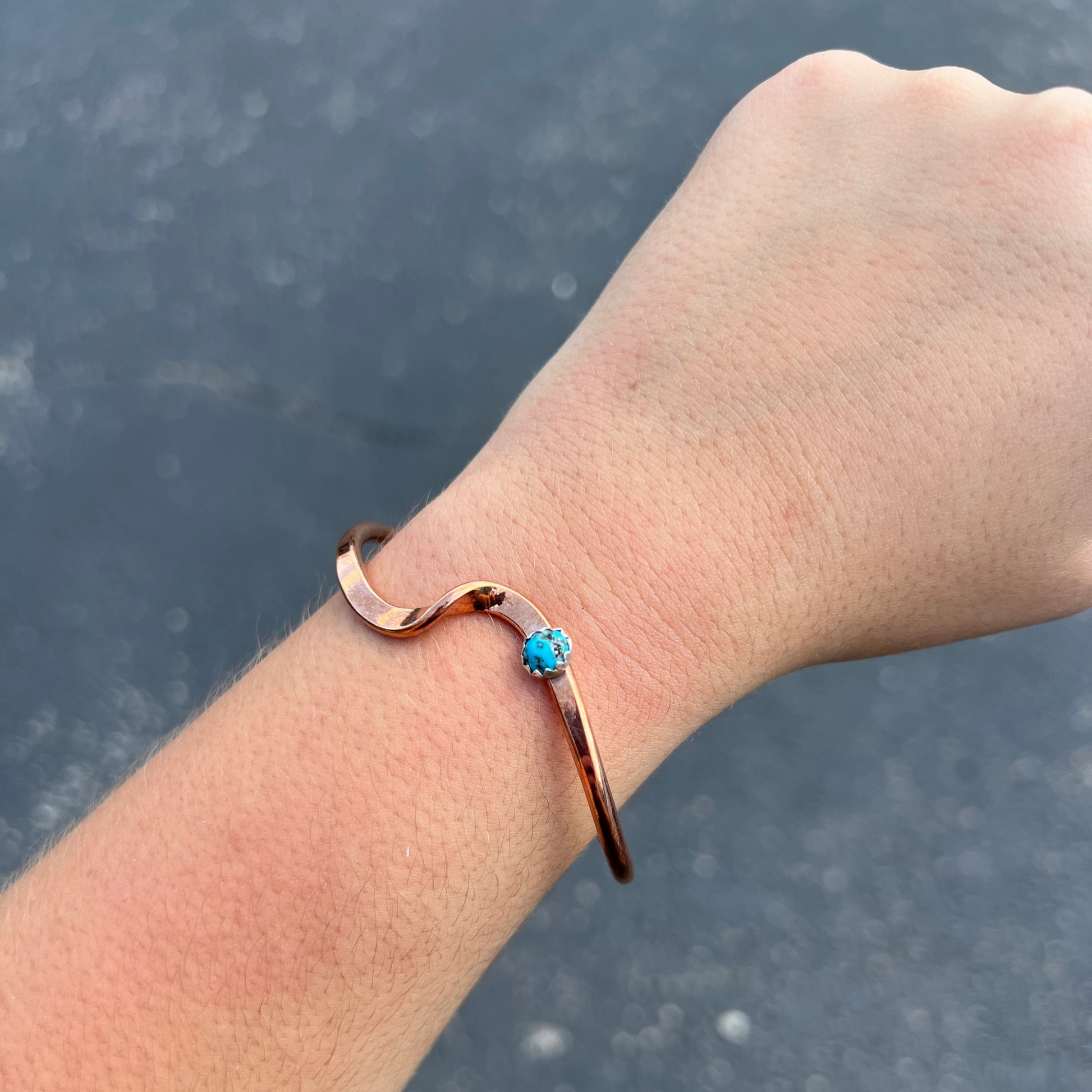 Genuine Turquoise Copper Wave Cuff Bracelet
