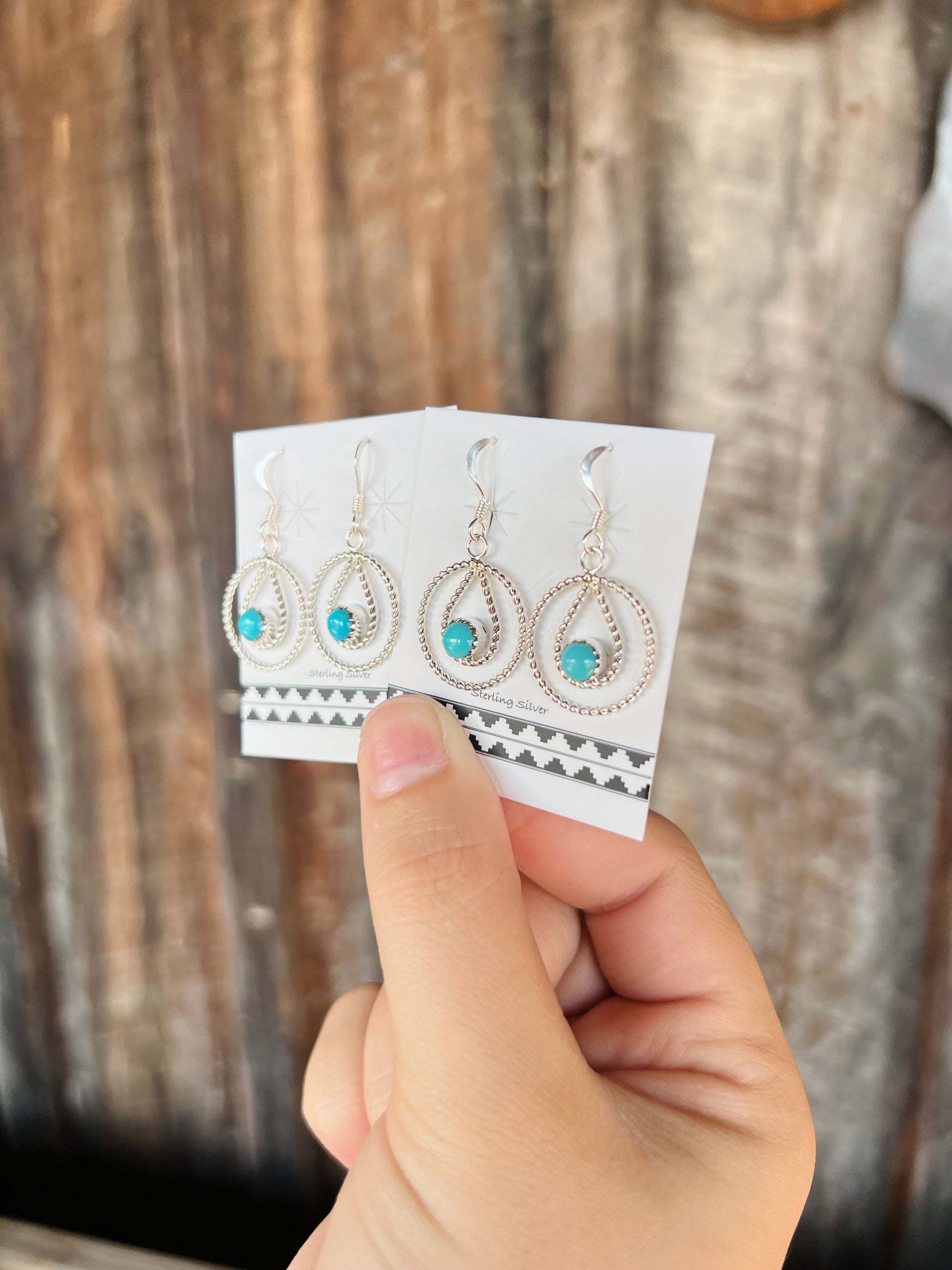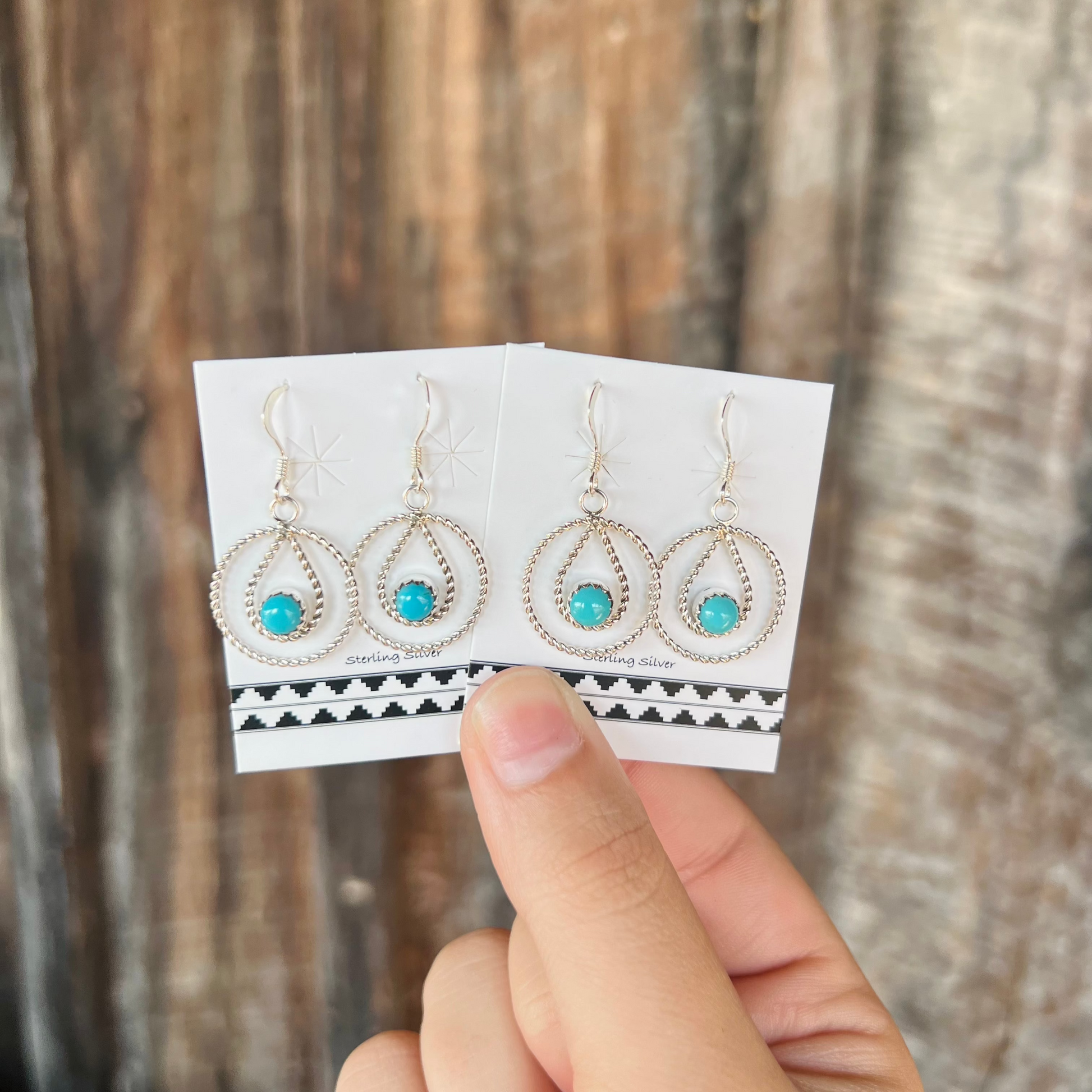 -Authentic Native American handmade Turquoise and Sterling Silver Earrings