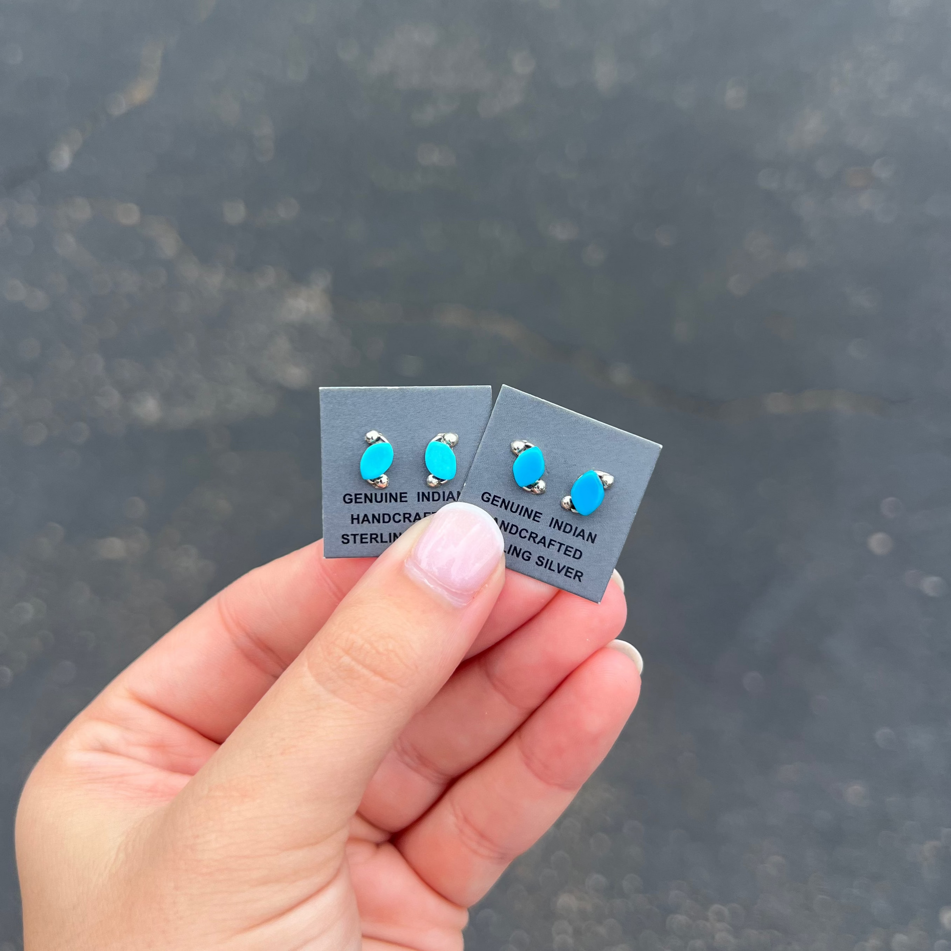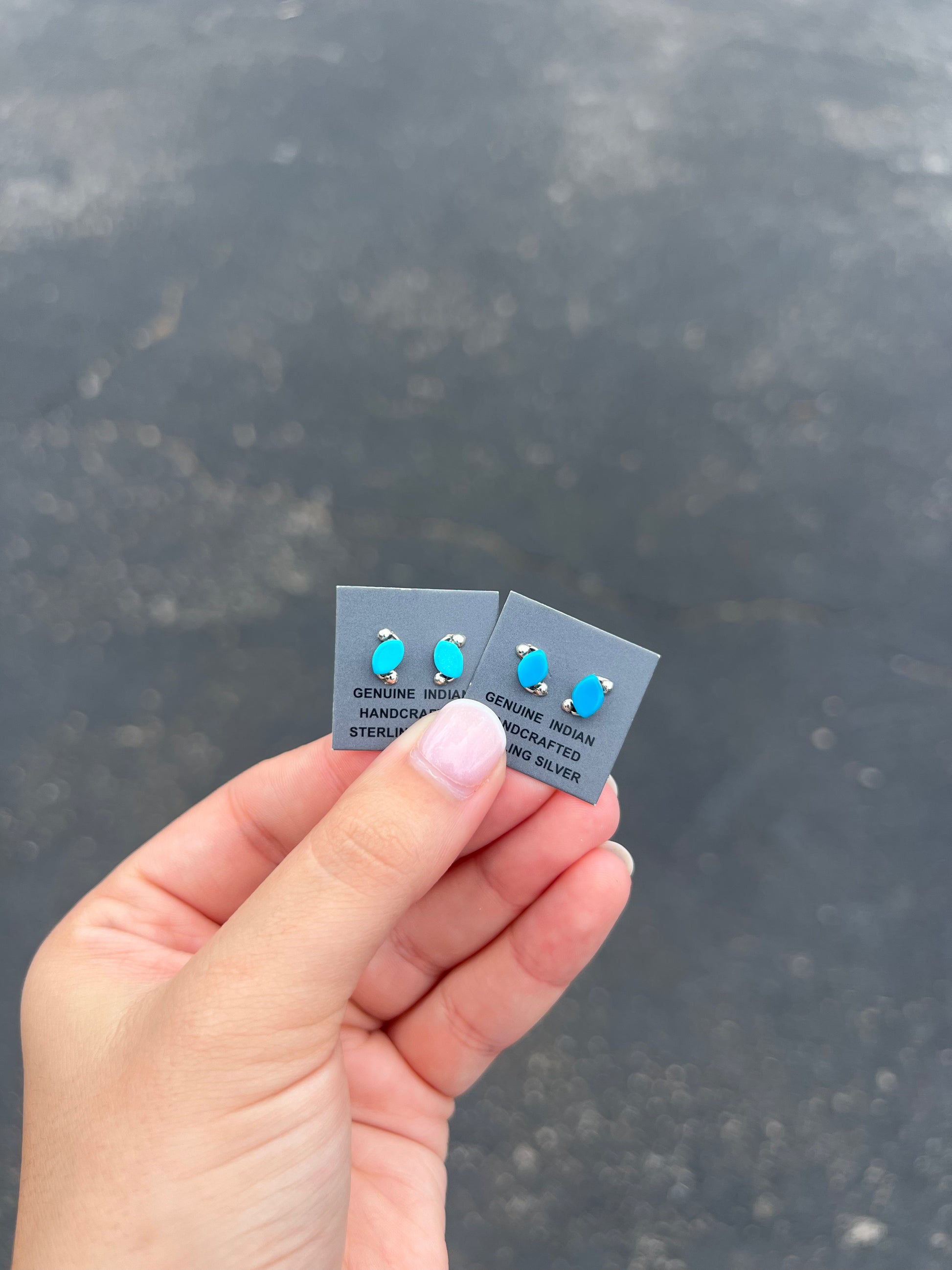 -Authentic Native American Handmade Genuine Turquoise and Sterling Silver Earrings