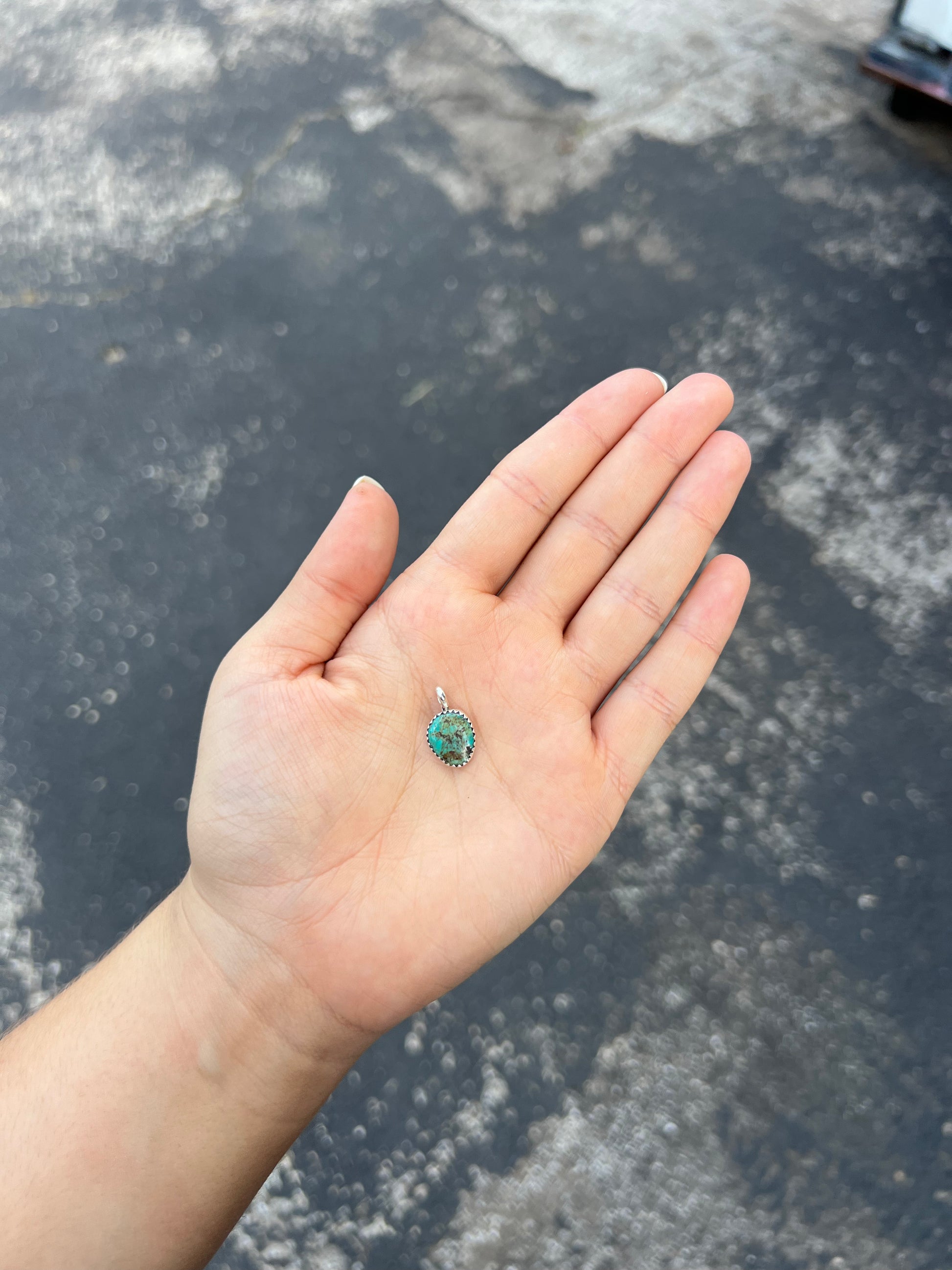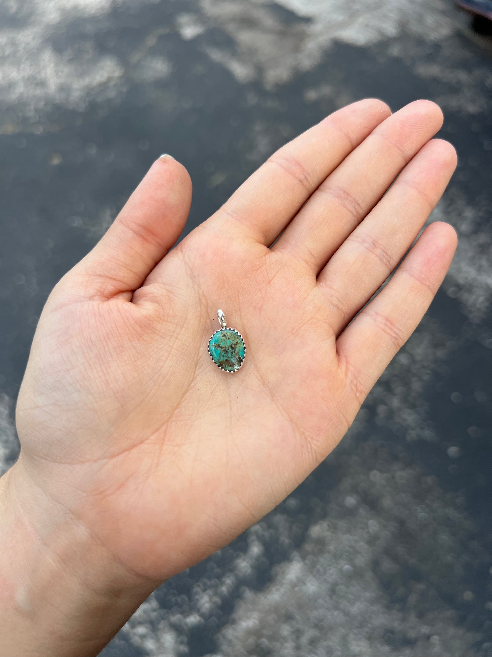 -Authentic Native American Handmade Turquoise and Sterling Silver Pendant