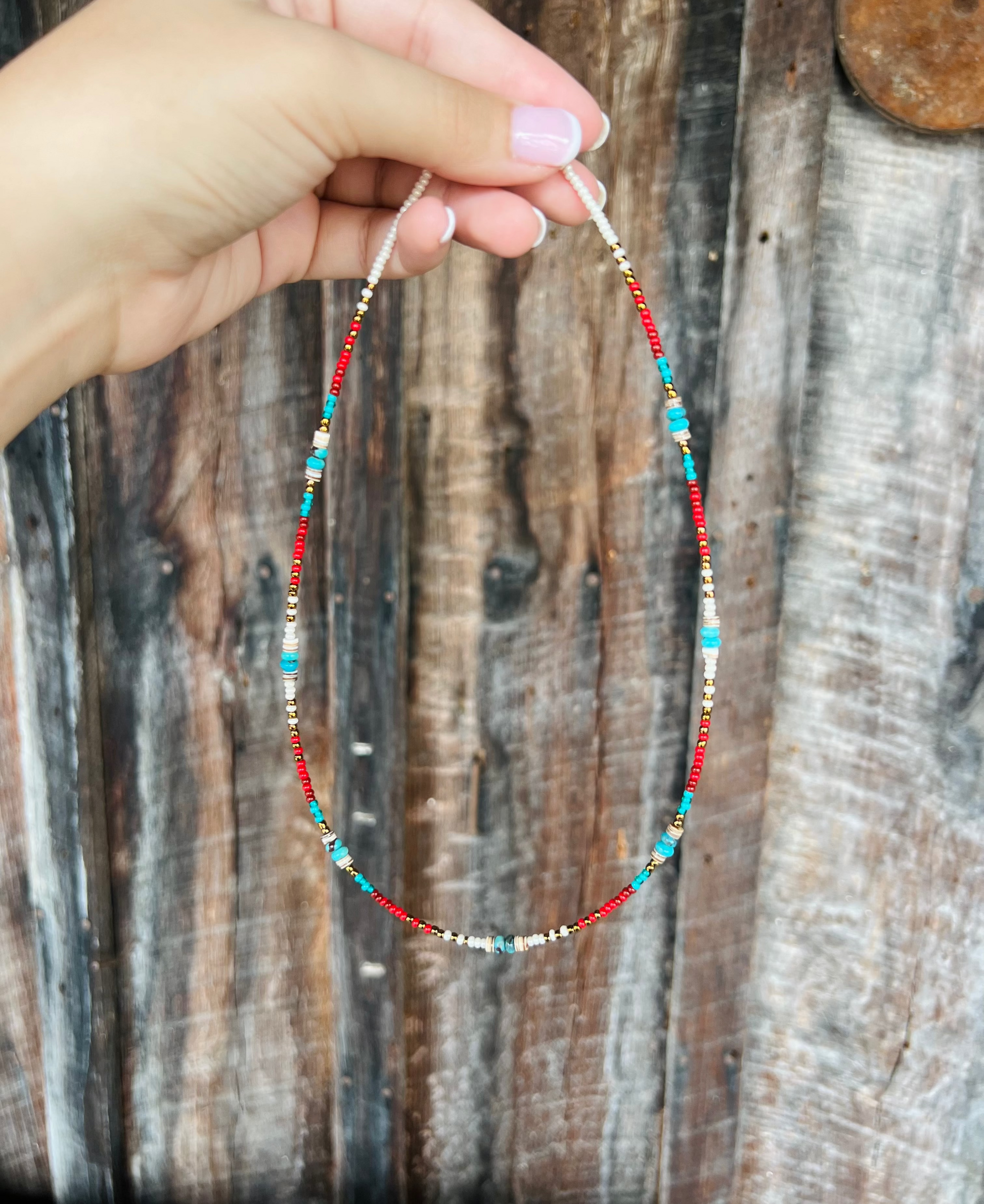 Genuine Turquoise Rondel Seed Bead Heishi Necklace