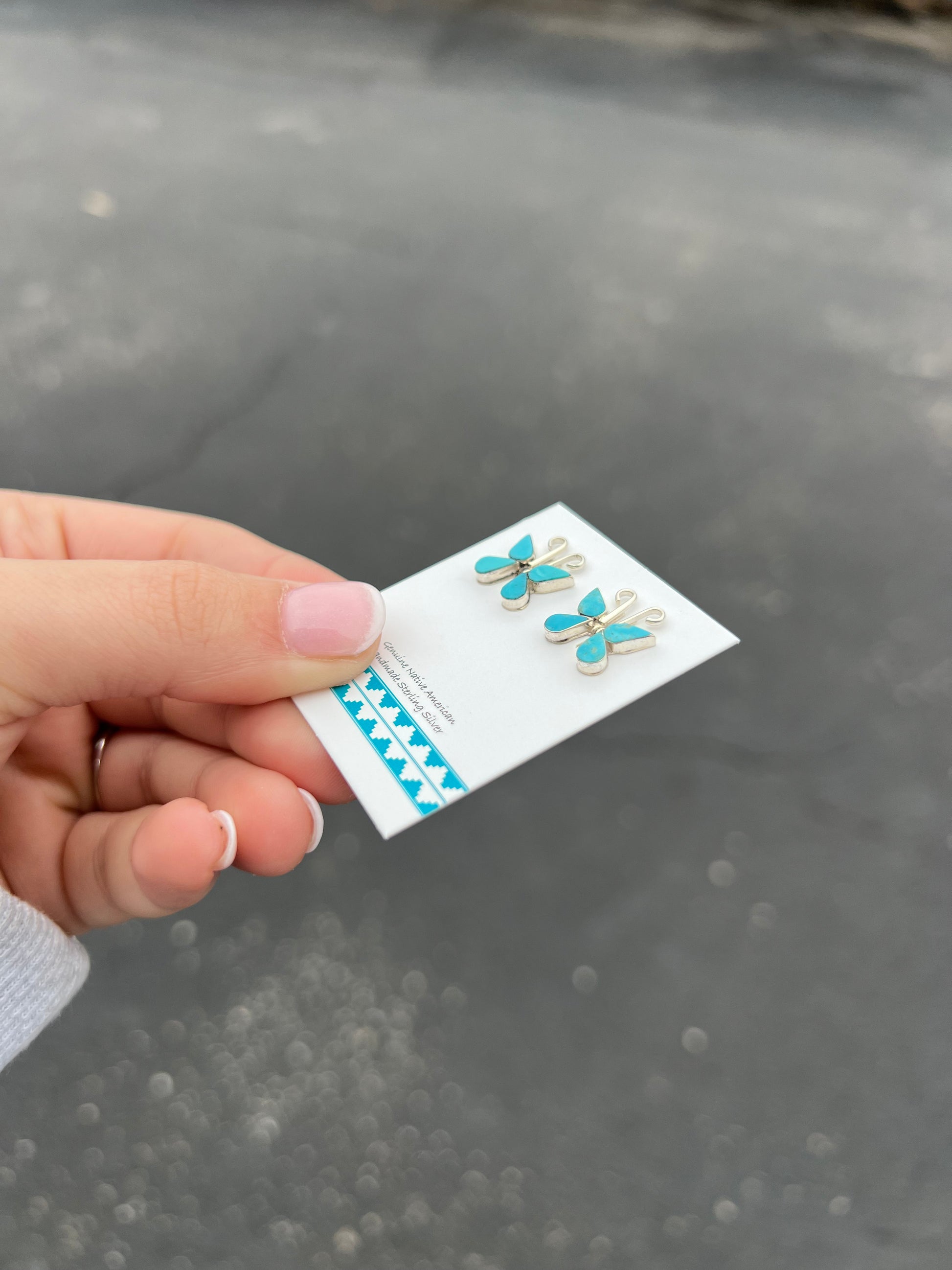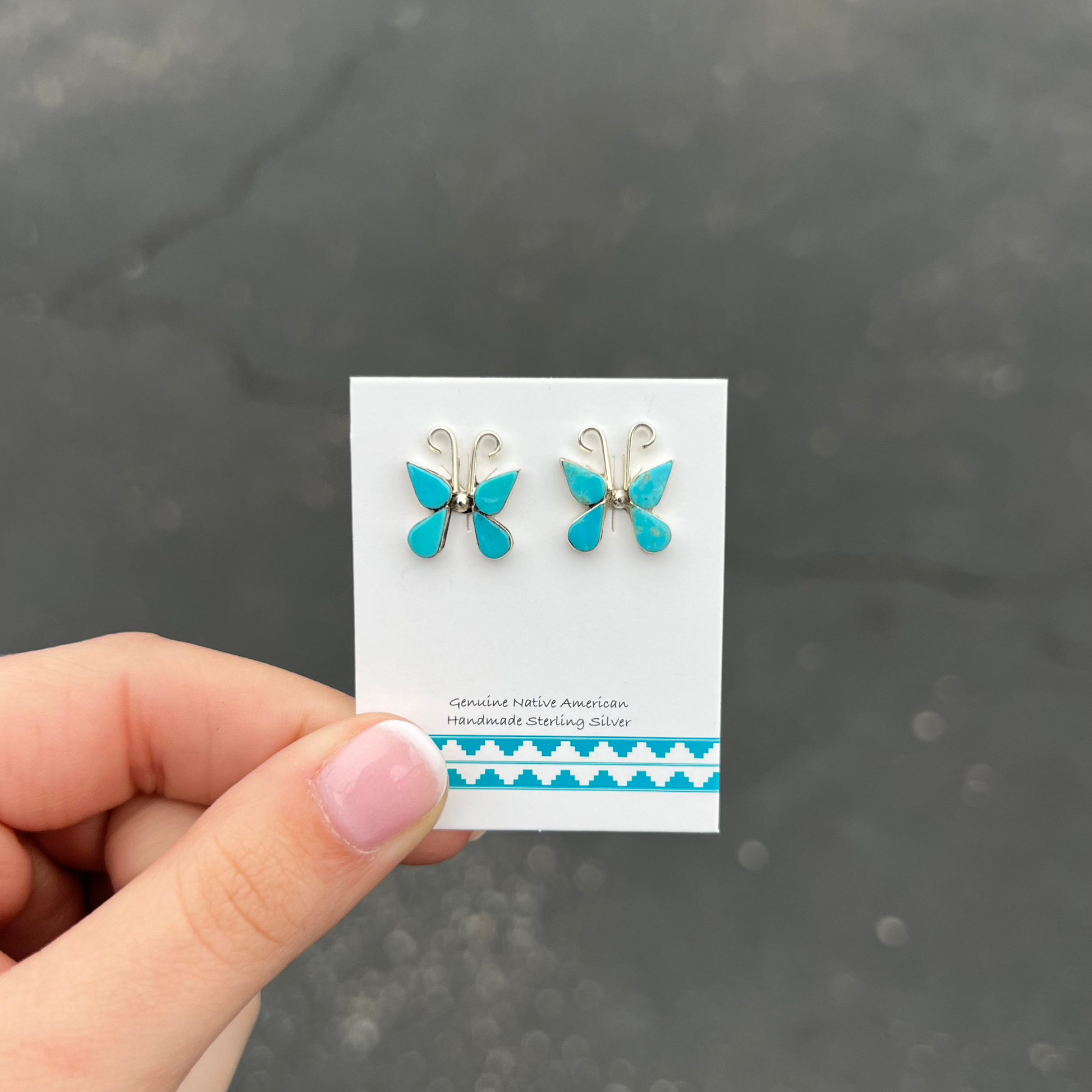 Genuine Turquoise Sterling Silver Butterfly Earrings