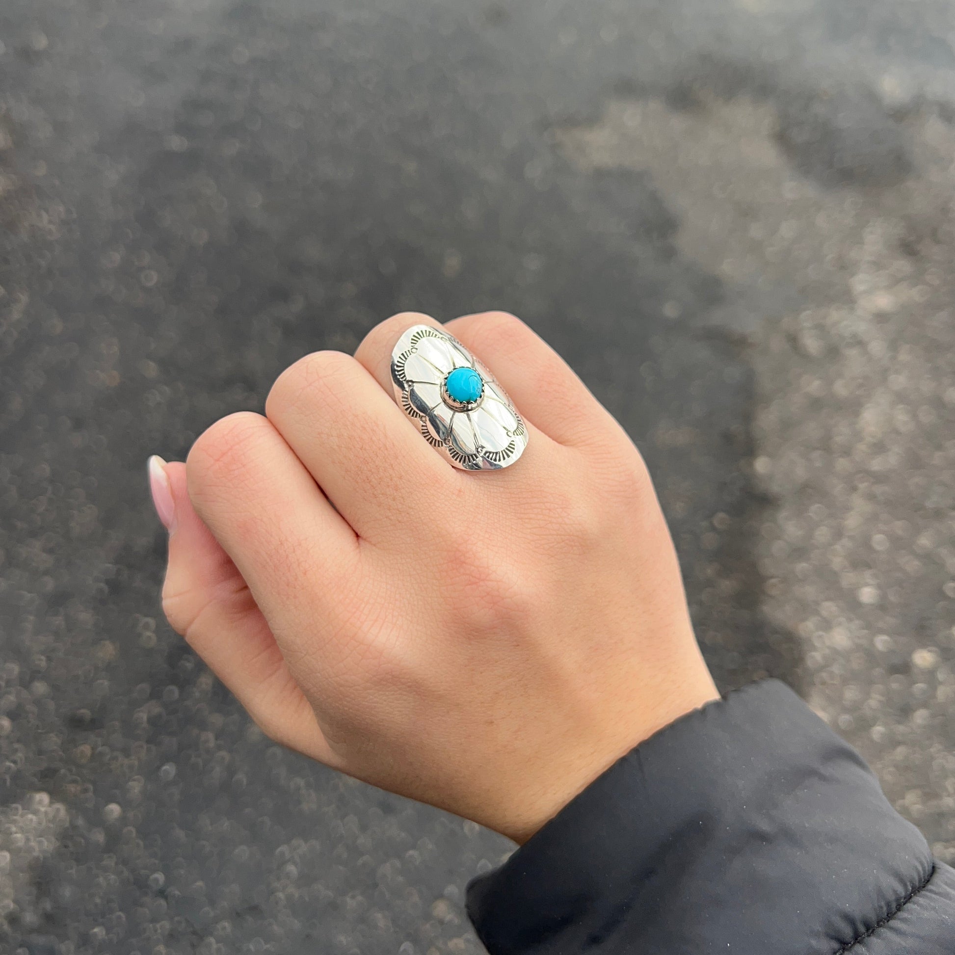 -Authentic Native American Handmade Genuine Turquoise Sterling Silver Ring