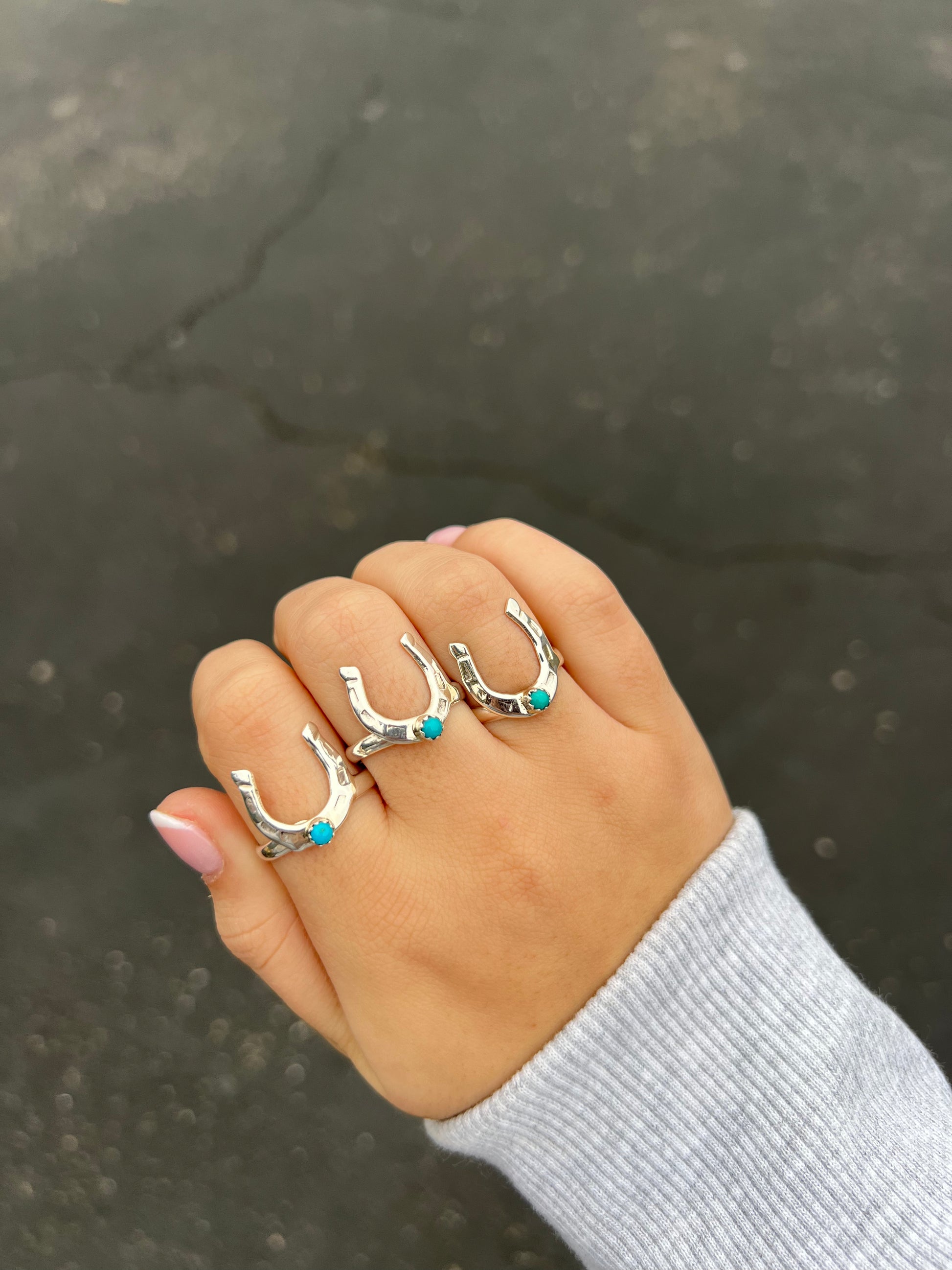 Genuine Turquoise Sterling Silver Horseshoe Ring