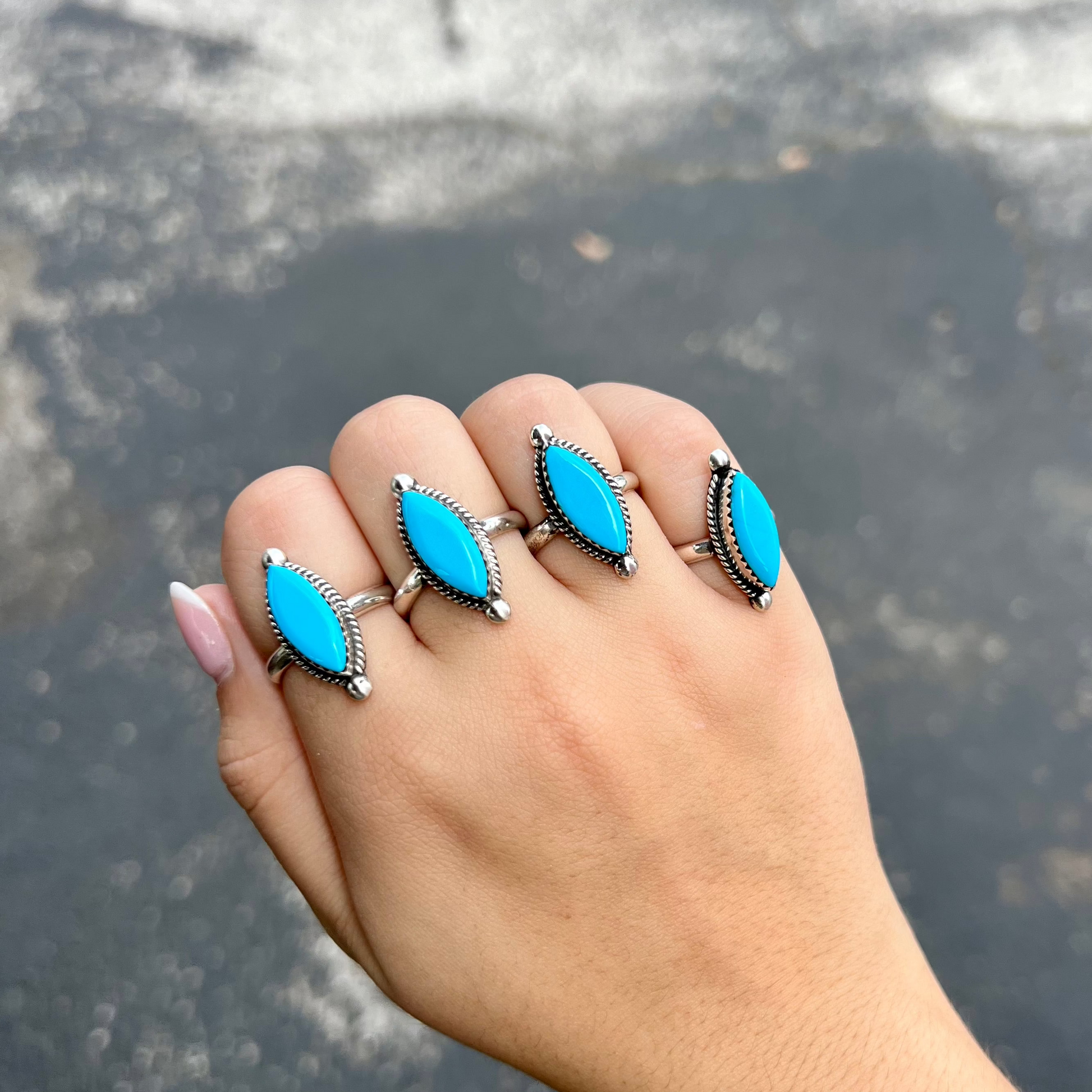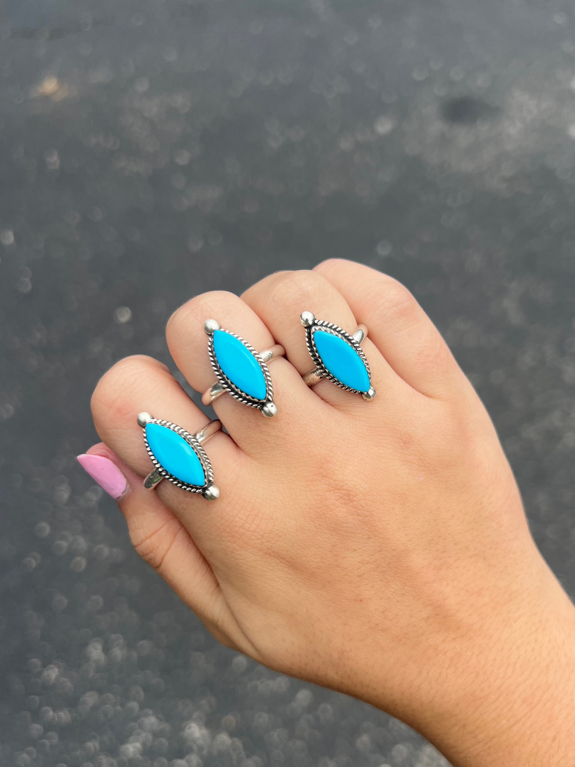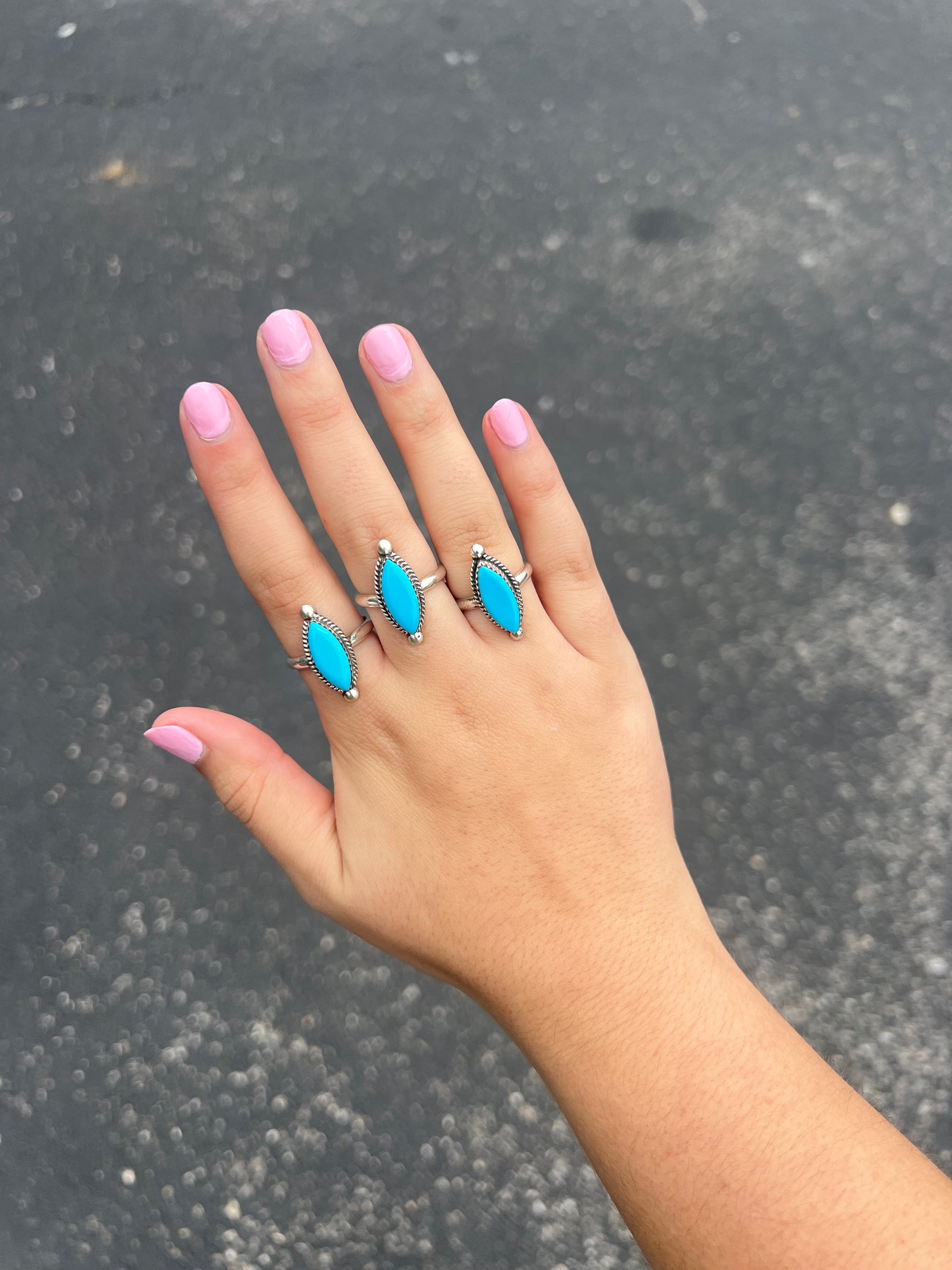 Genuine Turquoise Sterling Silver Marquise Ring