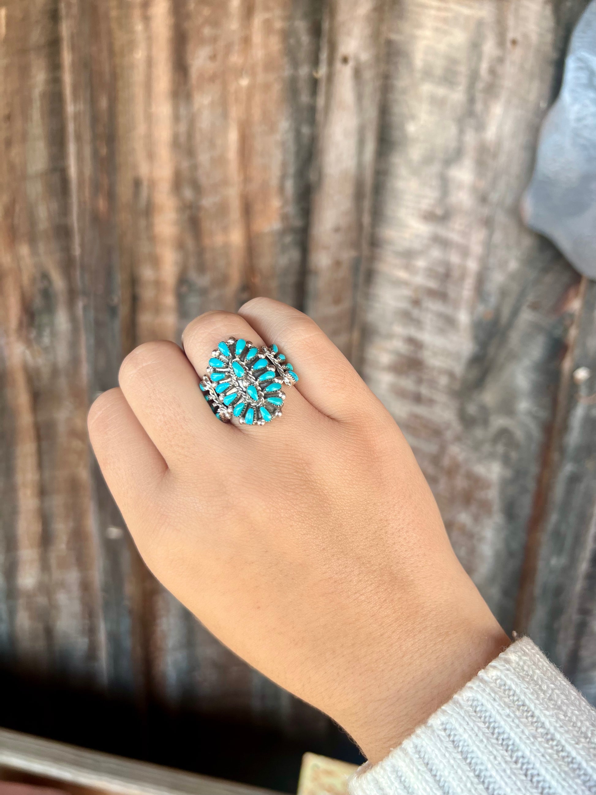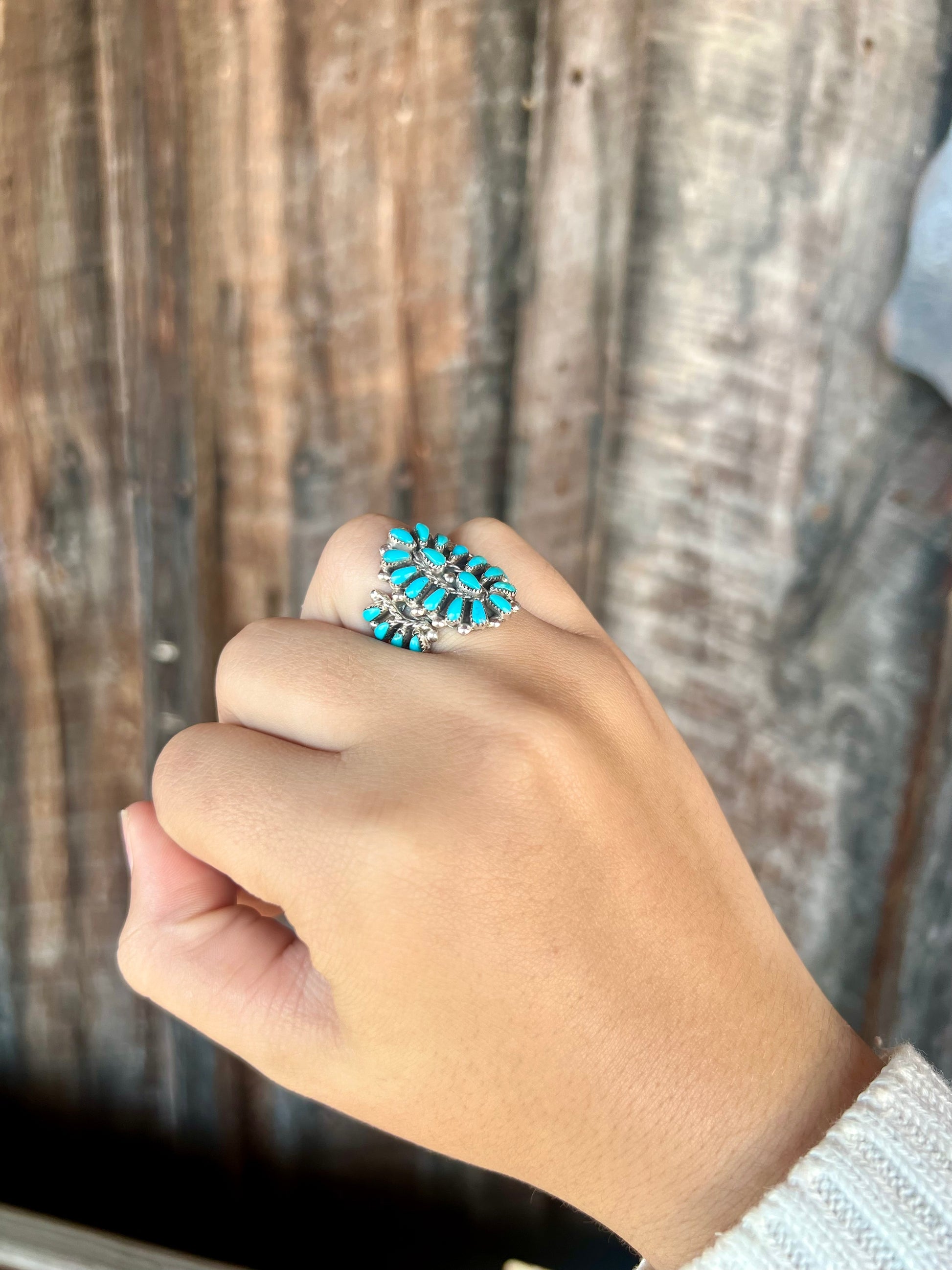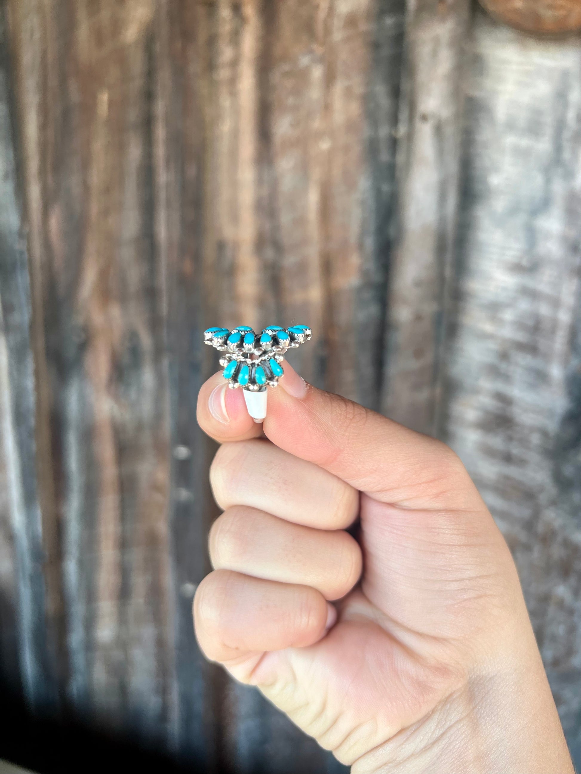 Genuine Turquoise Sterling Silver Zuni Handmade Petti Point Cluster Ring
