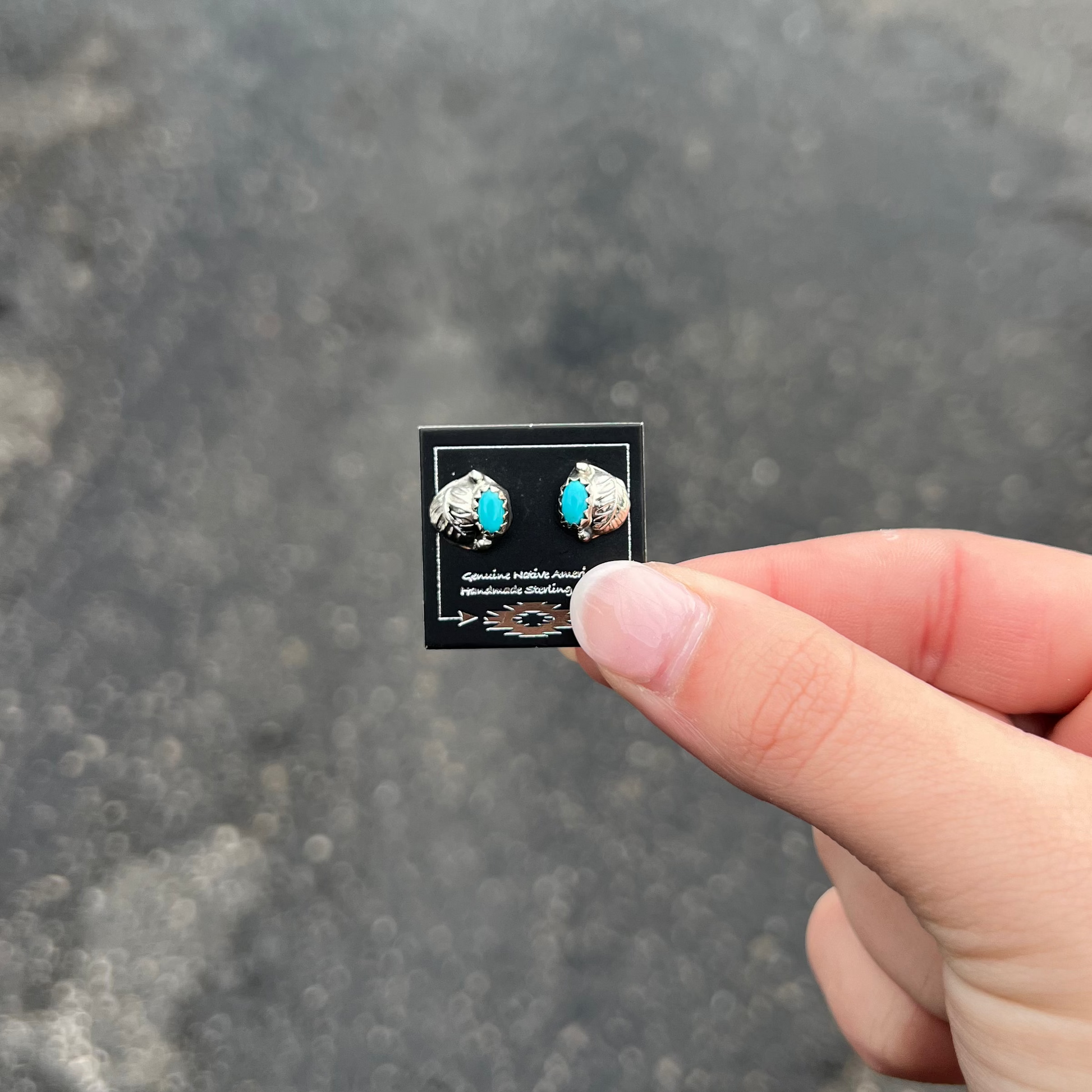 Genuine Turquoise Stud and Leaf Earrings